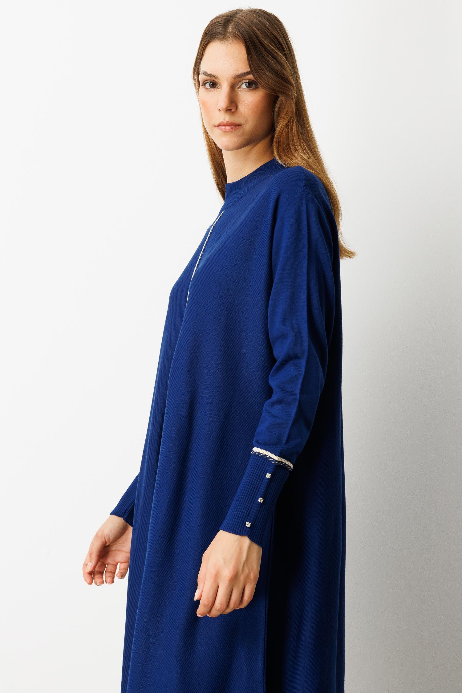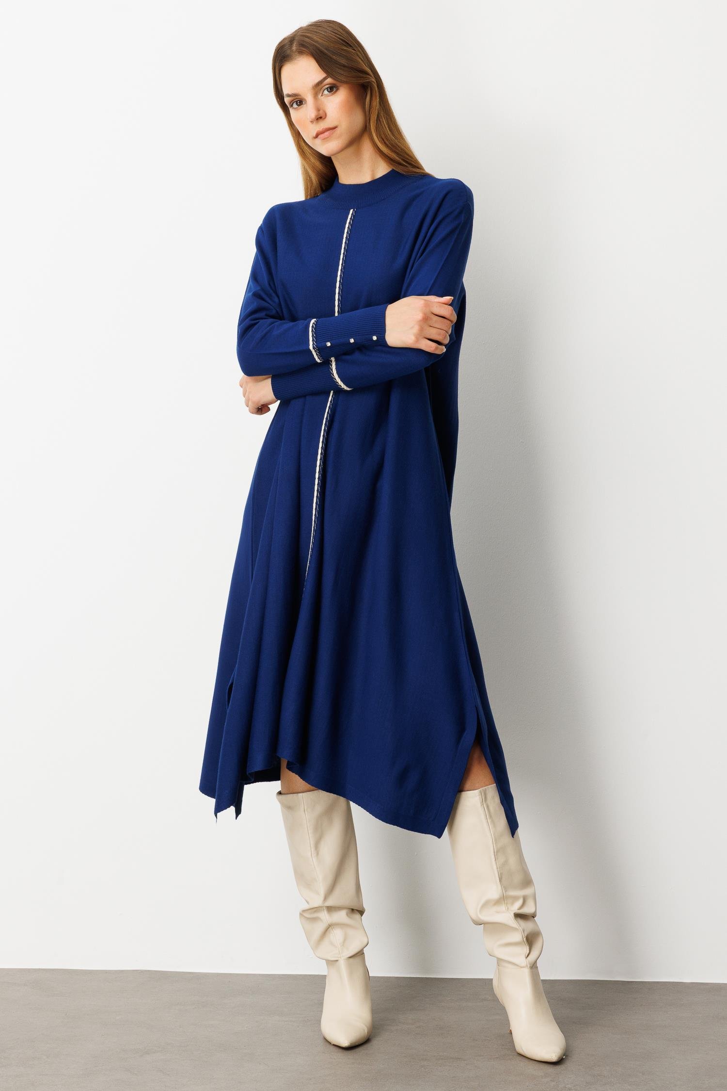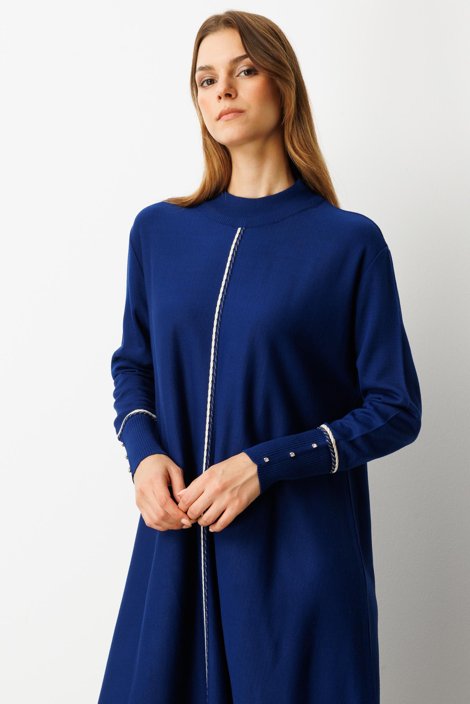 Önü Simli Şerit Detaylı Triko Elbise-SAX (5WERN005865_59)