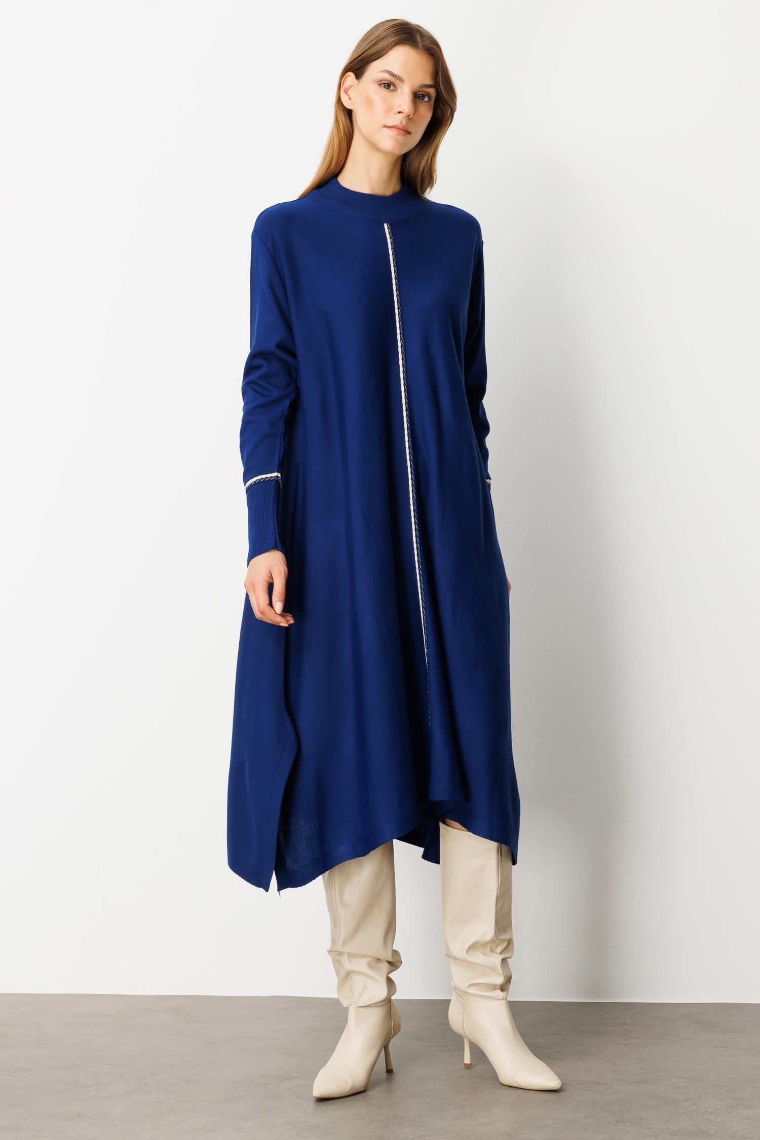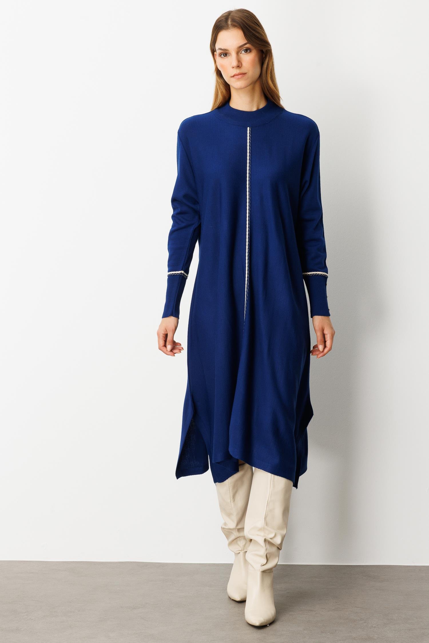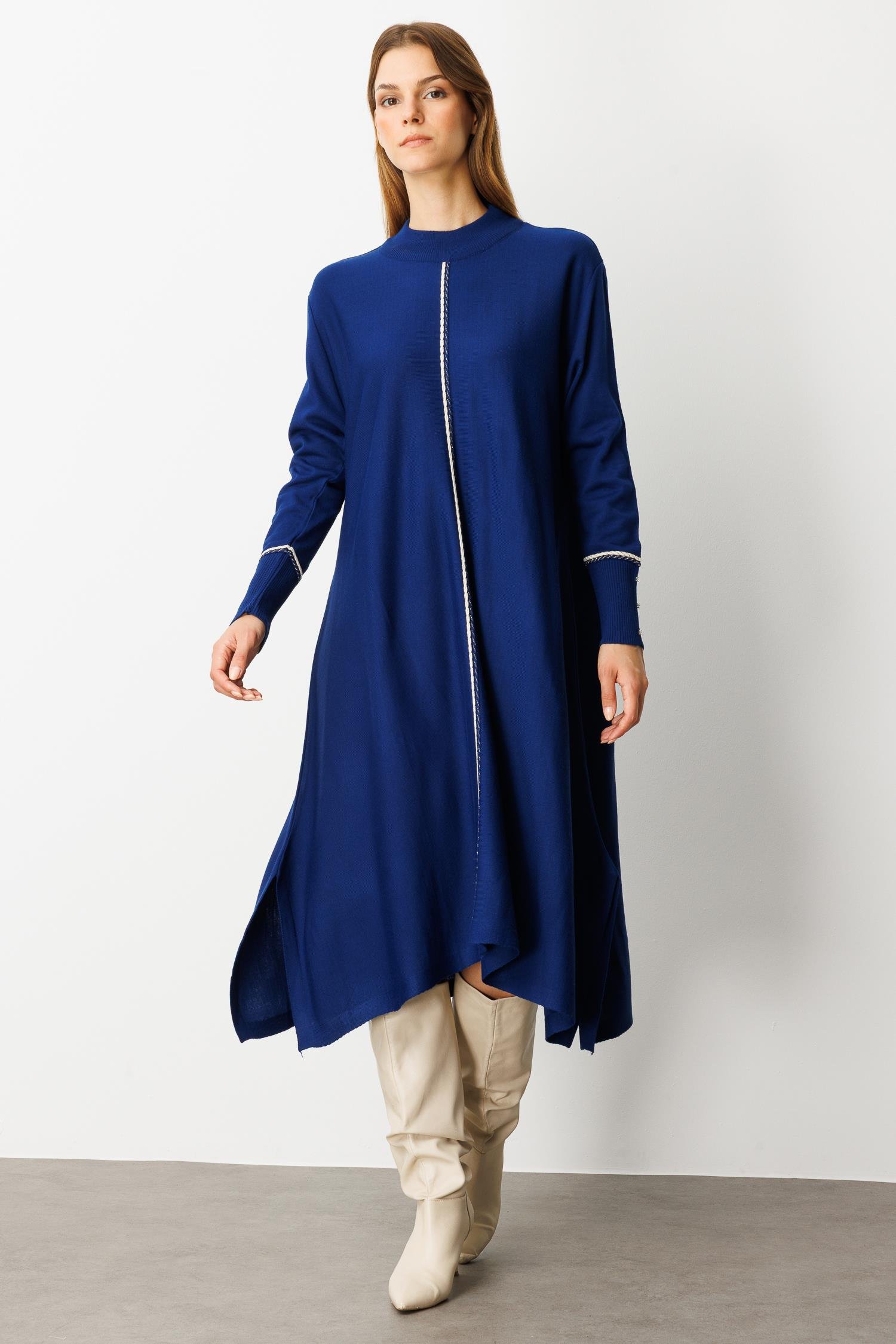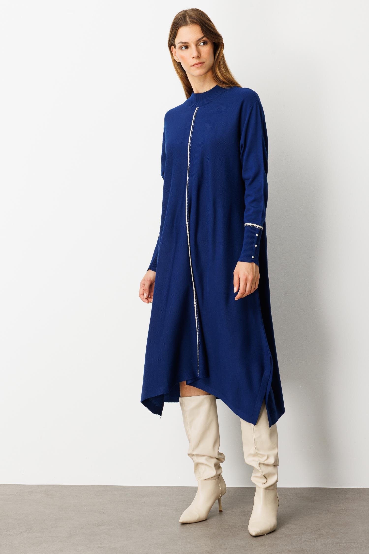 Önü Simli Şerit Detaylı Triko Elbise-SAX (5WERN005865_59)