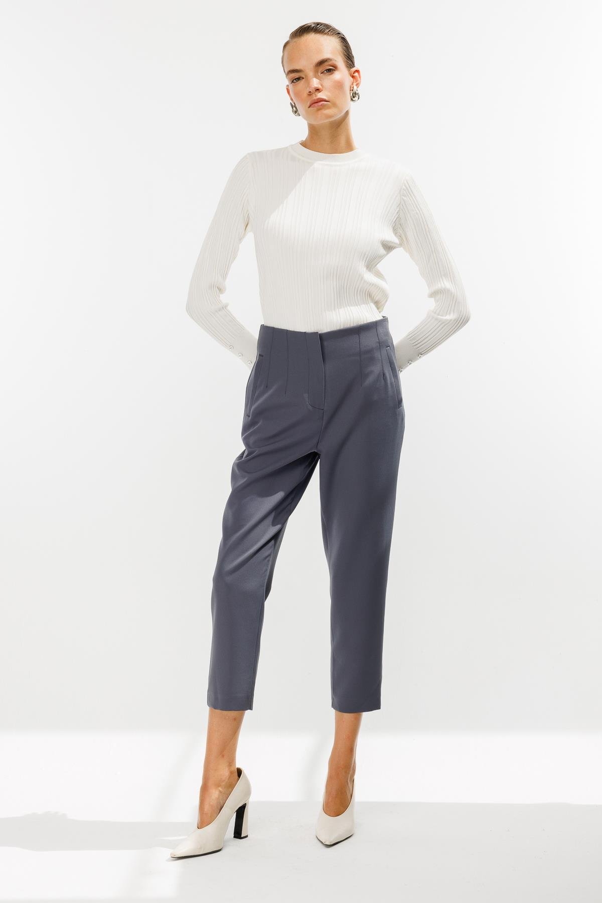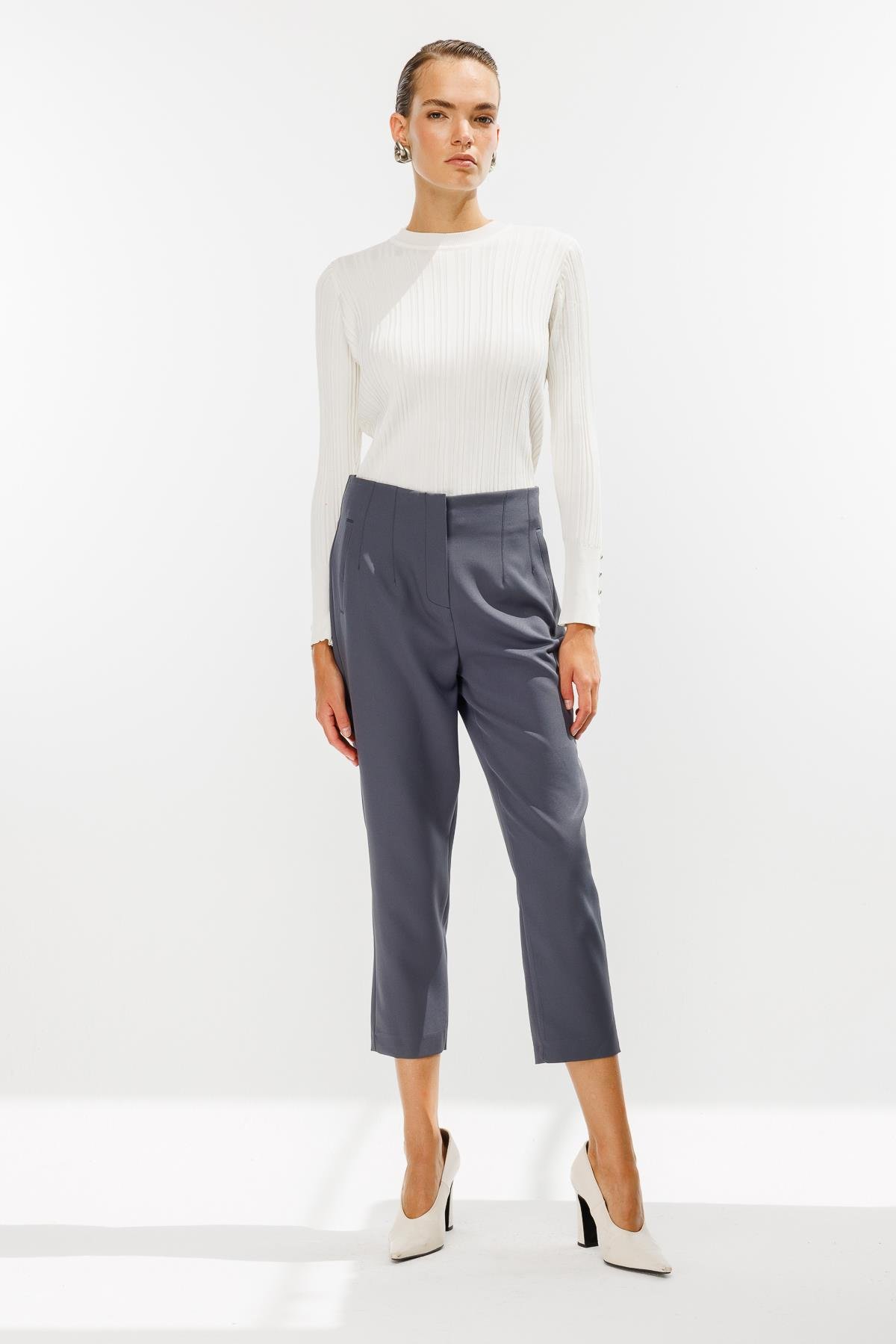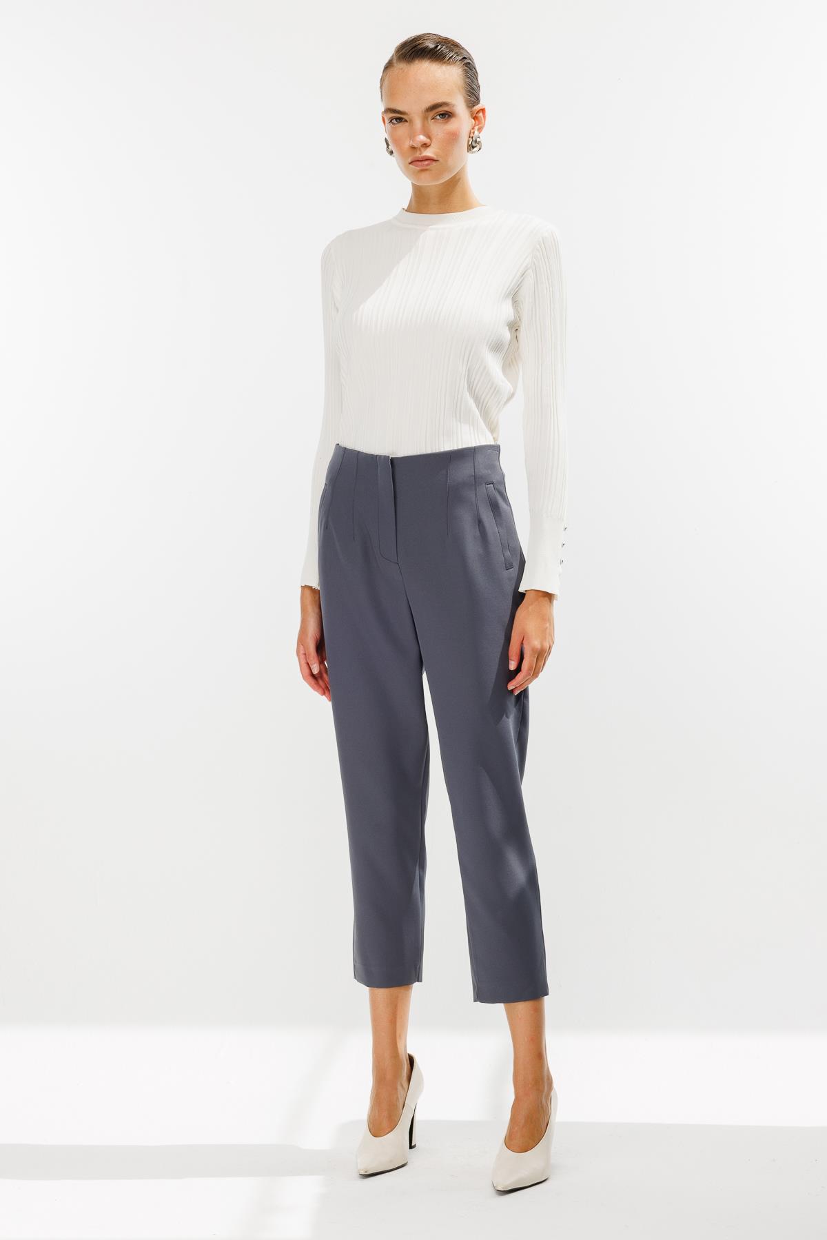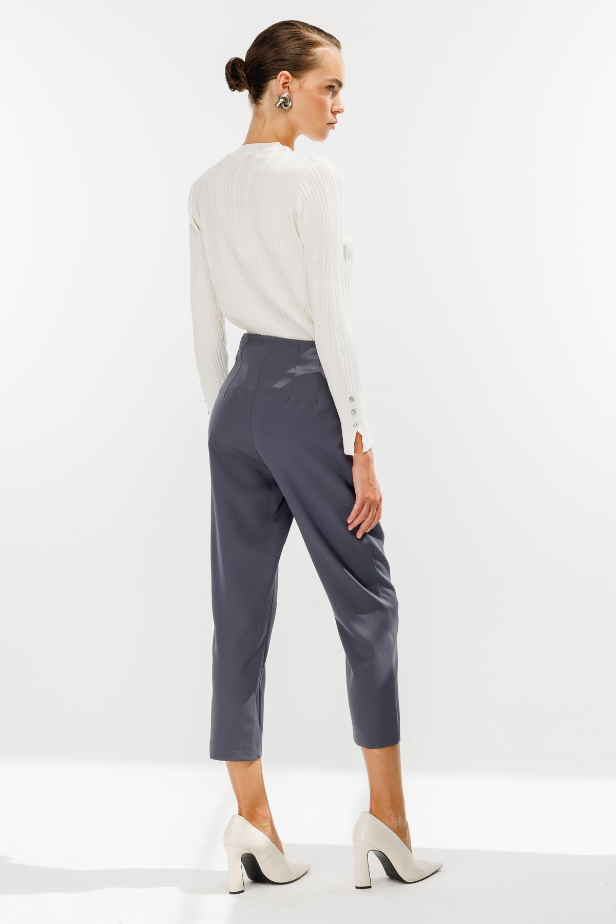Pensli Yüksek Bel Pantolon-GRİ (4WKB21K1739_10)
