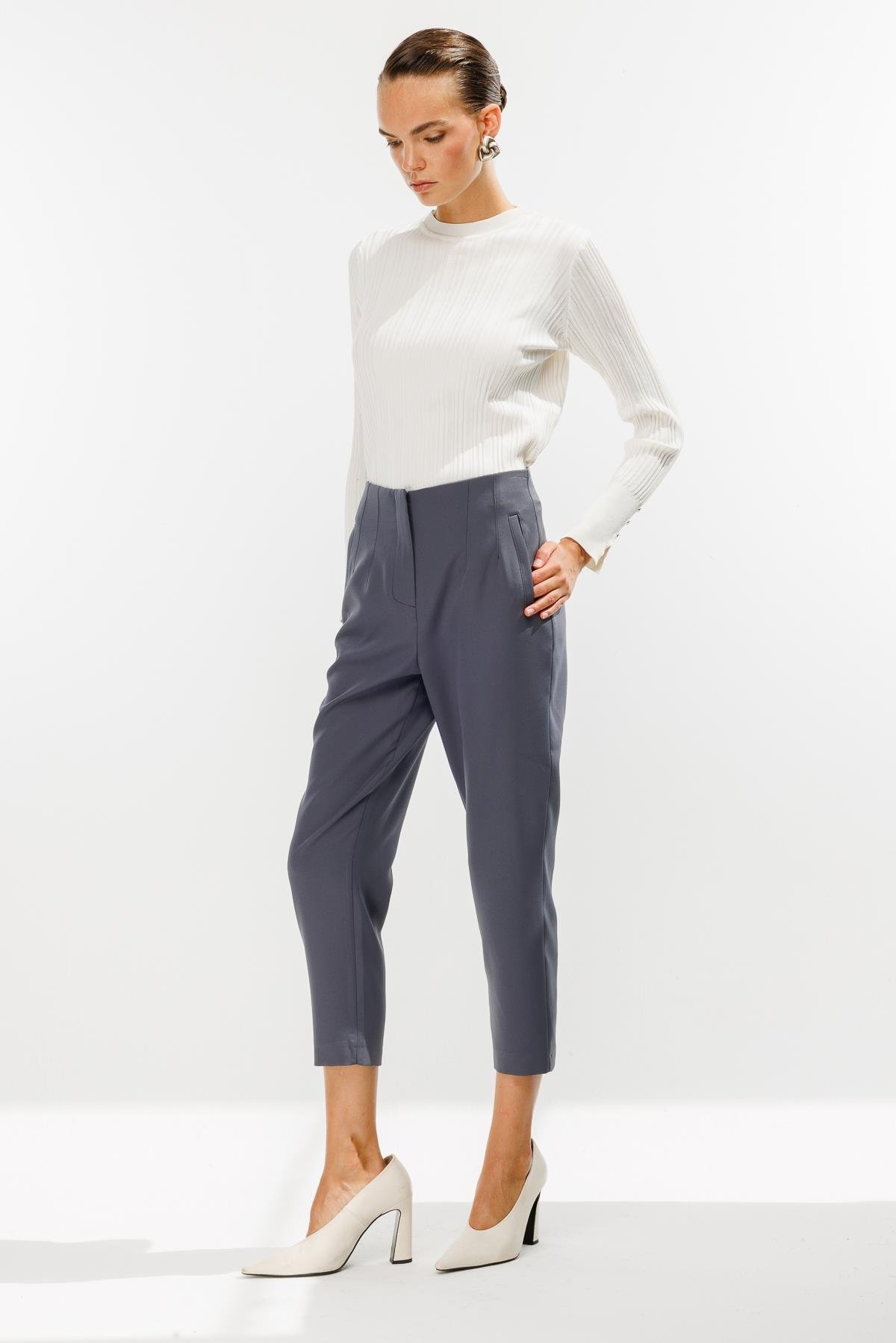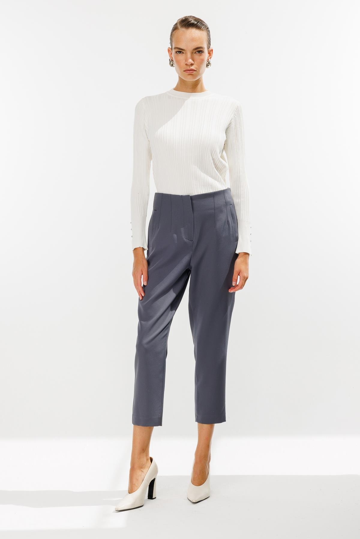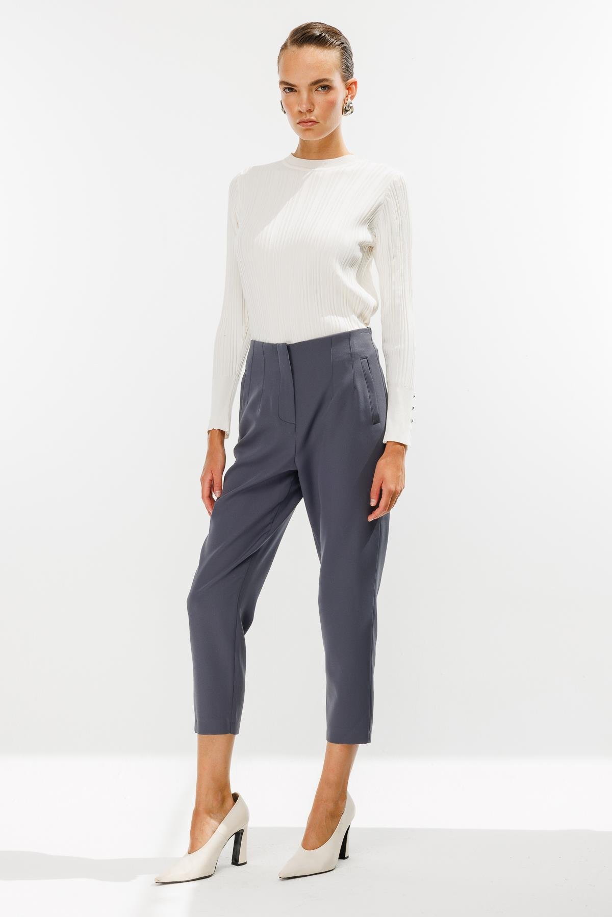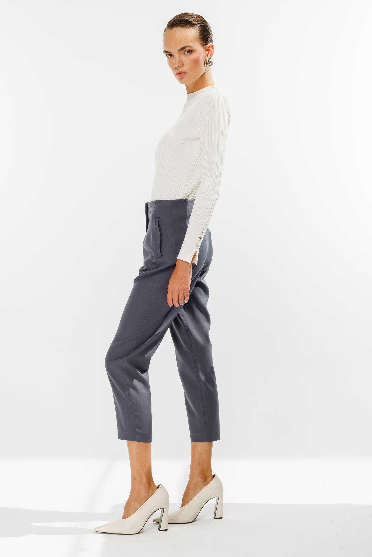 Pensli Yüksek Bel Pantolon-GRİ (4WKB21K1739_10)