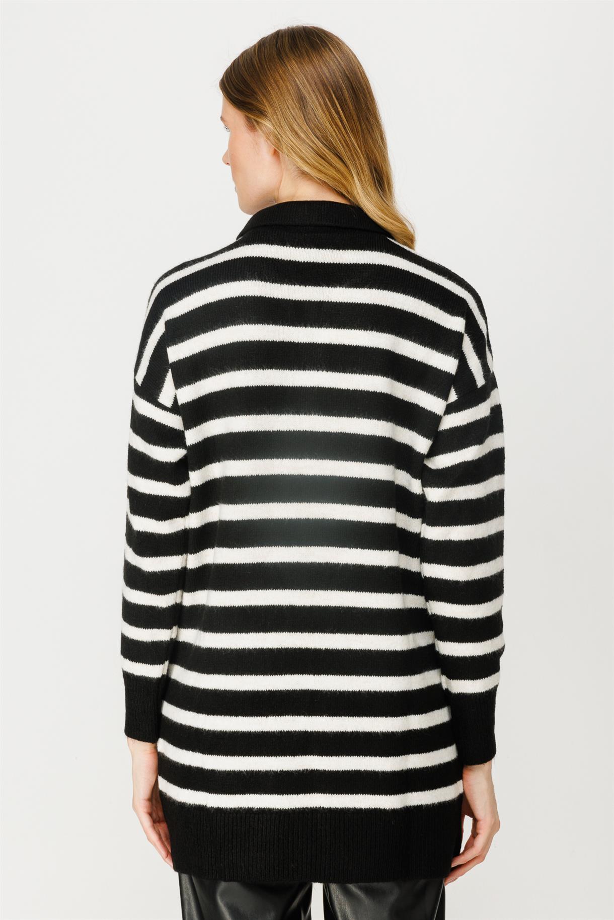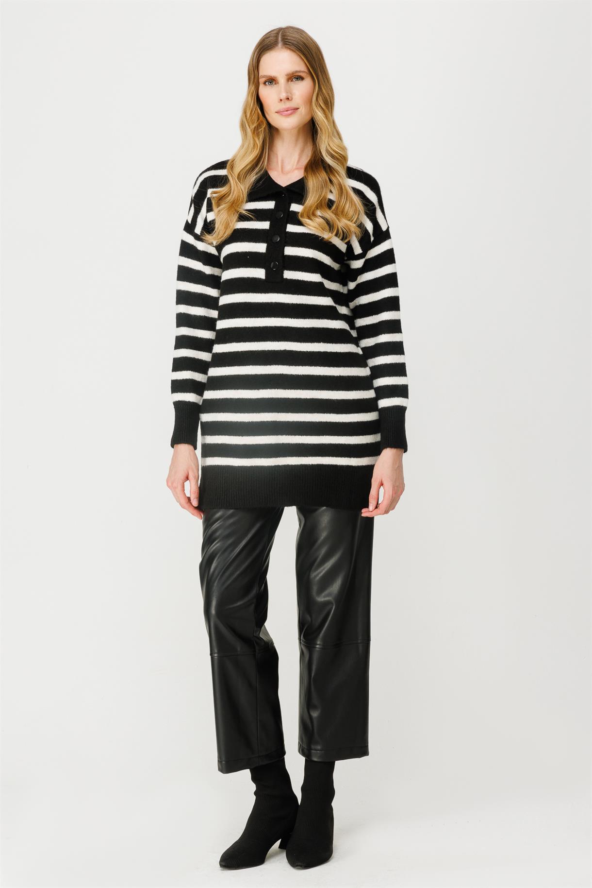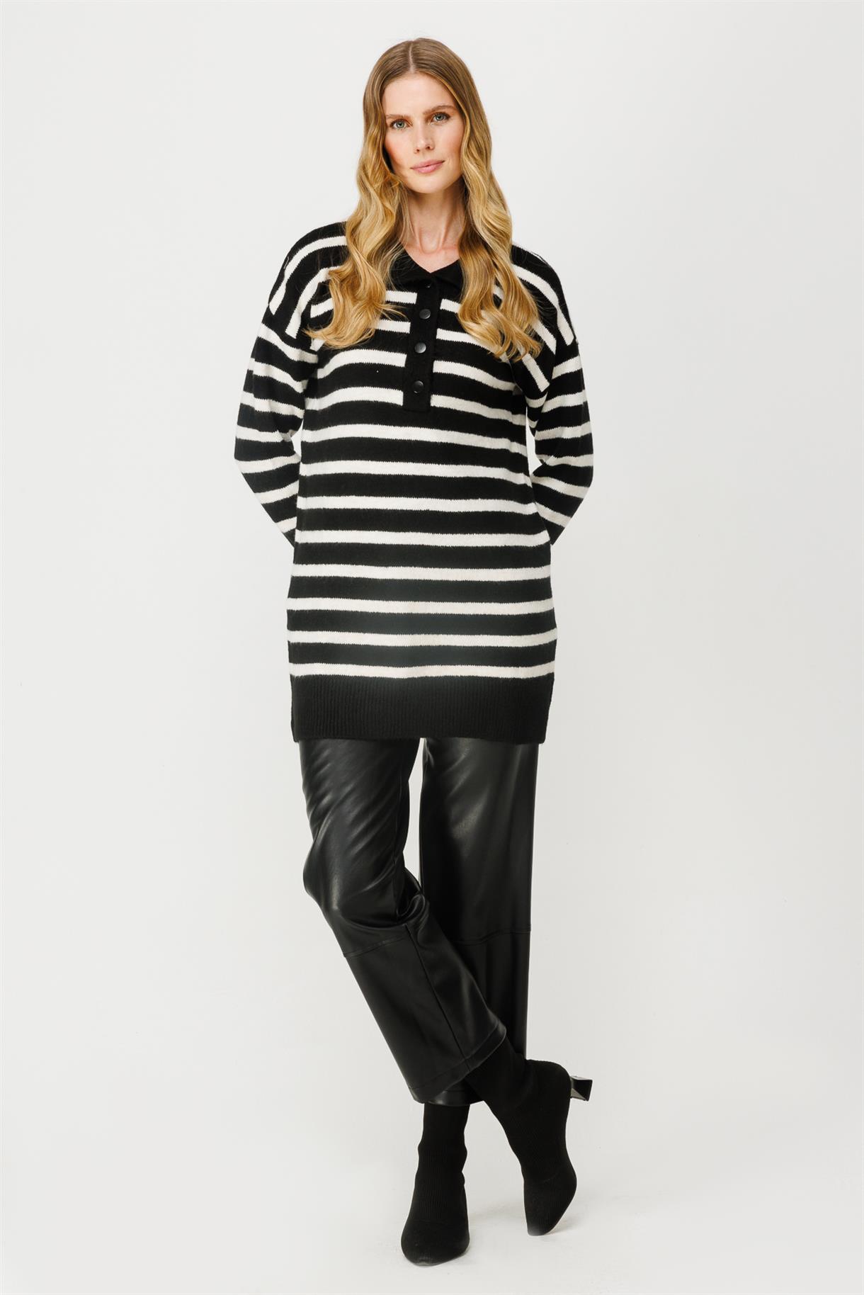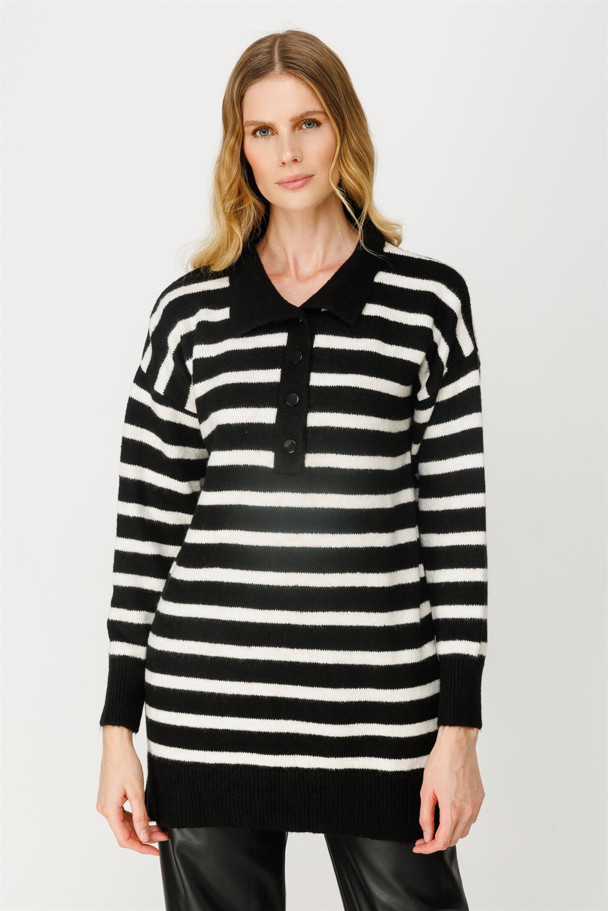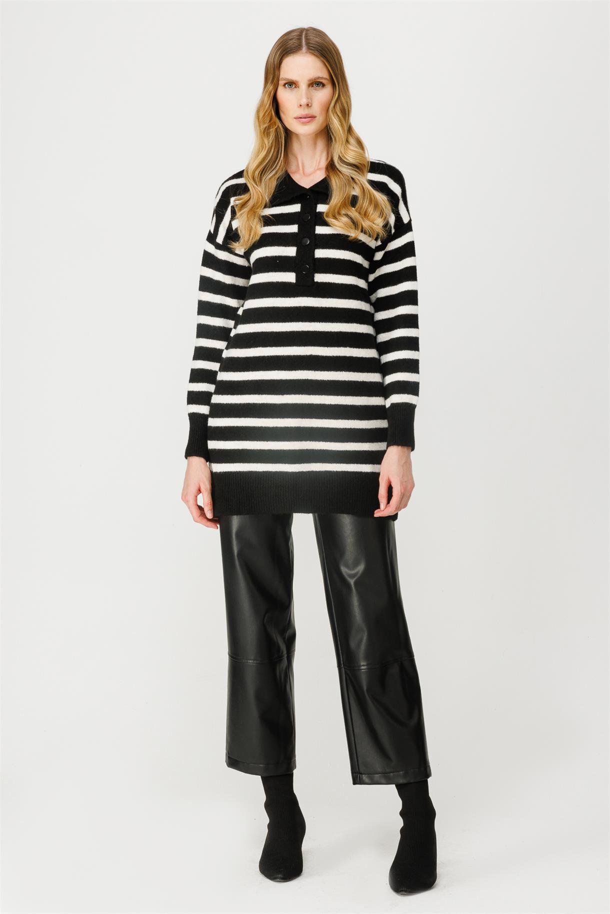 Polo Yaka Çizgili Triko Tunik-SİYAH (3WKL00Z9488_01)