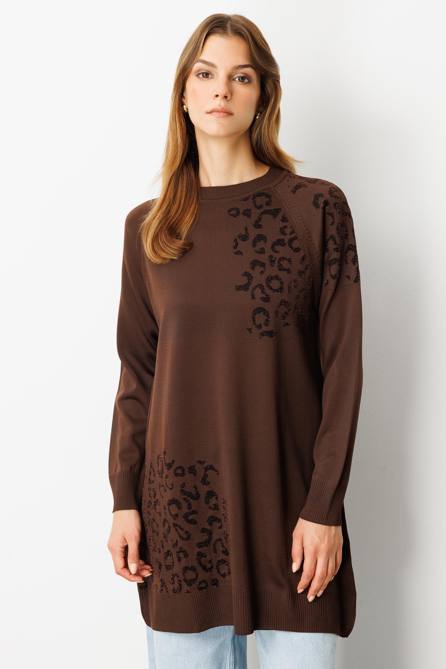 Reglan Kol Leopar Desenli Triko Tunik-KAHVE (5WT00035301_03)