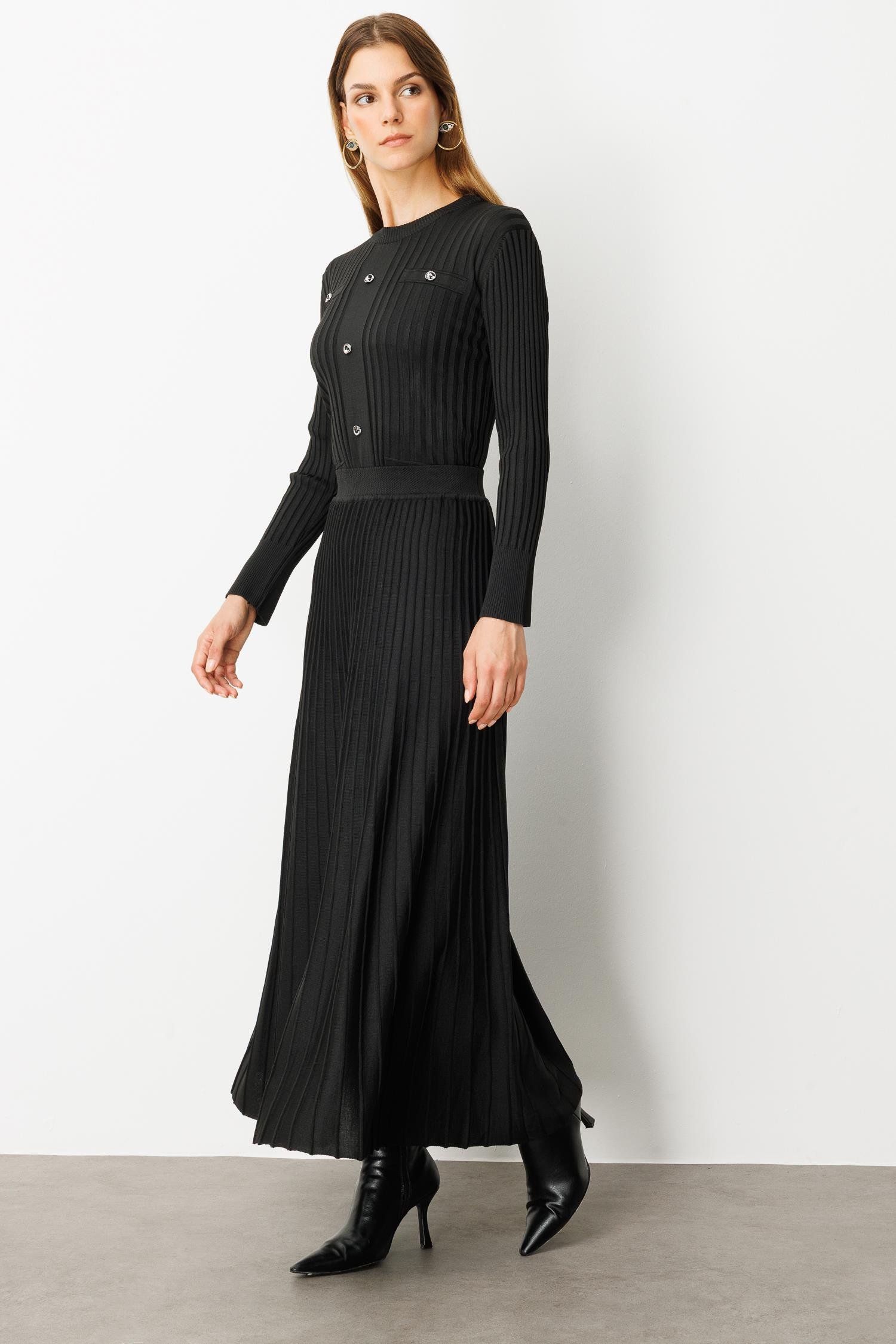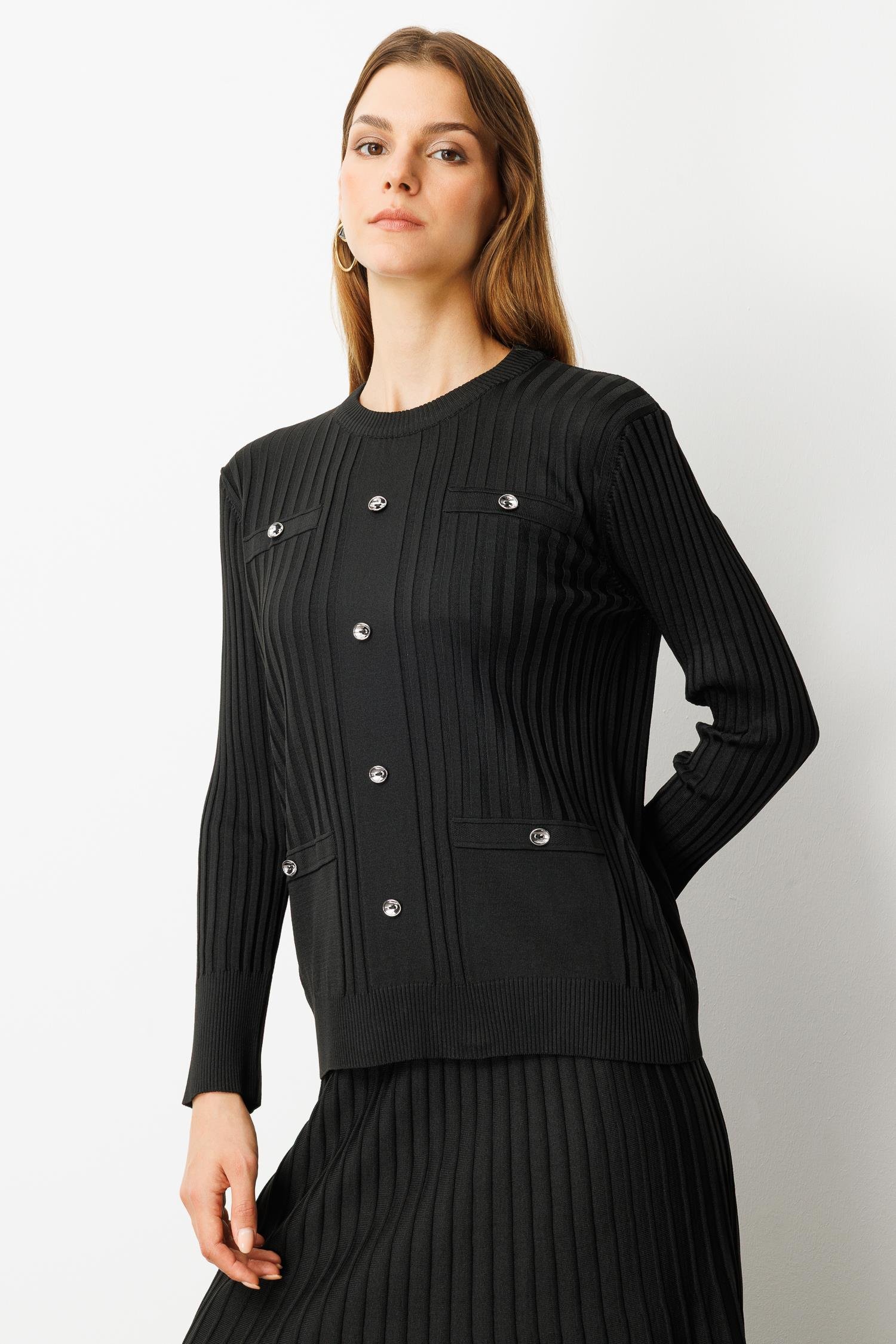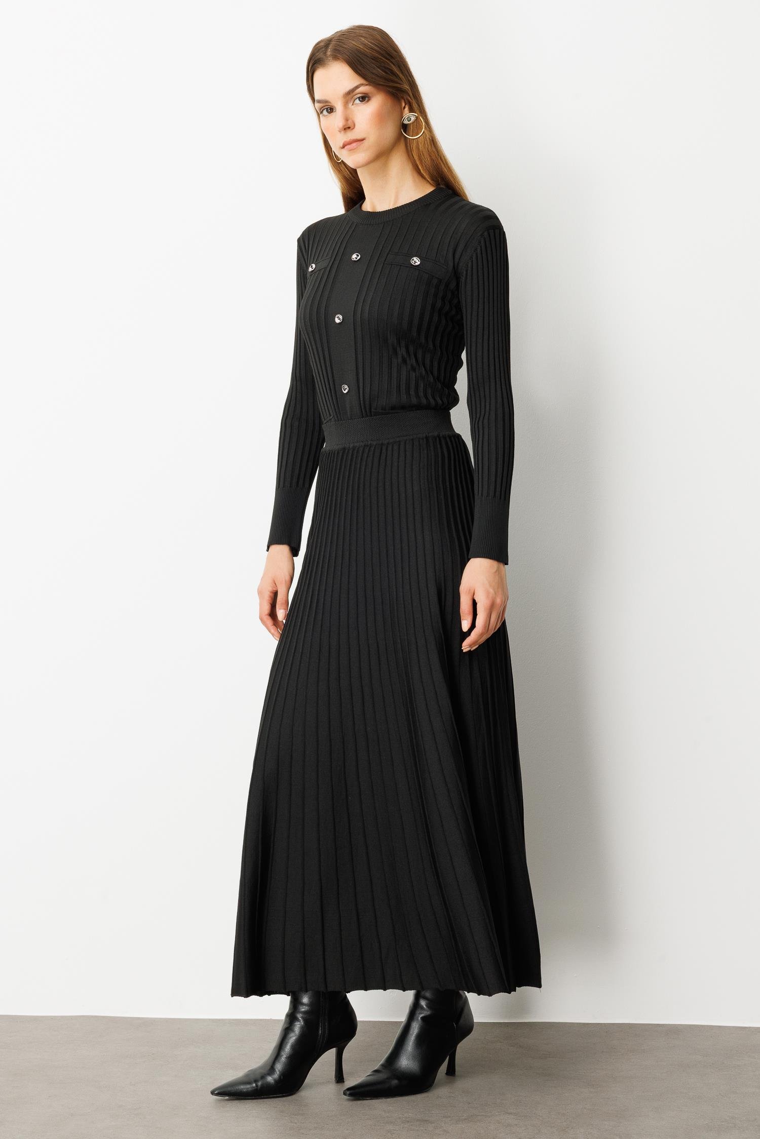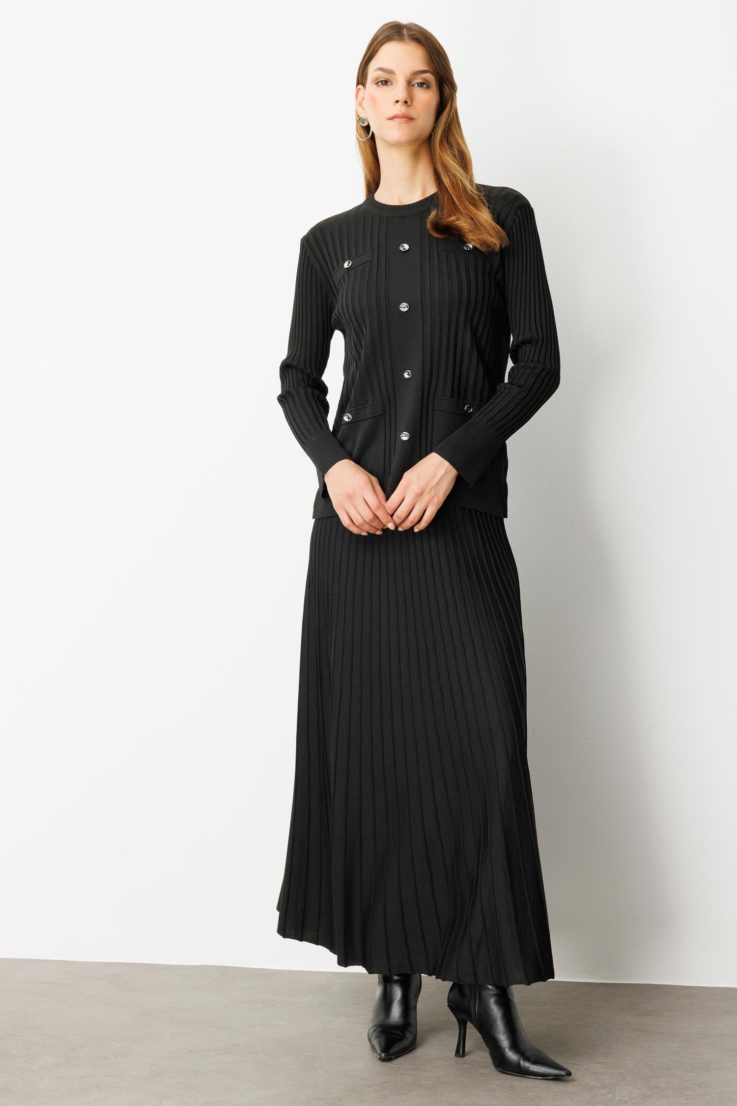Ribana Detaylı Triko Takım-SİYAH (5WT00035331_01)
