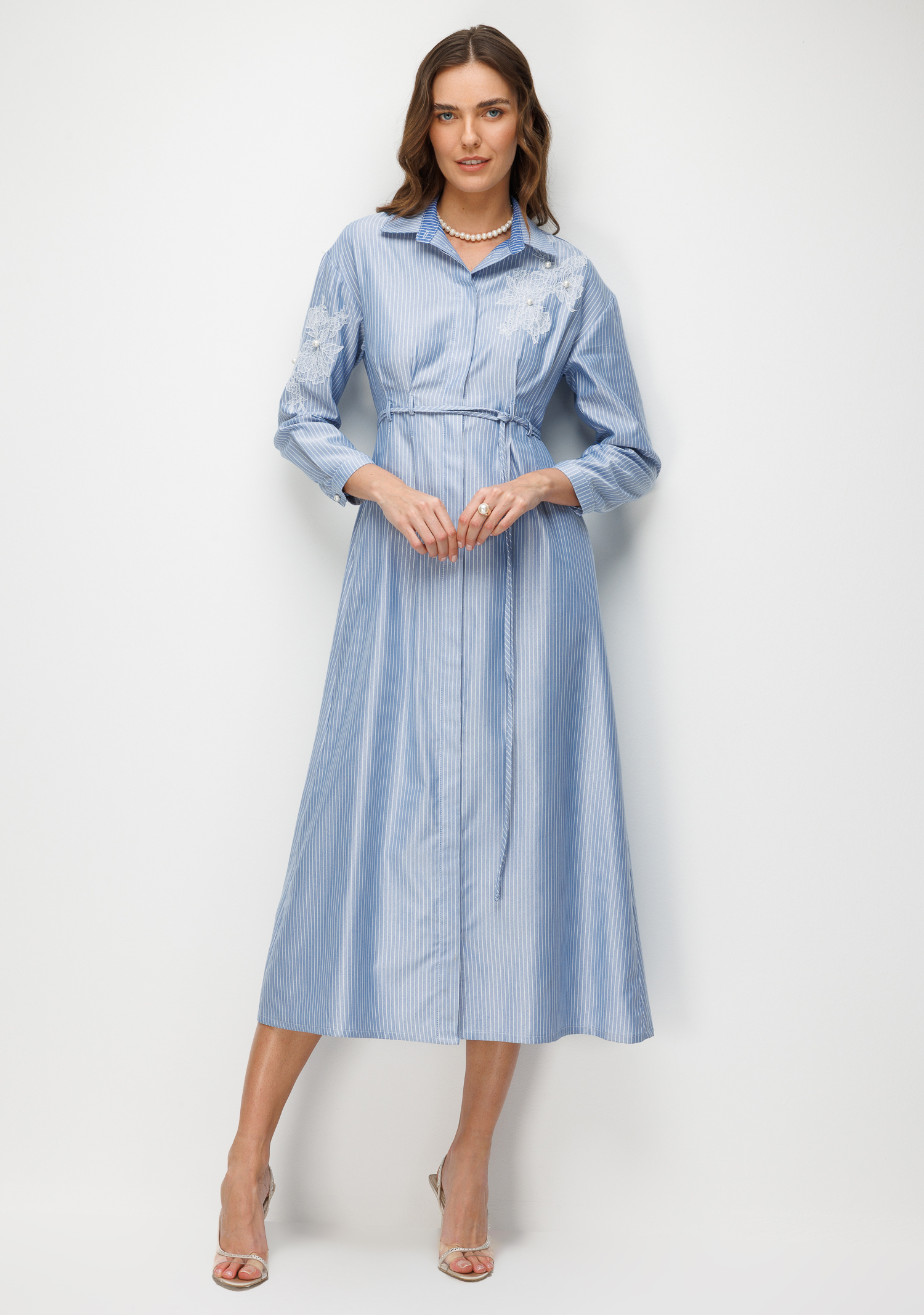Sim Çizgili Düğmeli Elbise-MAVİ (6SKB51K1900_15)