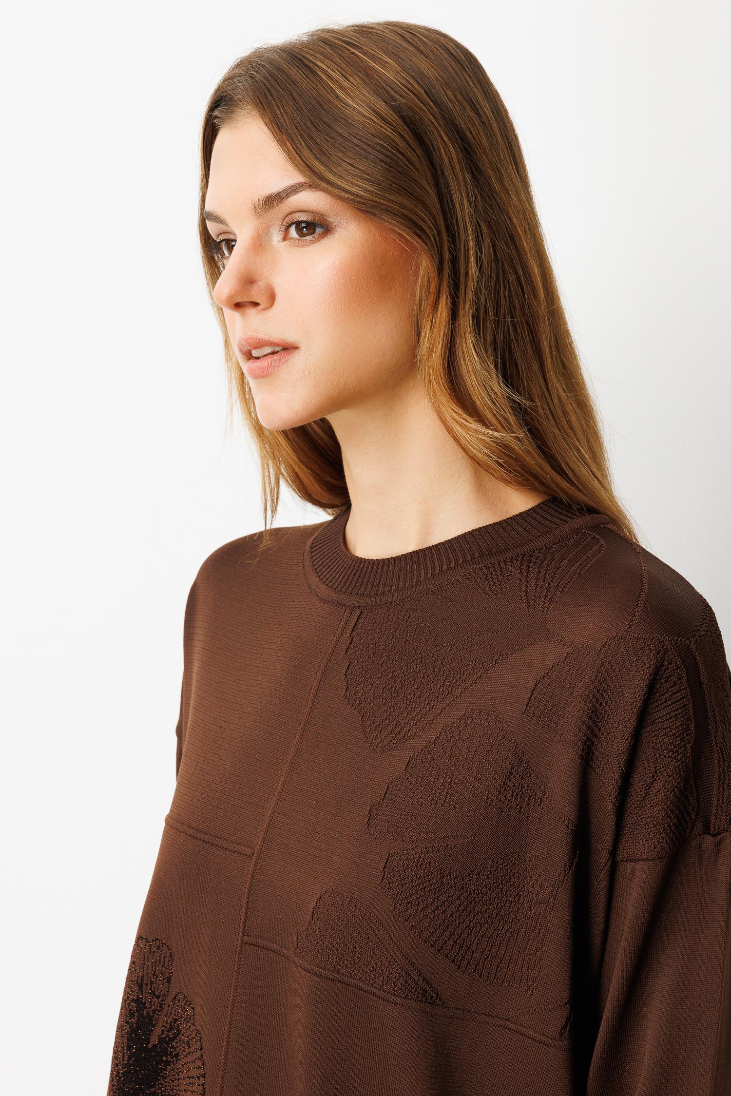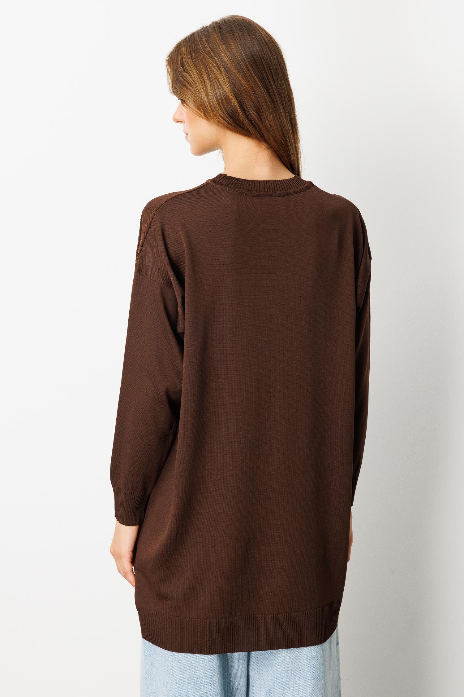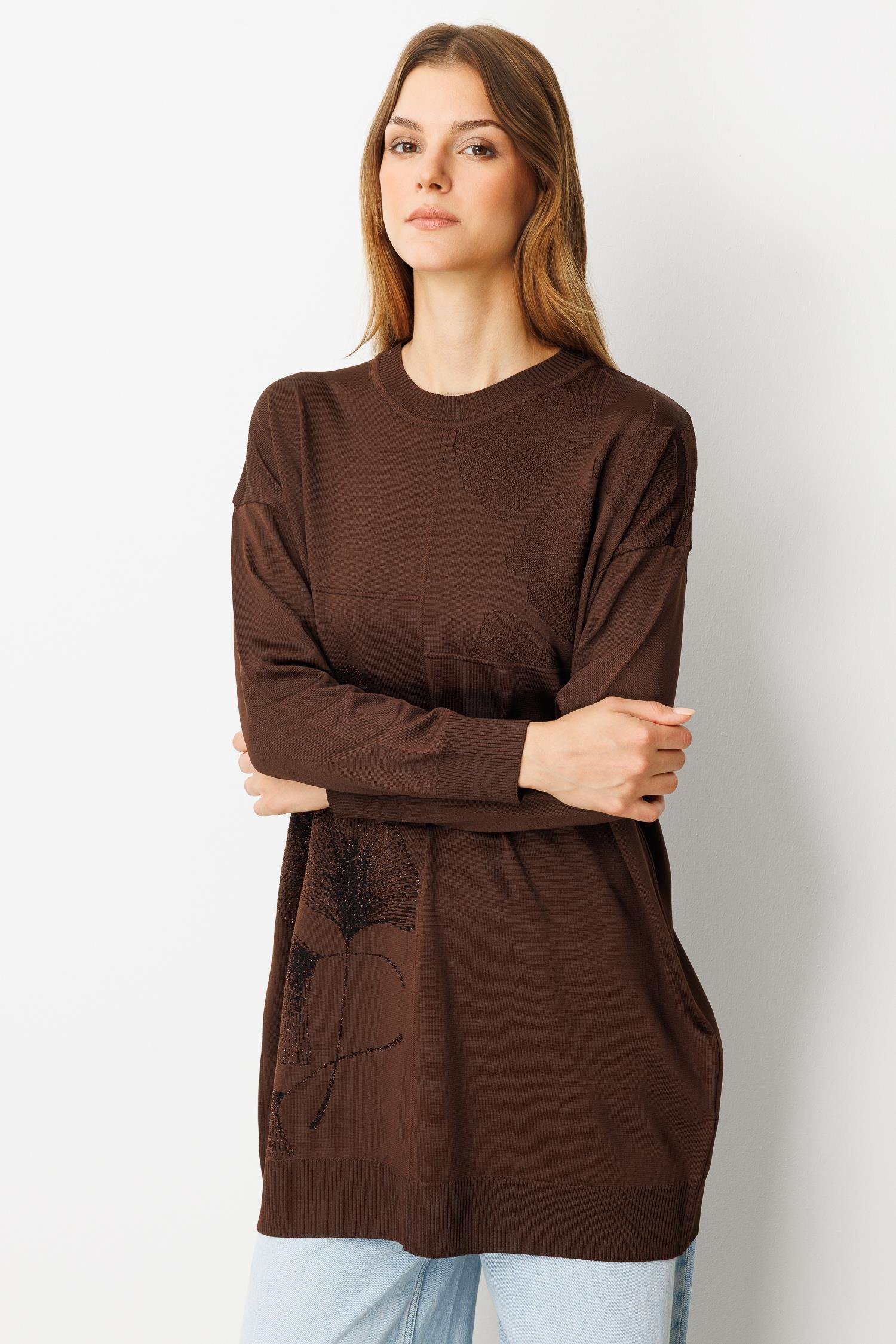 Simli Çiçek Detaylı Triko Tunik-KAHVE (5WT00035261_03)