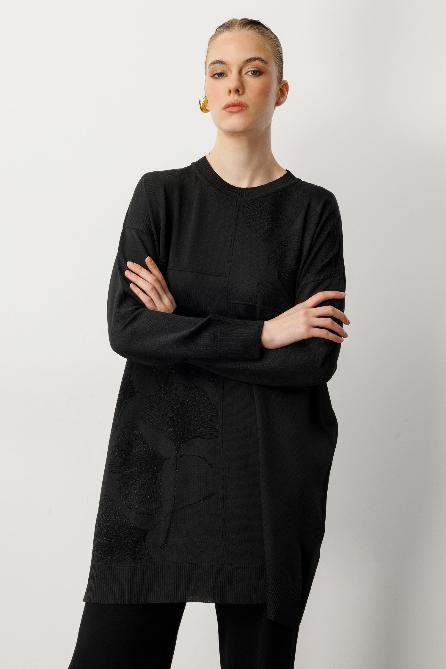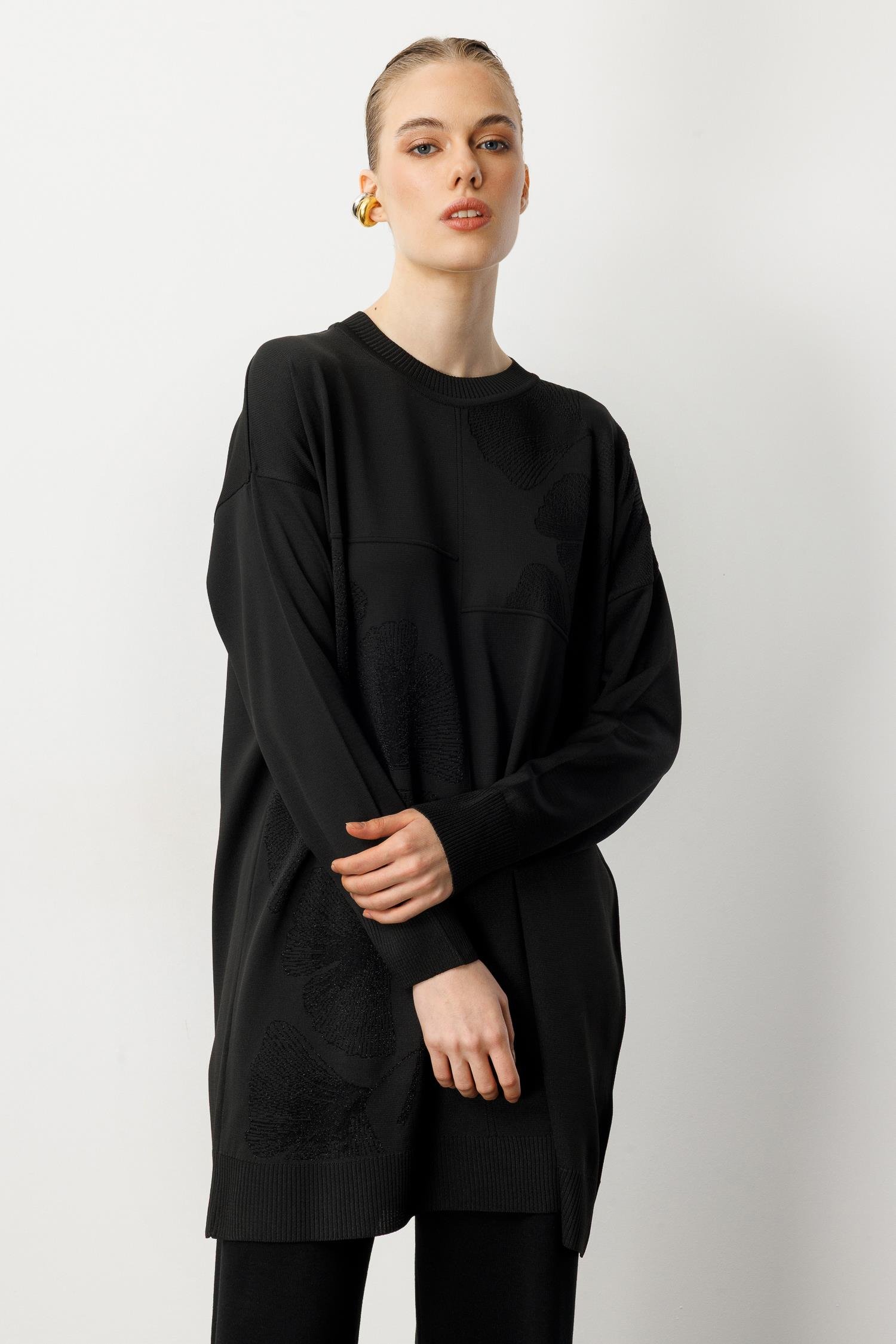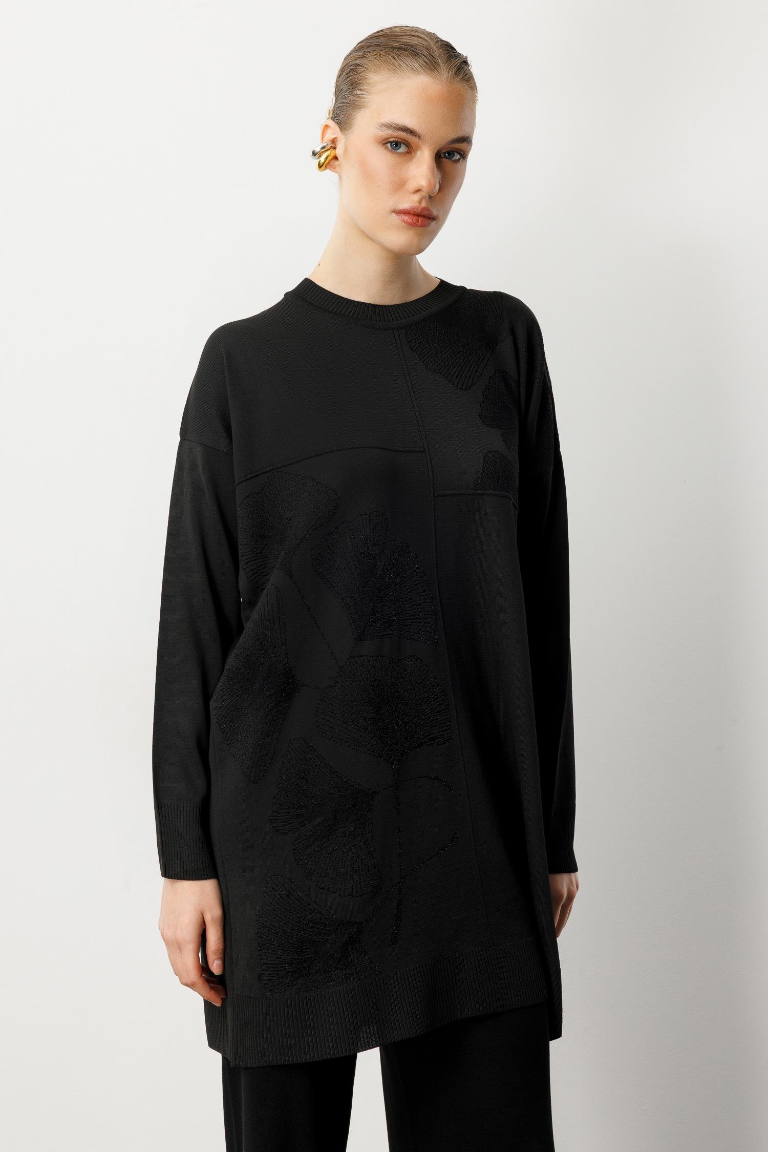 Simli Çiçek Detaylı Triko Tunik-SİYAH (5WT00035261_01)