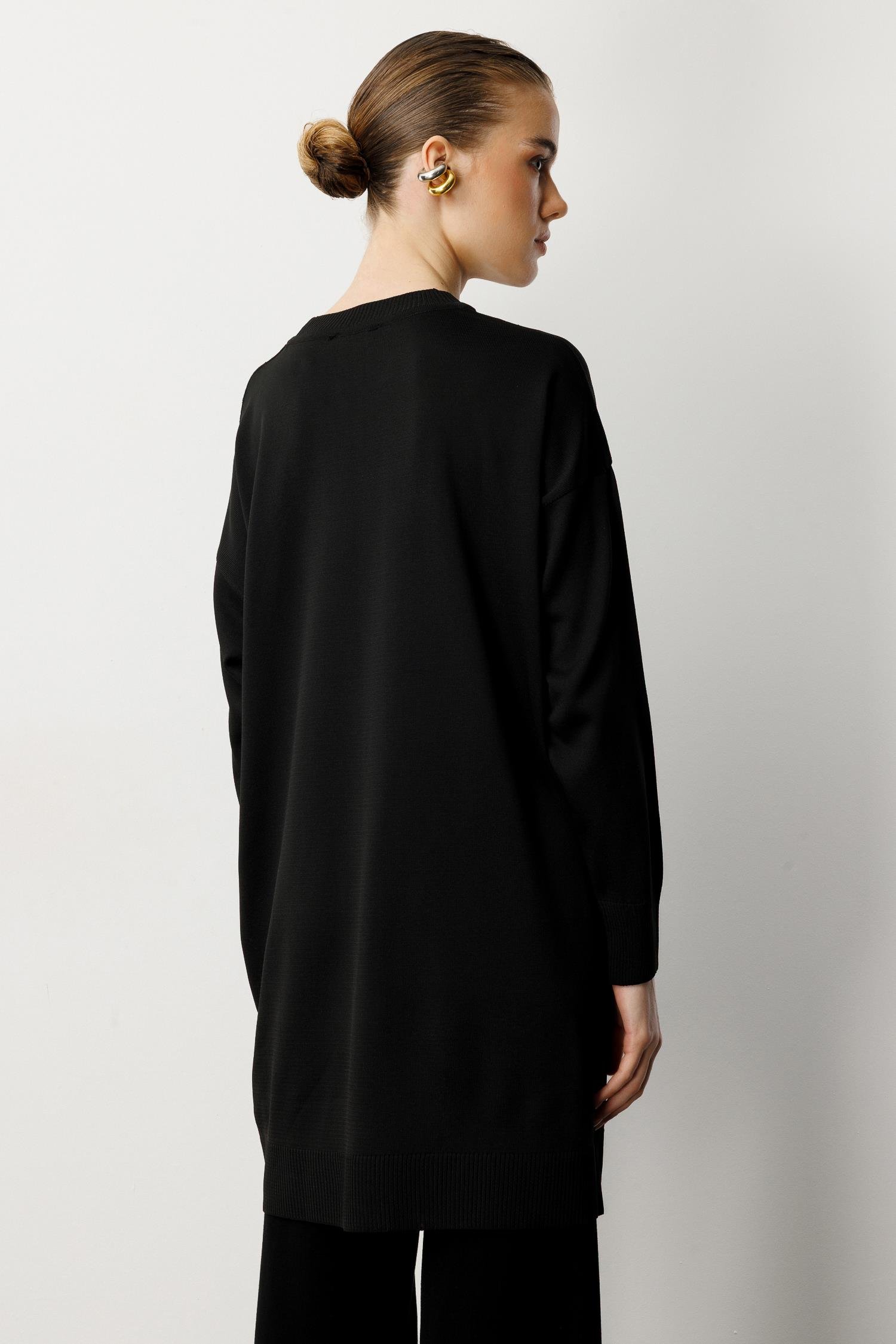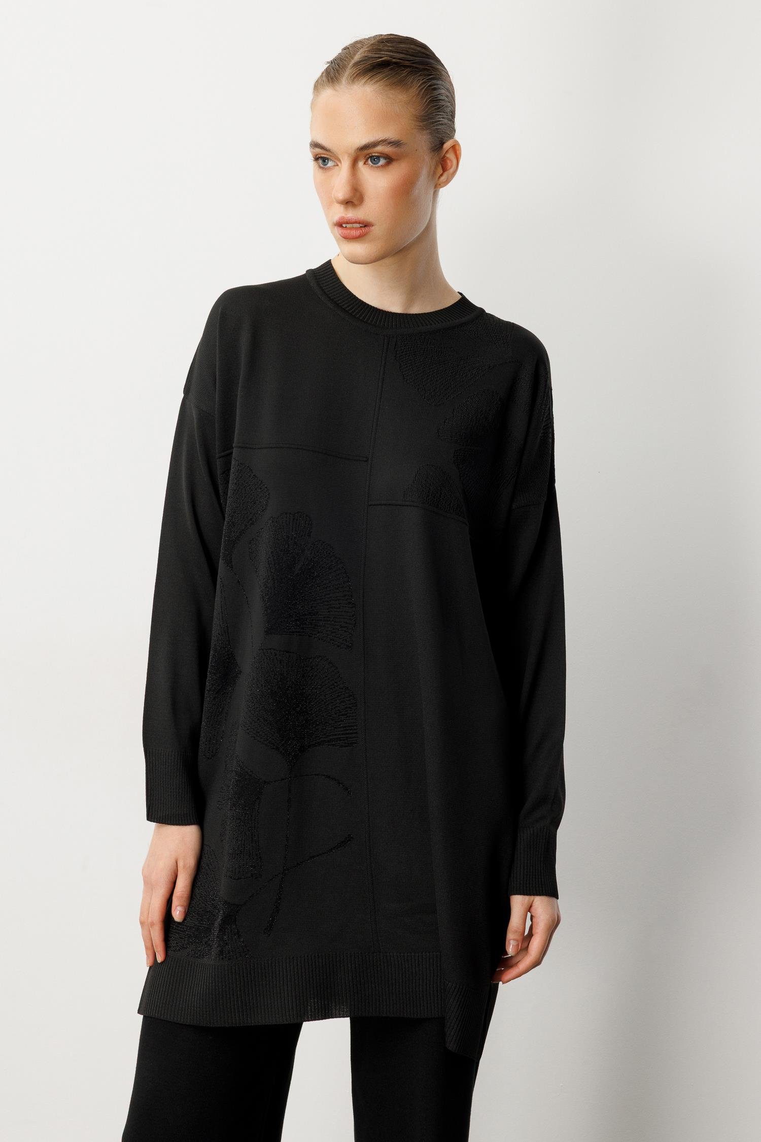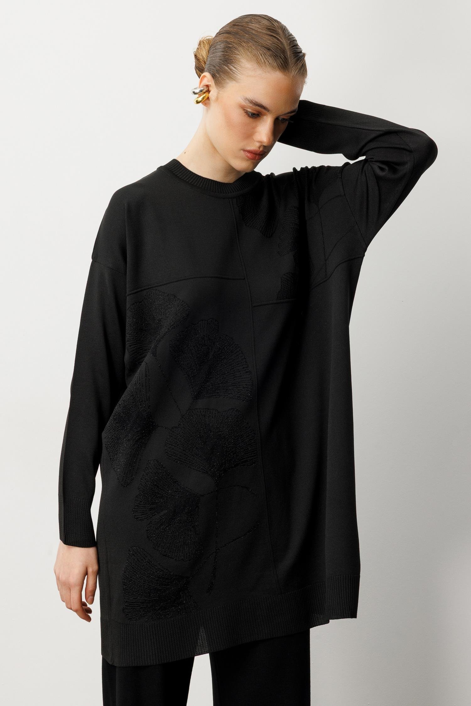 Simli Çiçek Detaylı Triko Tunik-SİYAH (5WT00035261_01)