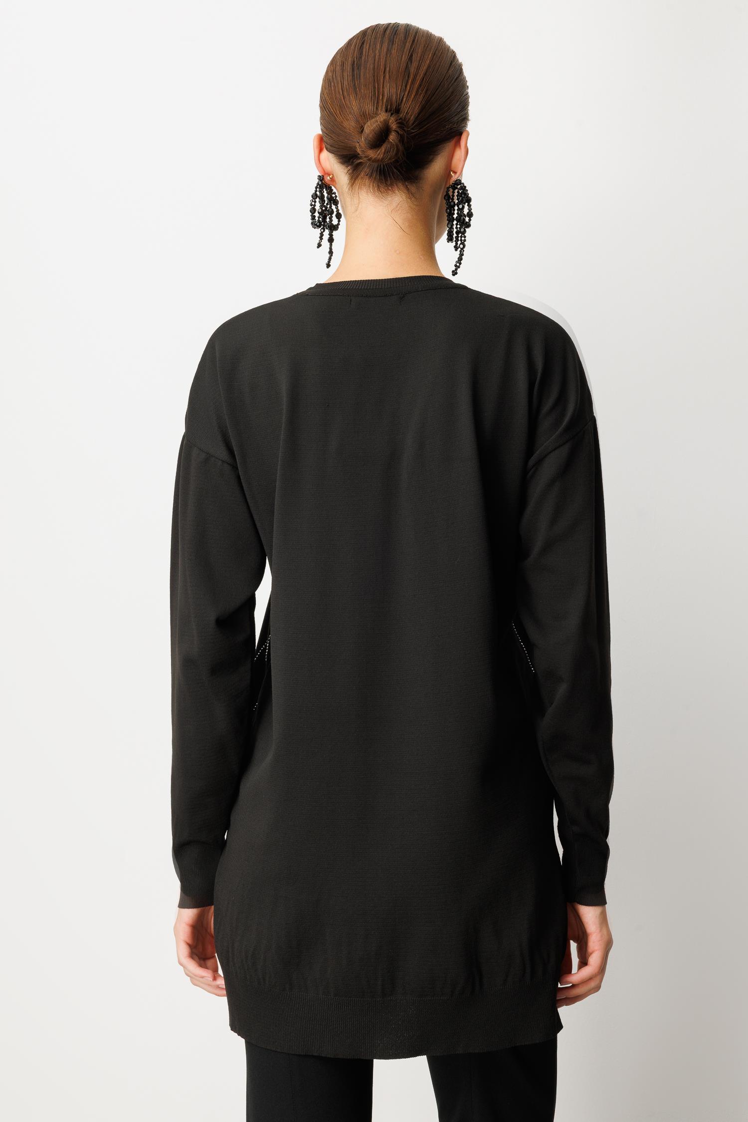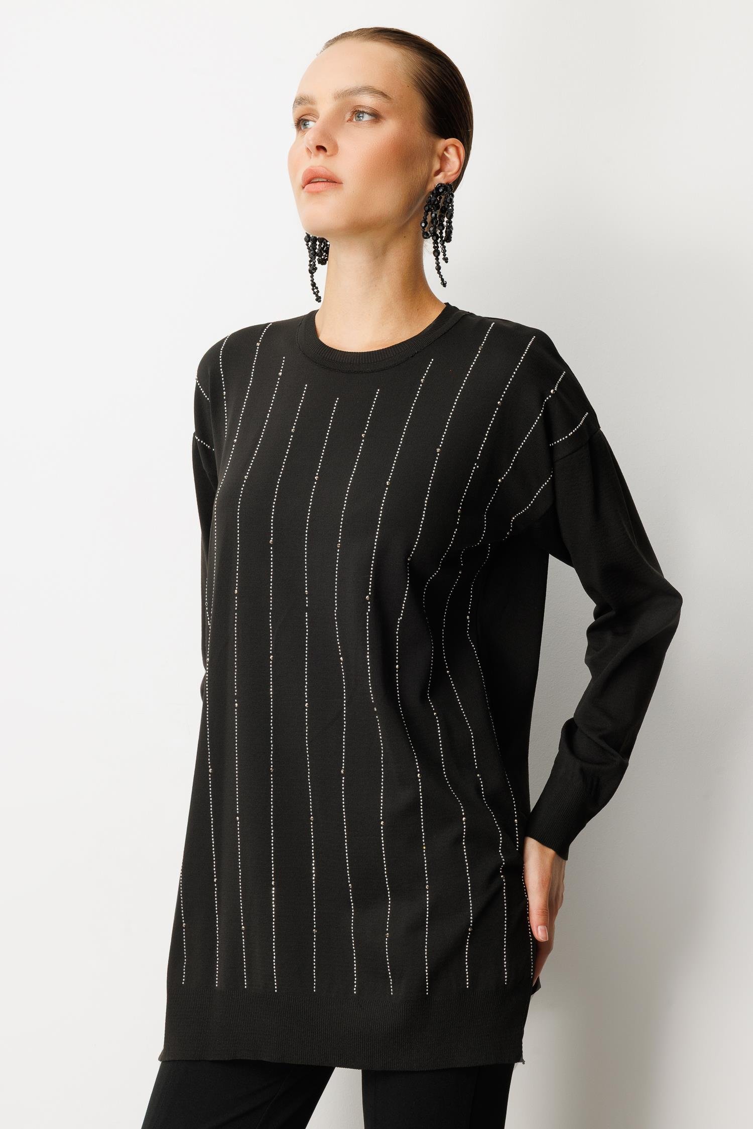 Taş Desen Çizgili Triko Tunik Kazak-SİYAH (5WVTL007207_01)