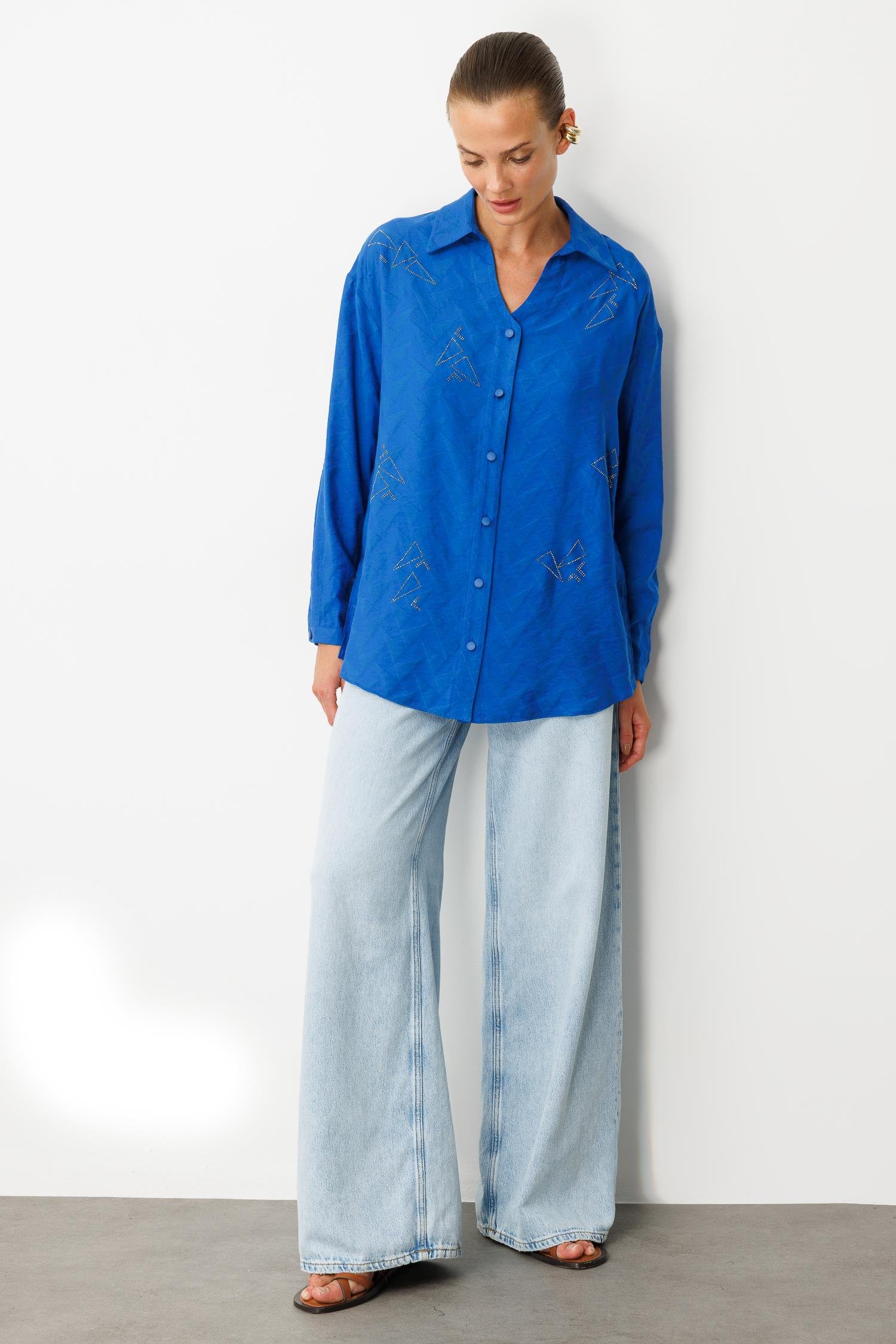Taş Detay Desenli Gömlek-SAX (5SKB81K1431_59)