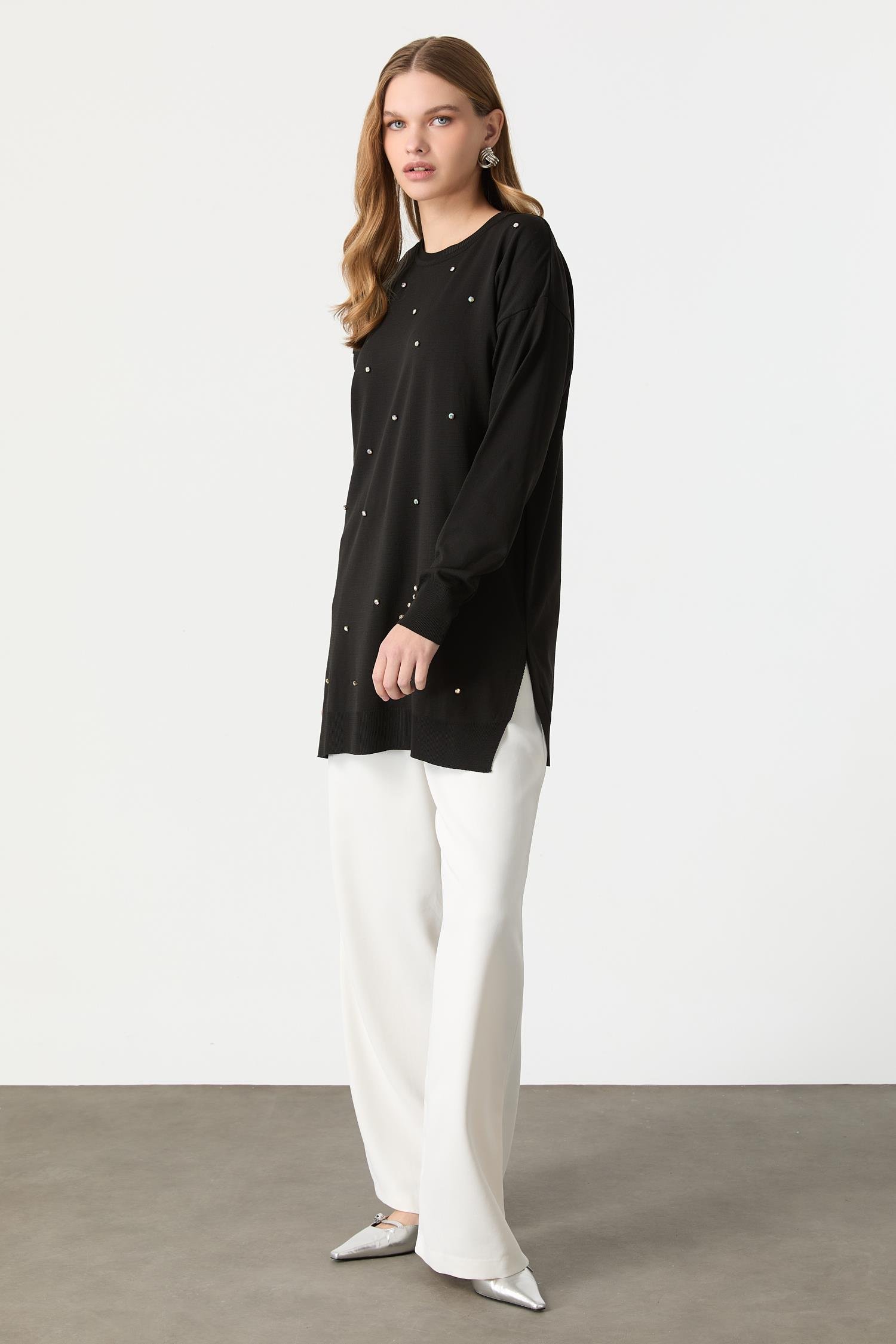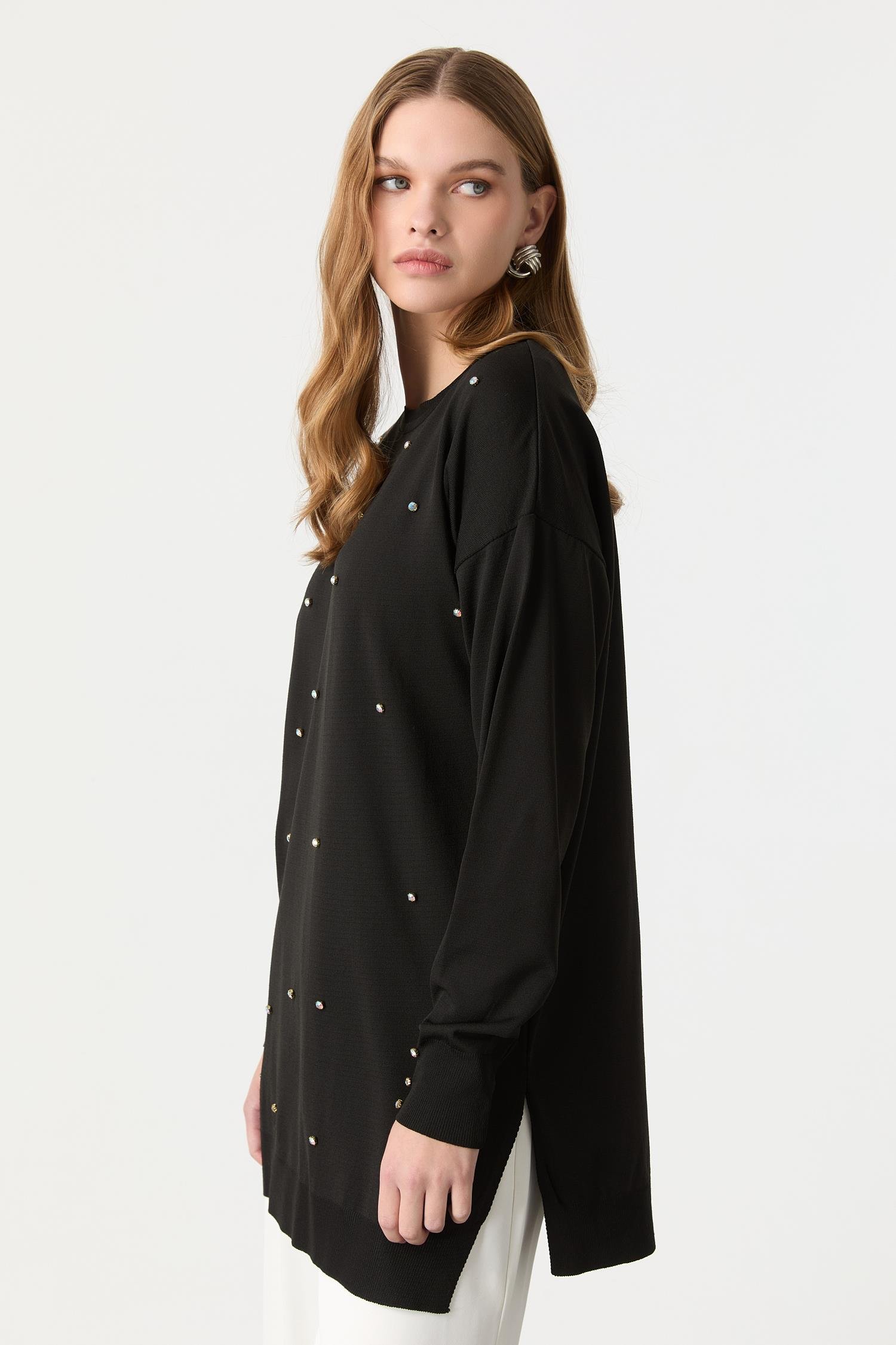 Taş Detaylı Triko Tunik Kazak-SİYAH (5WVTL007210_01)