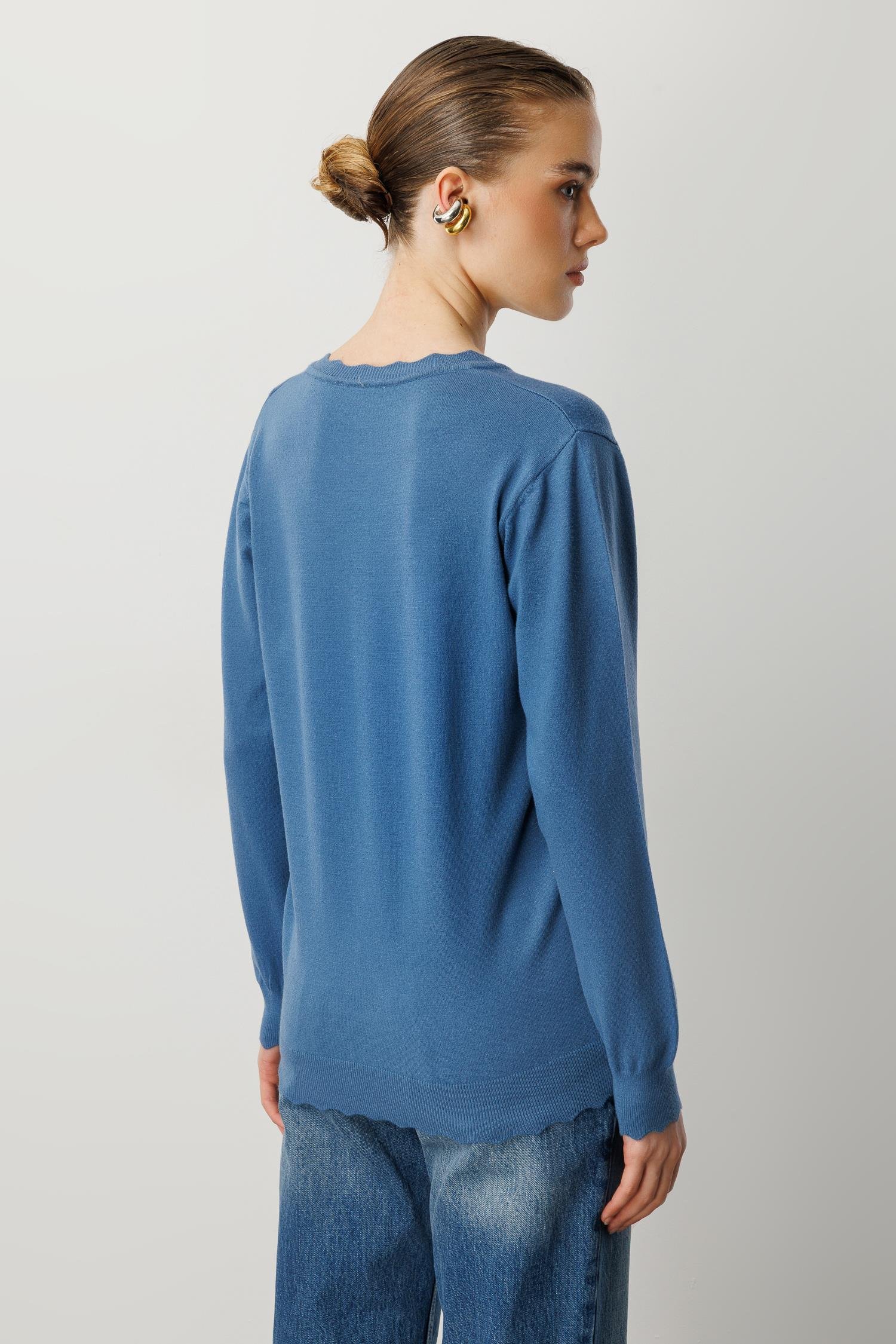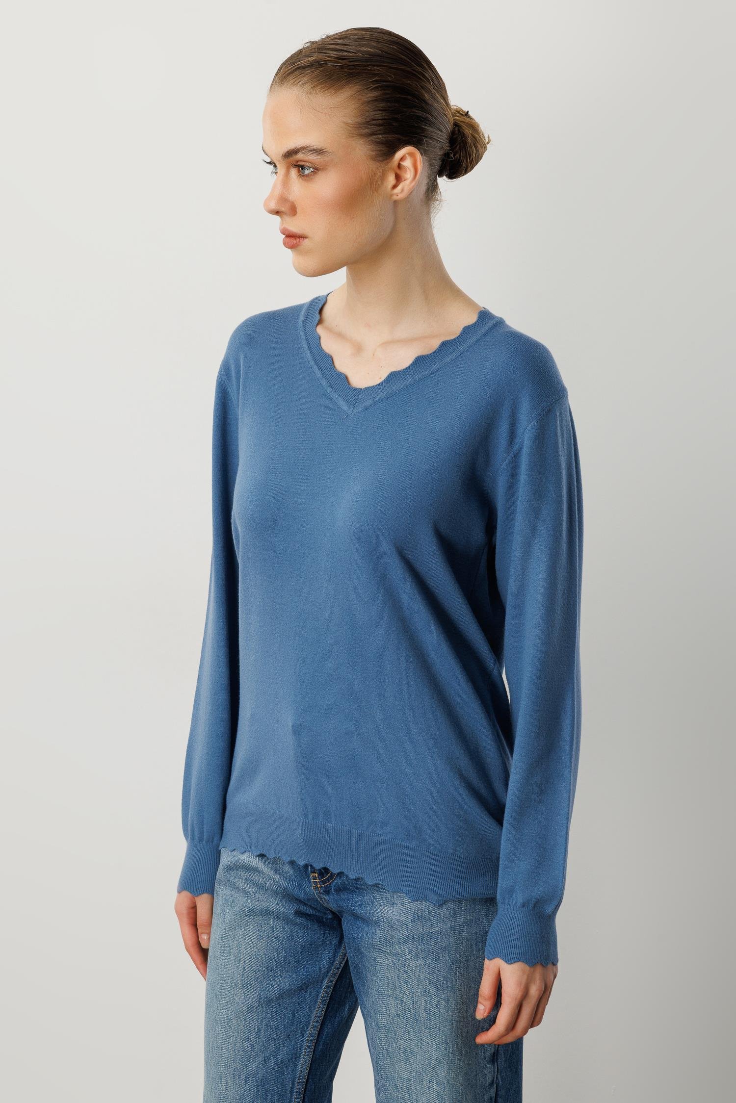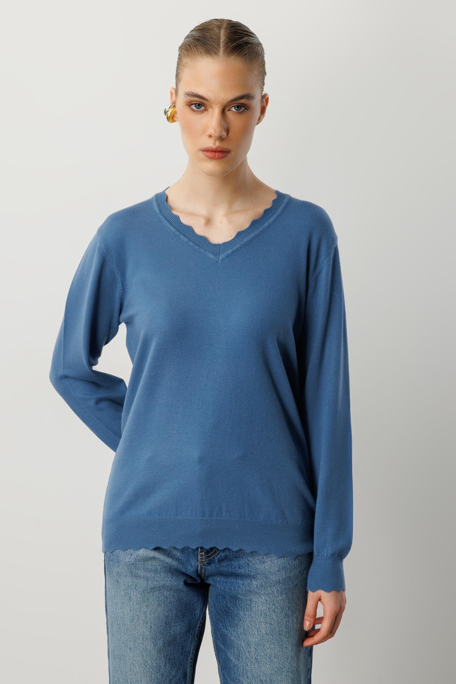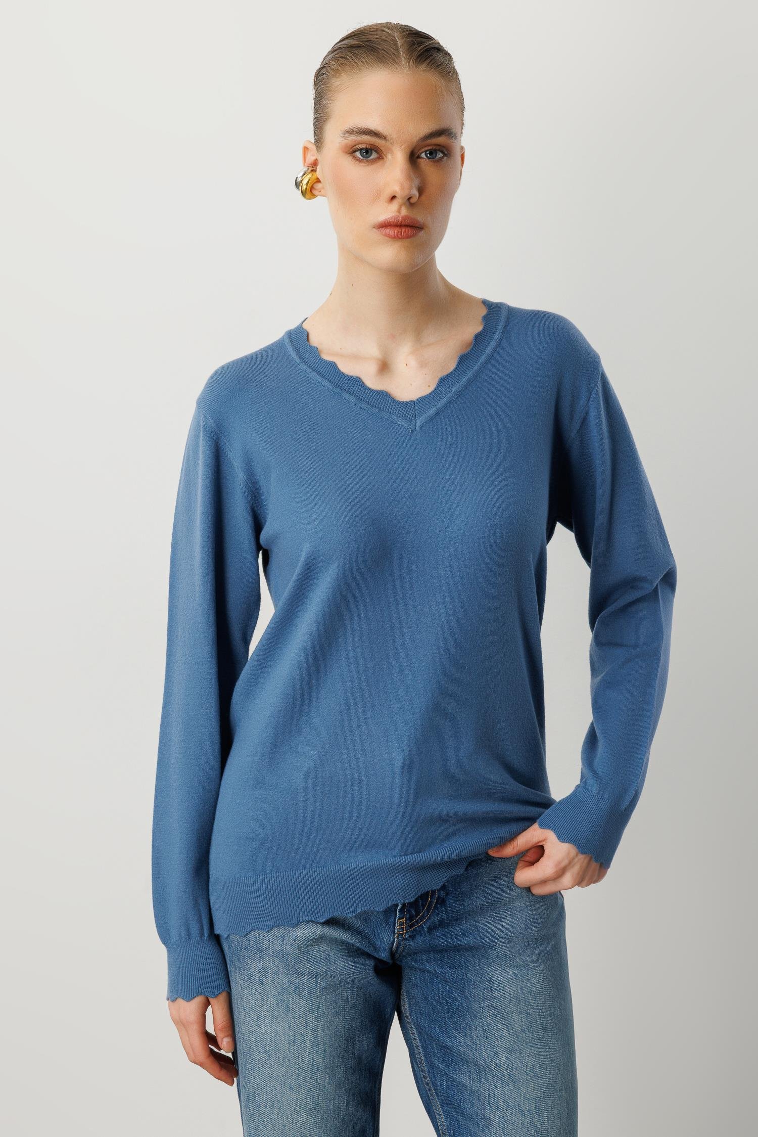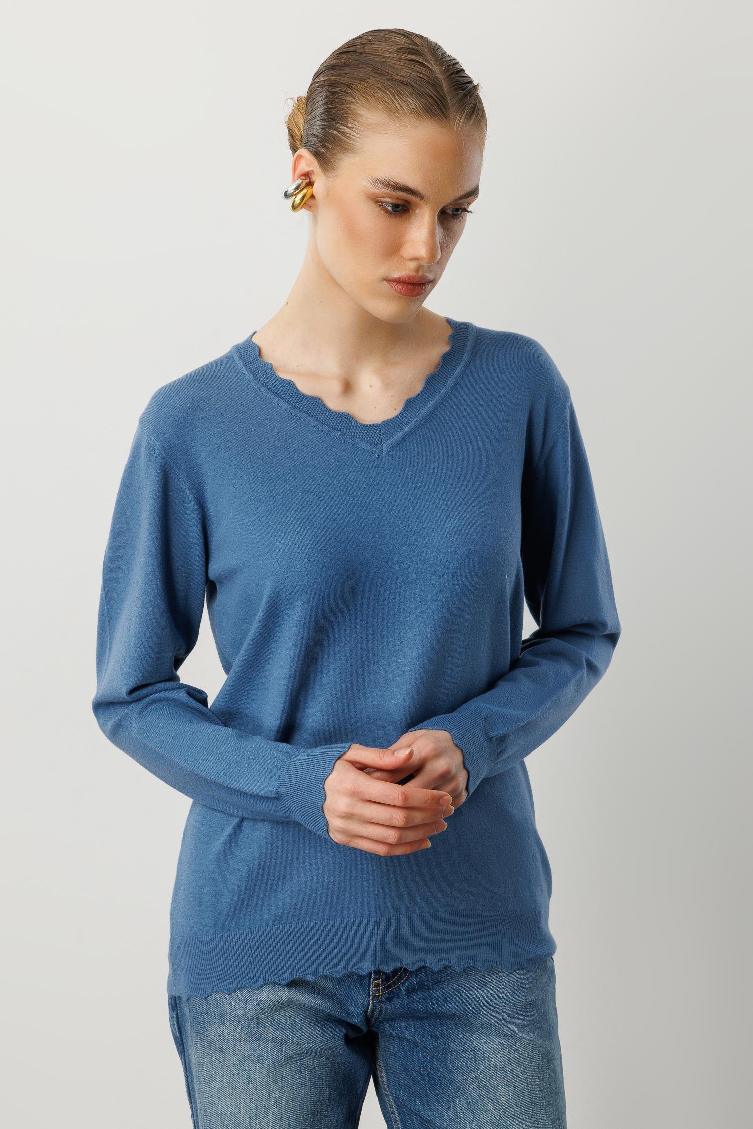 V yaka Angora Triko Kazak-İNDİGO (5WT00035315_60)