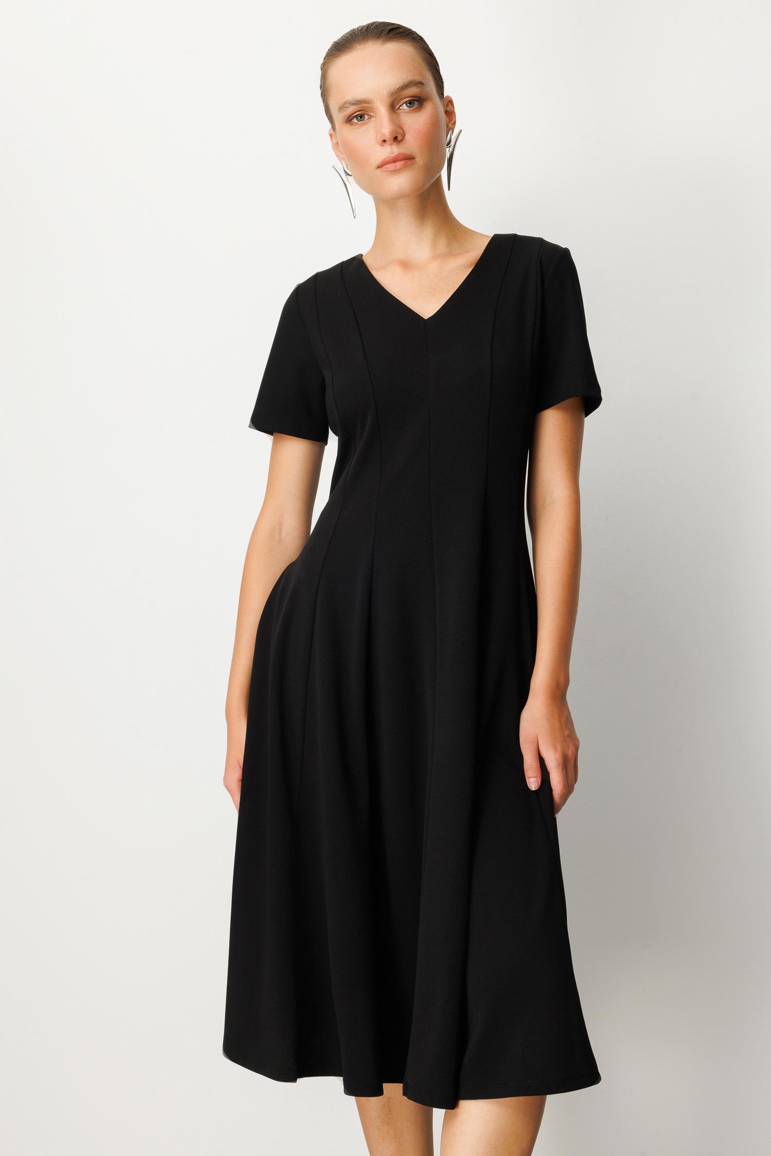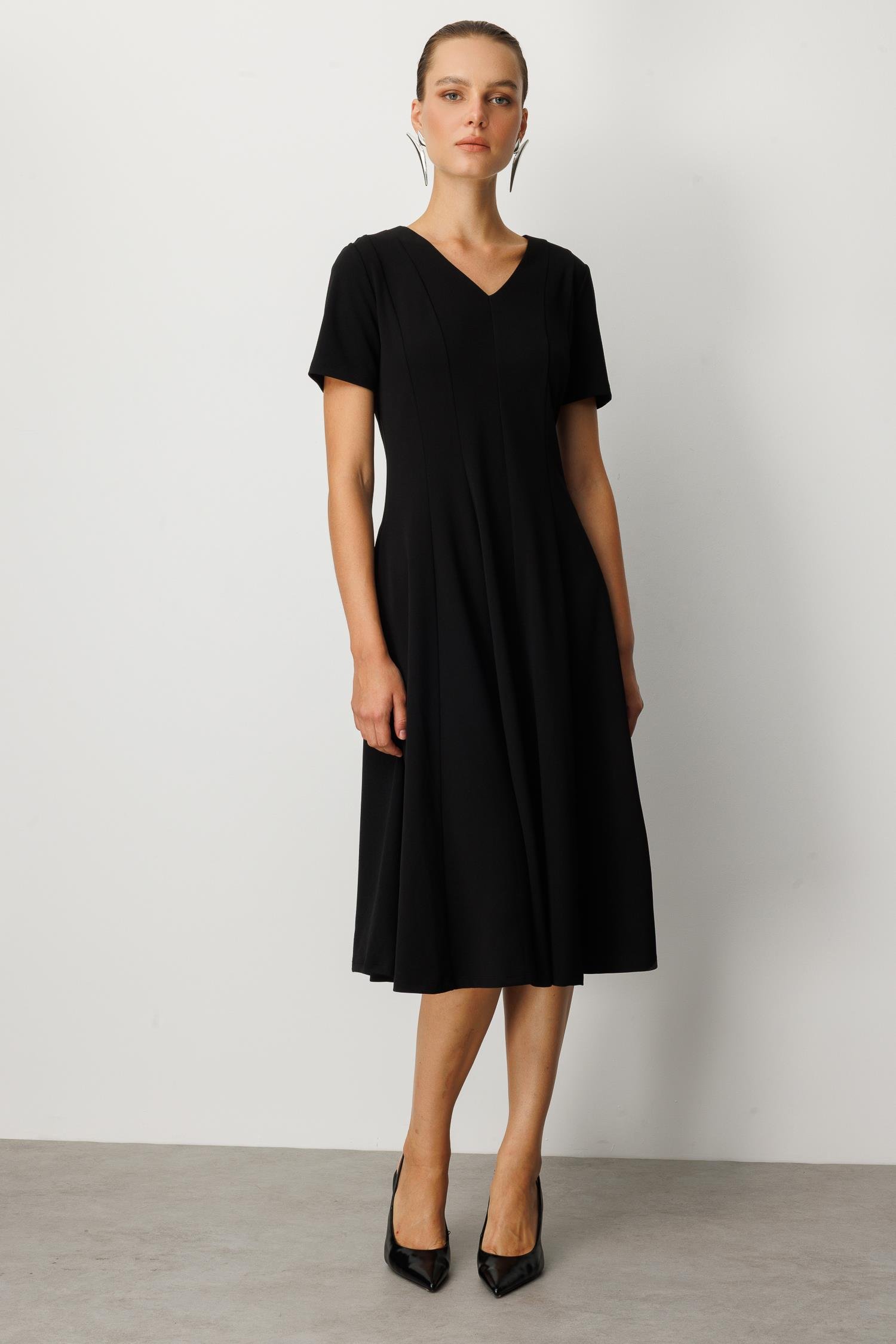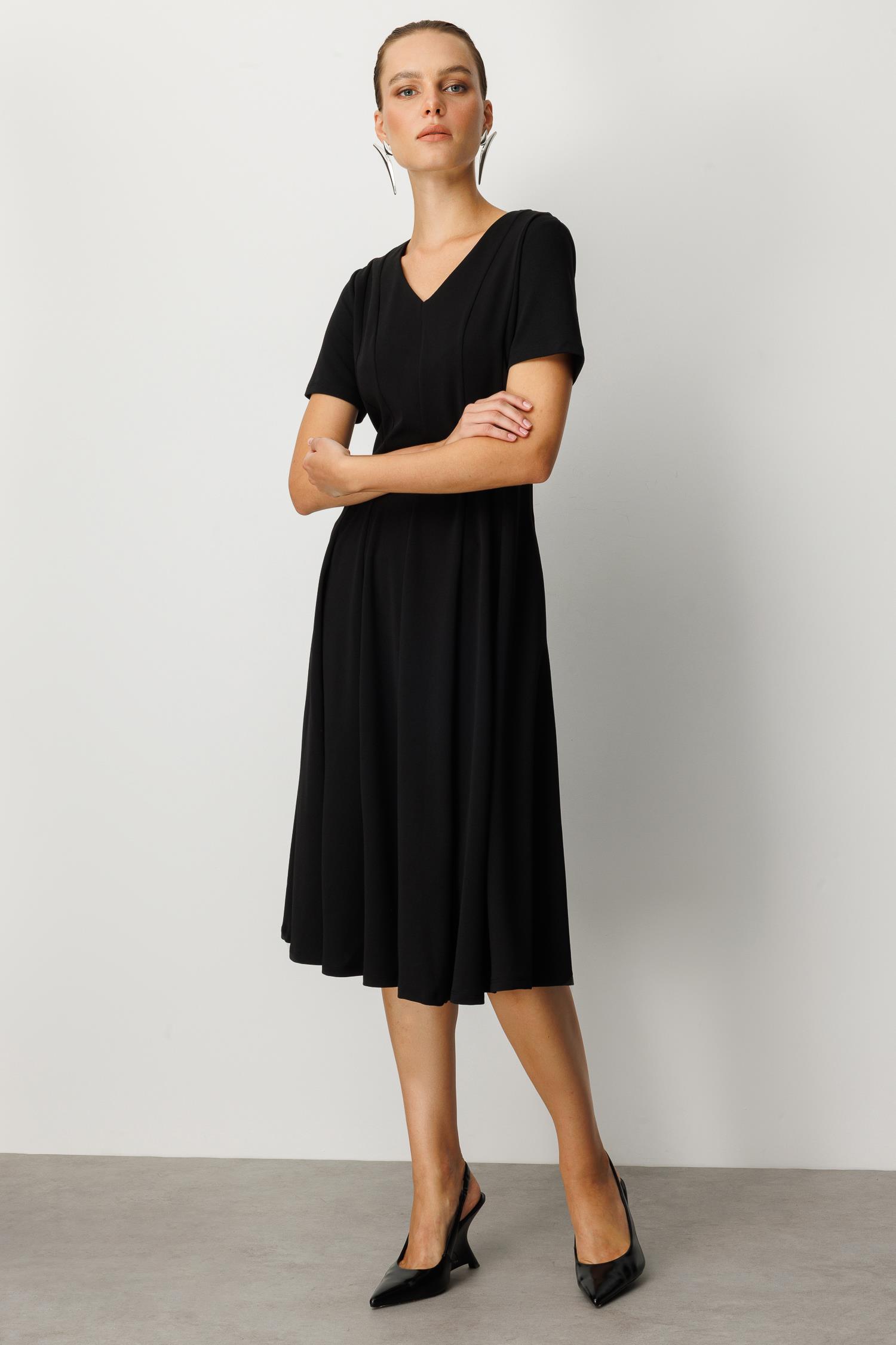 V Yaka Midi Elbise-SİYAH (5WKB51K1523_01)