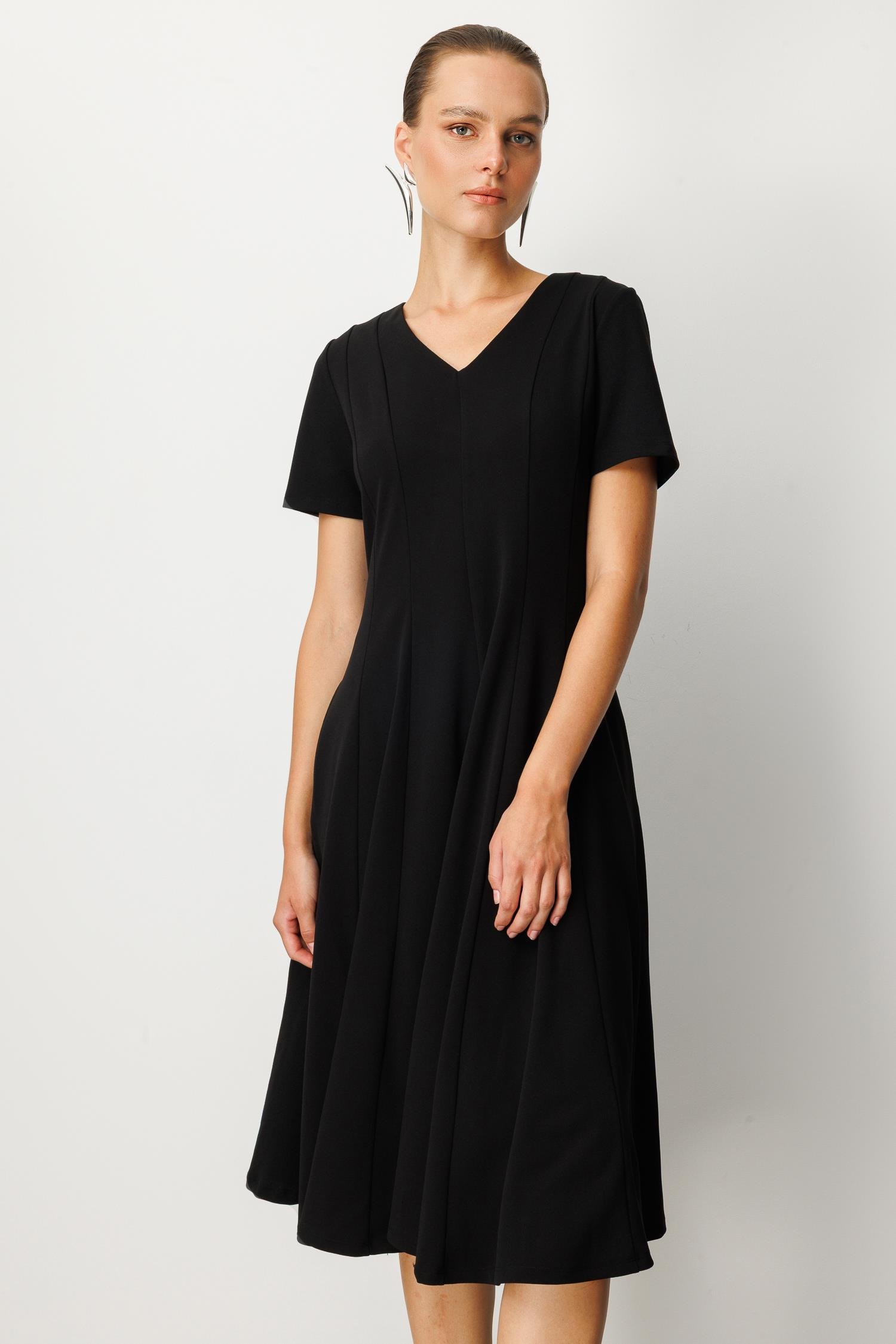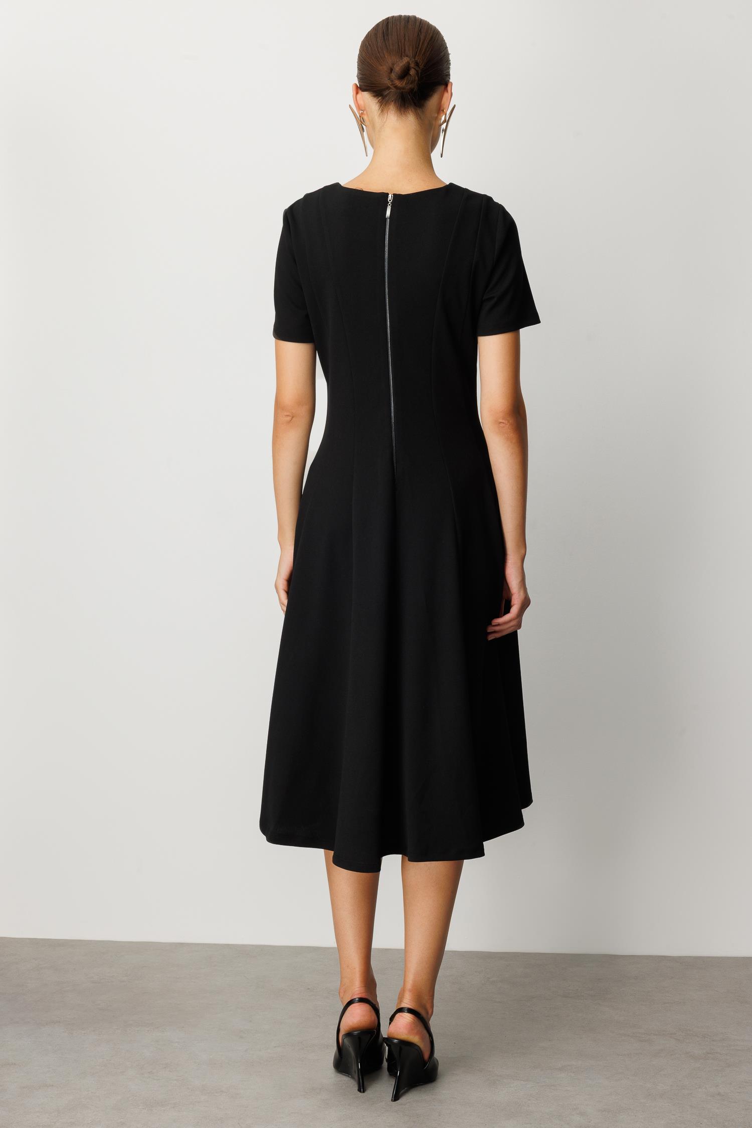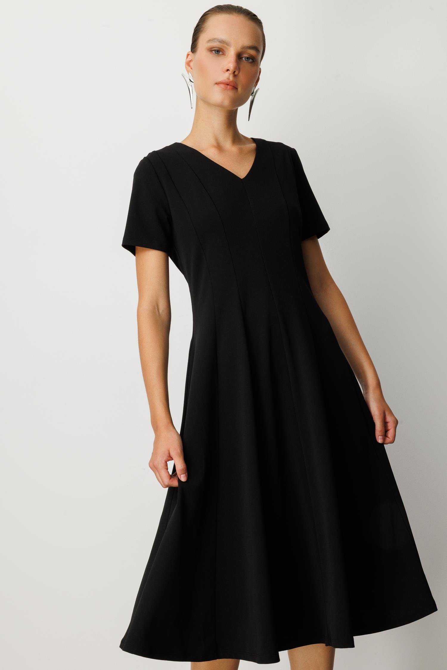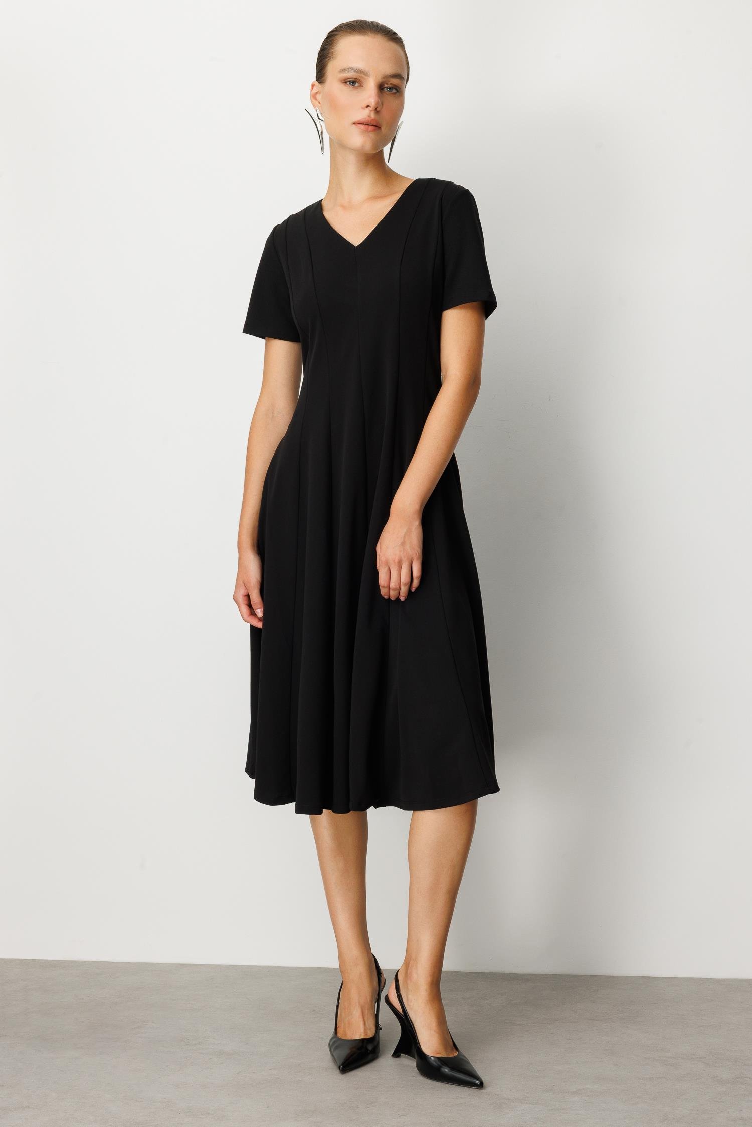 V Yaka Midi Elbise-SİYAH (5WKB51K1523_01)
