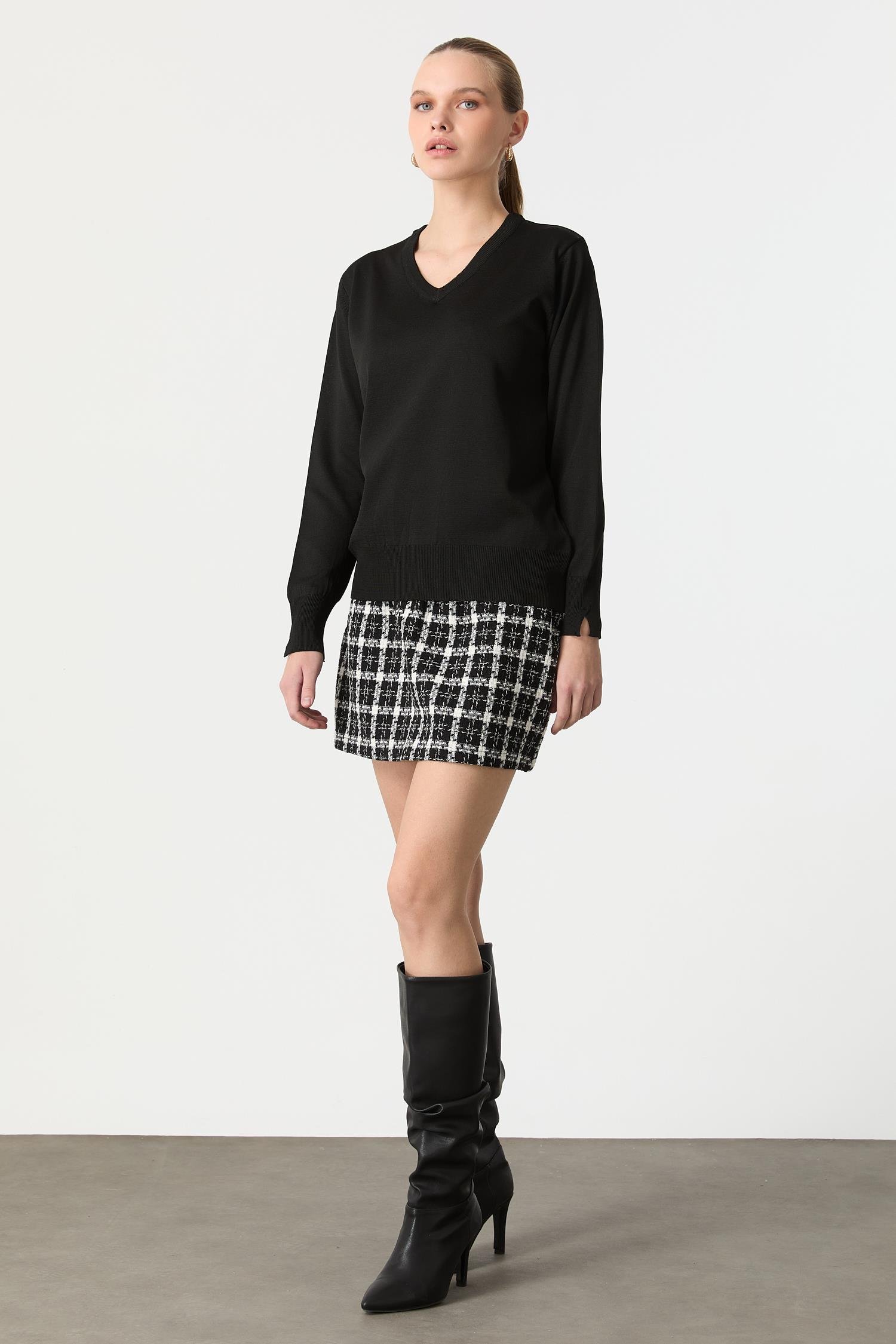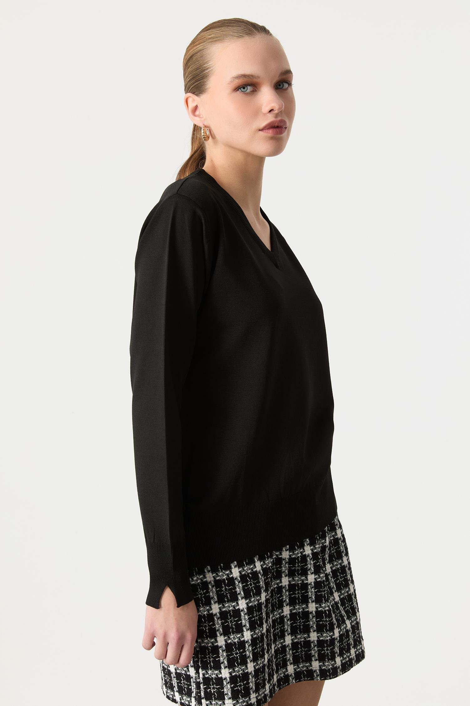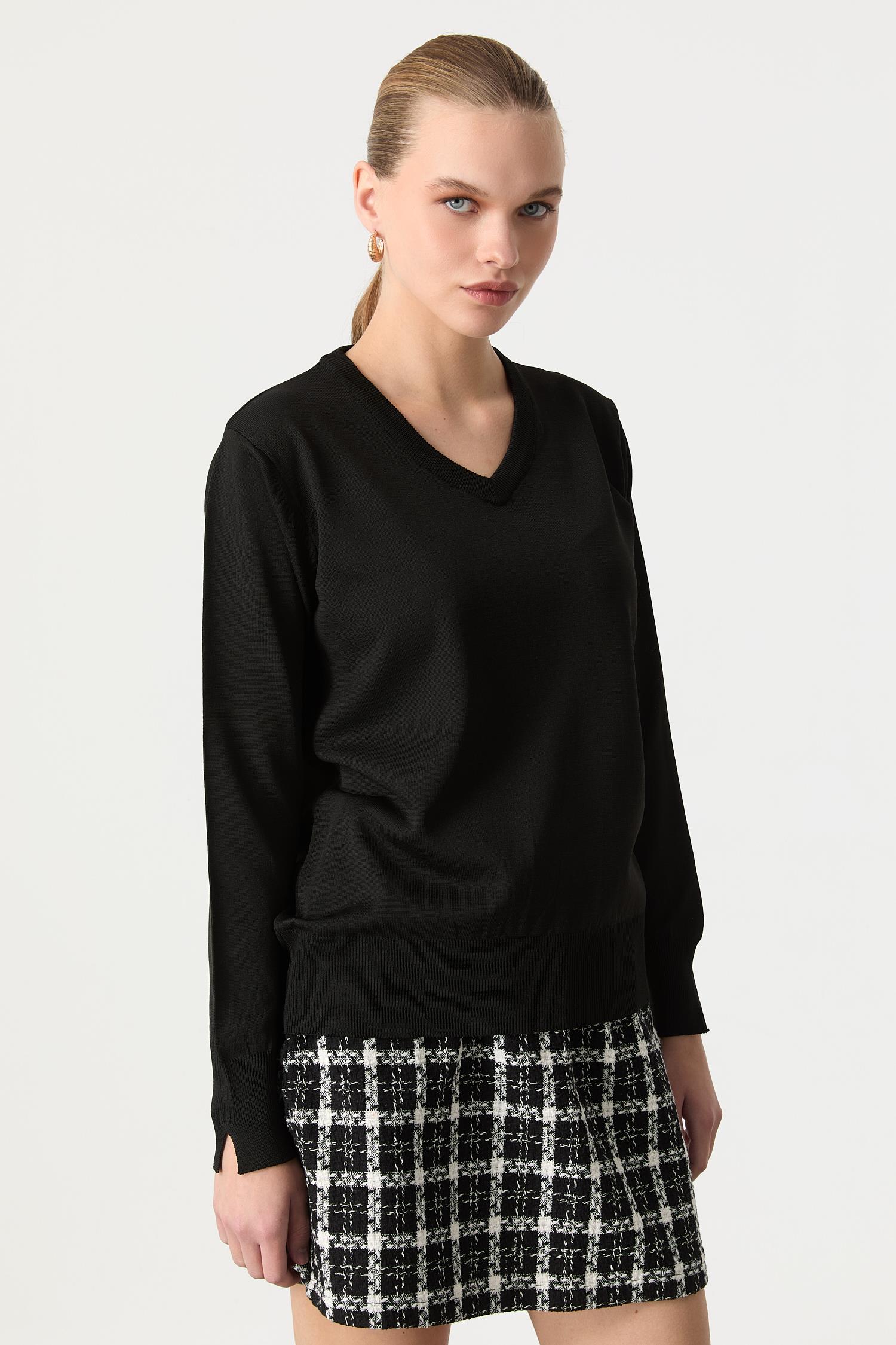 V Yaka Triko Kazak-SİYAH (5WT00036048_01)
