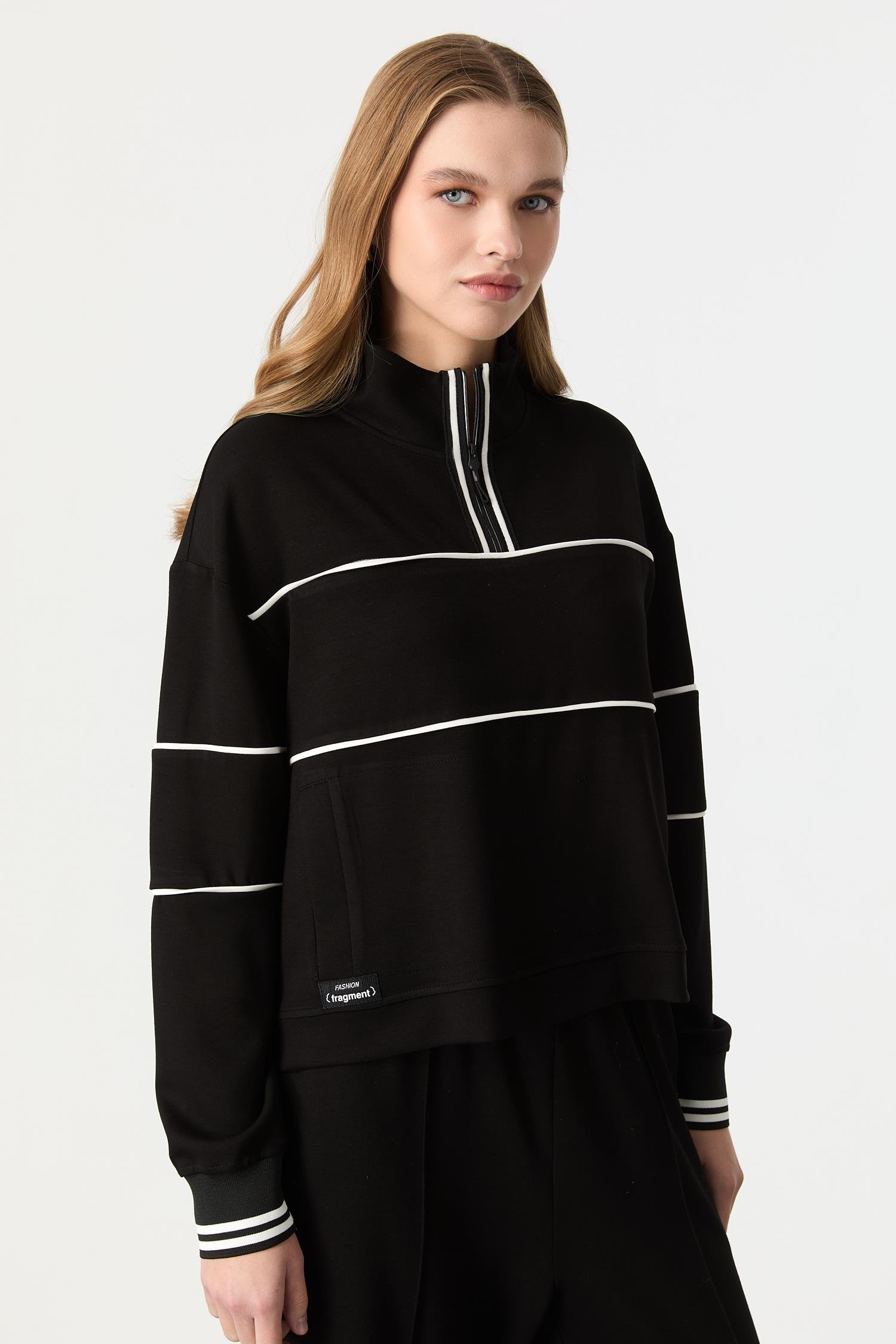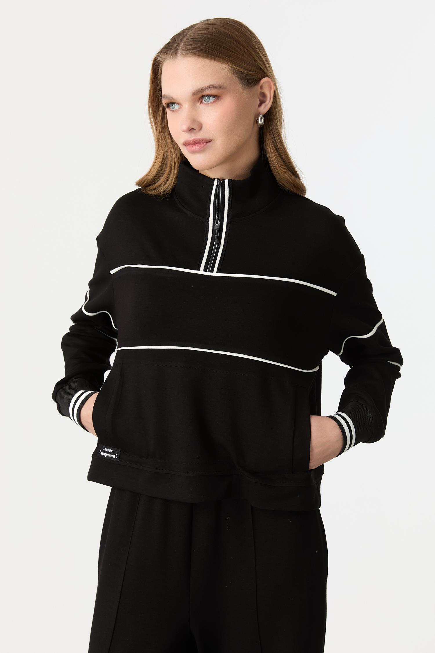 Yakası Fermuarlı Modal Bluz-SİYAH (5WKB81K1701_01)