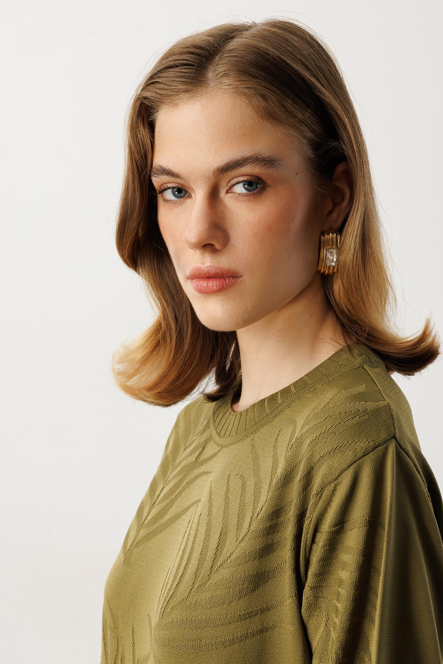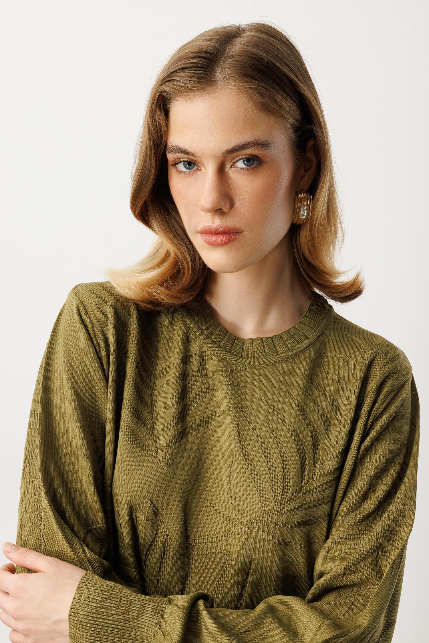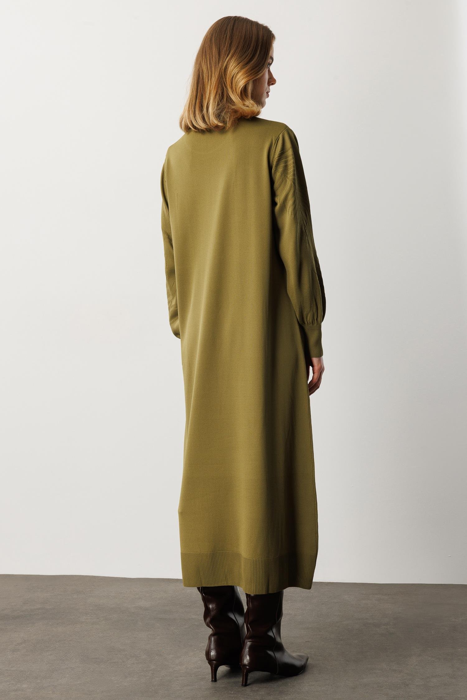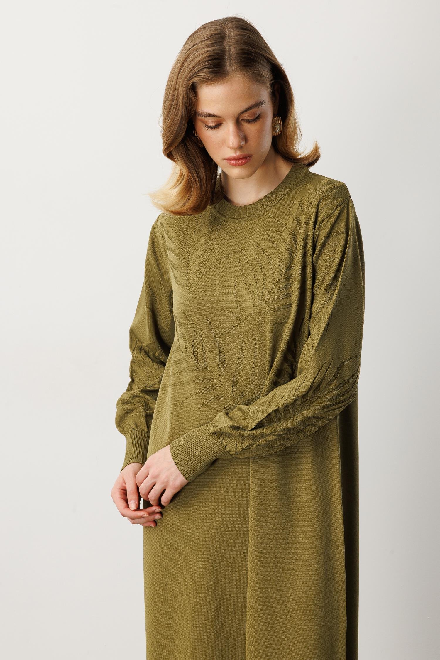 Yaprak Desenli Uzun Triko Elbise-Y.YEŞİLİ (5WT00035258-84)