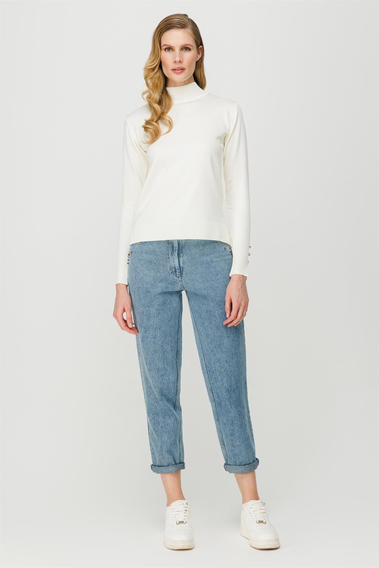 Yarım Balıkçı Basic Triko Kazak - EKRU