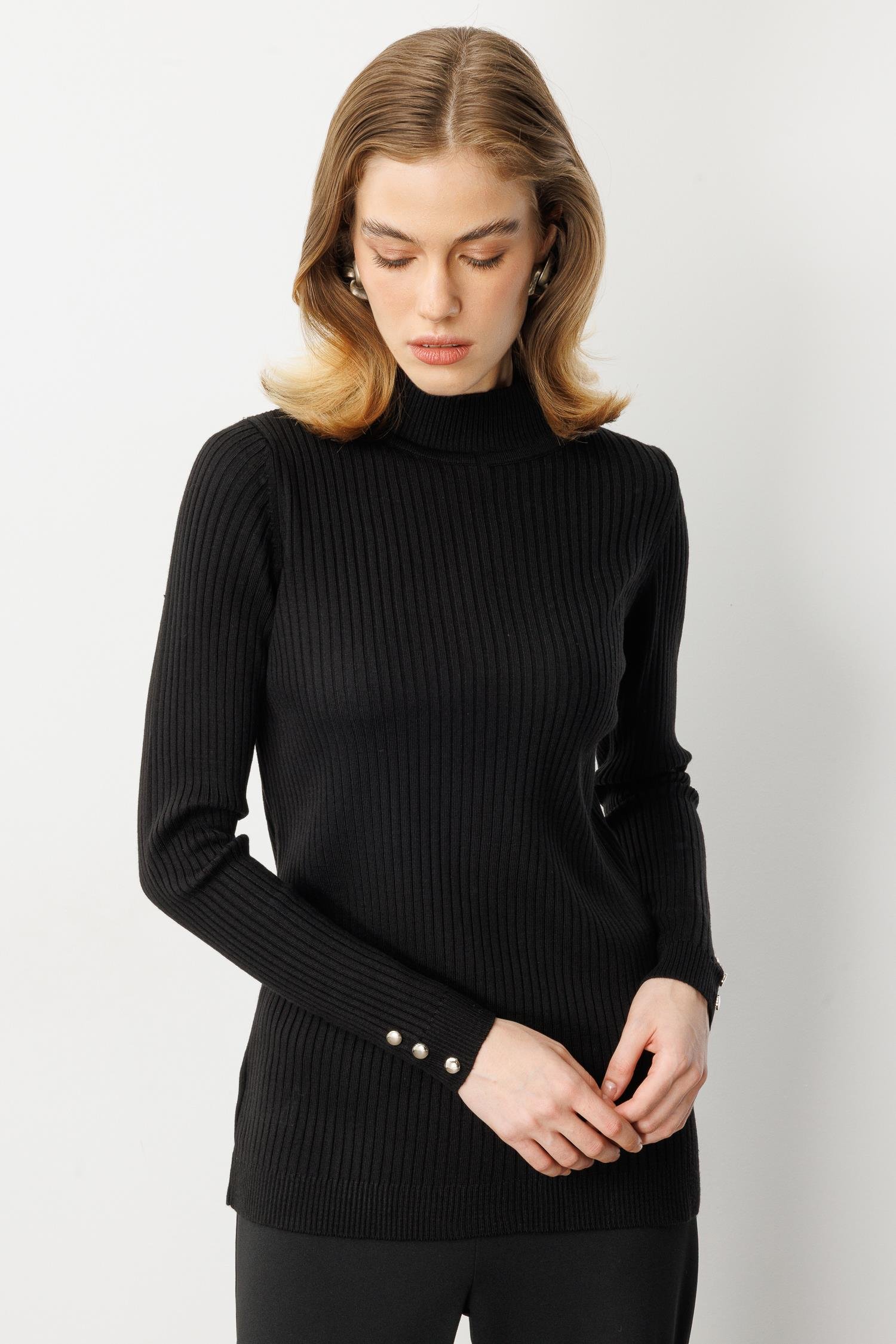 Yarım Balıkçı Fitilli Triko Kazak-SİYAH (5WTU0005002_01)