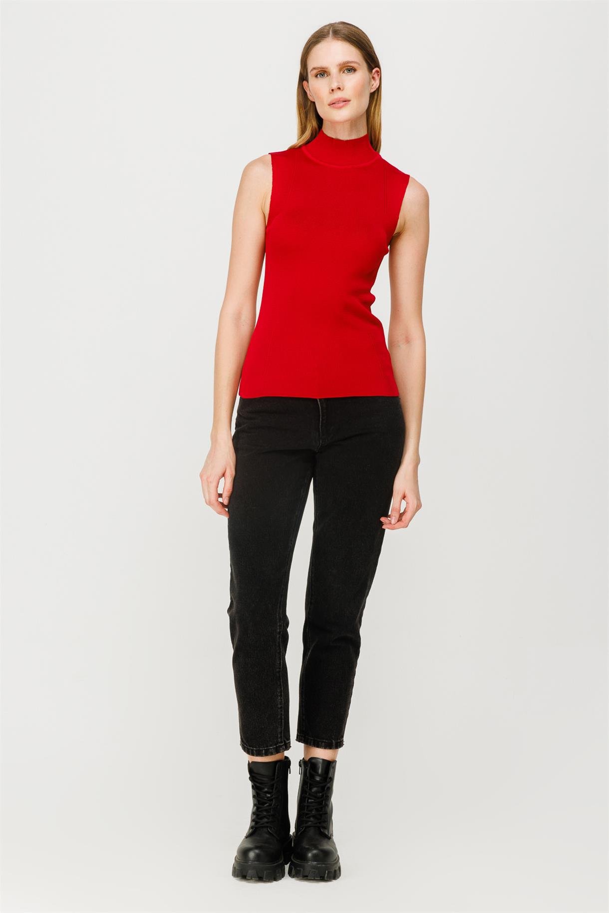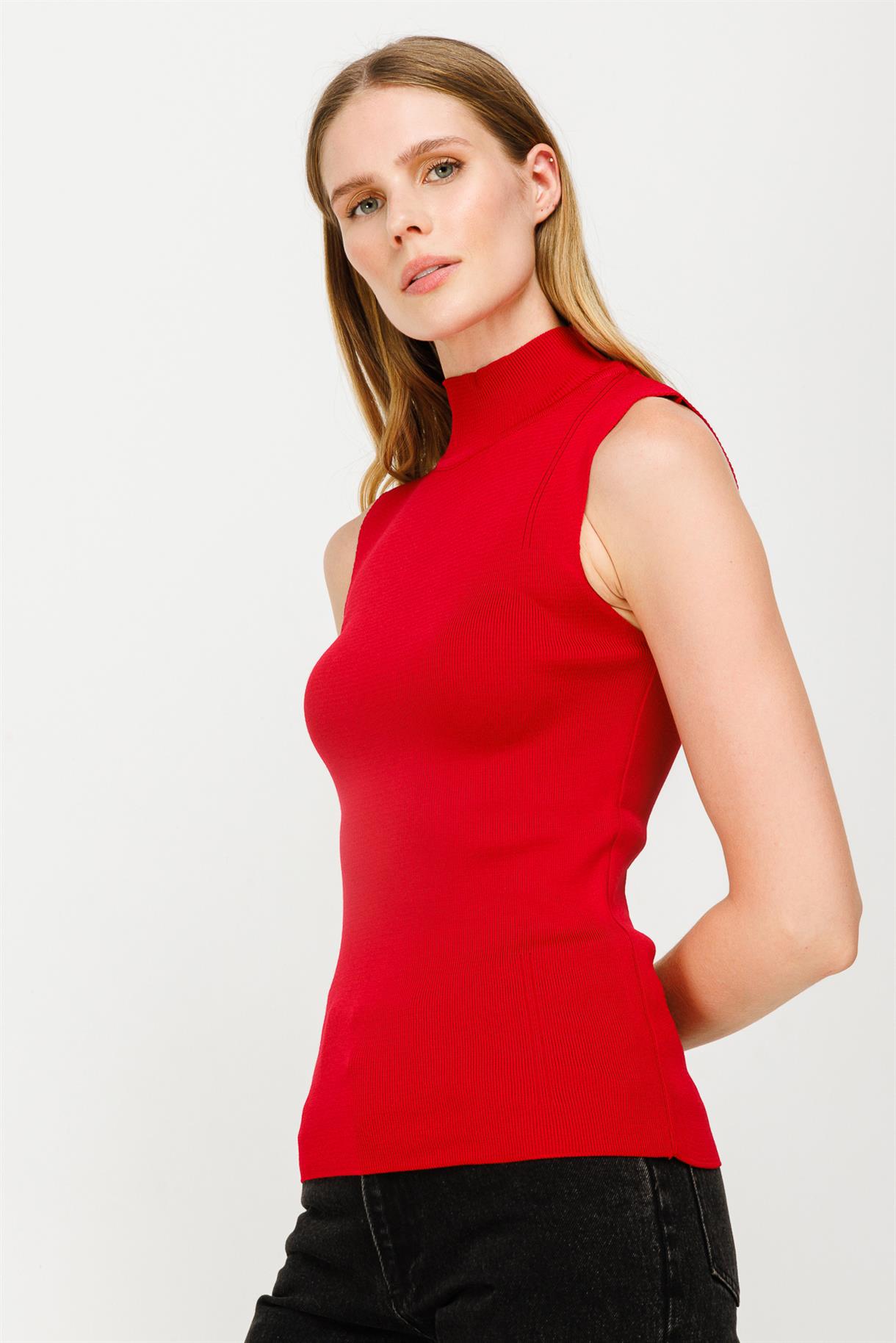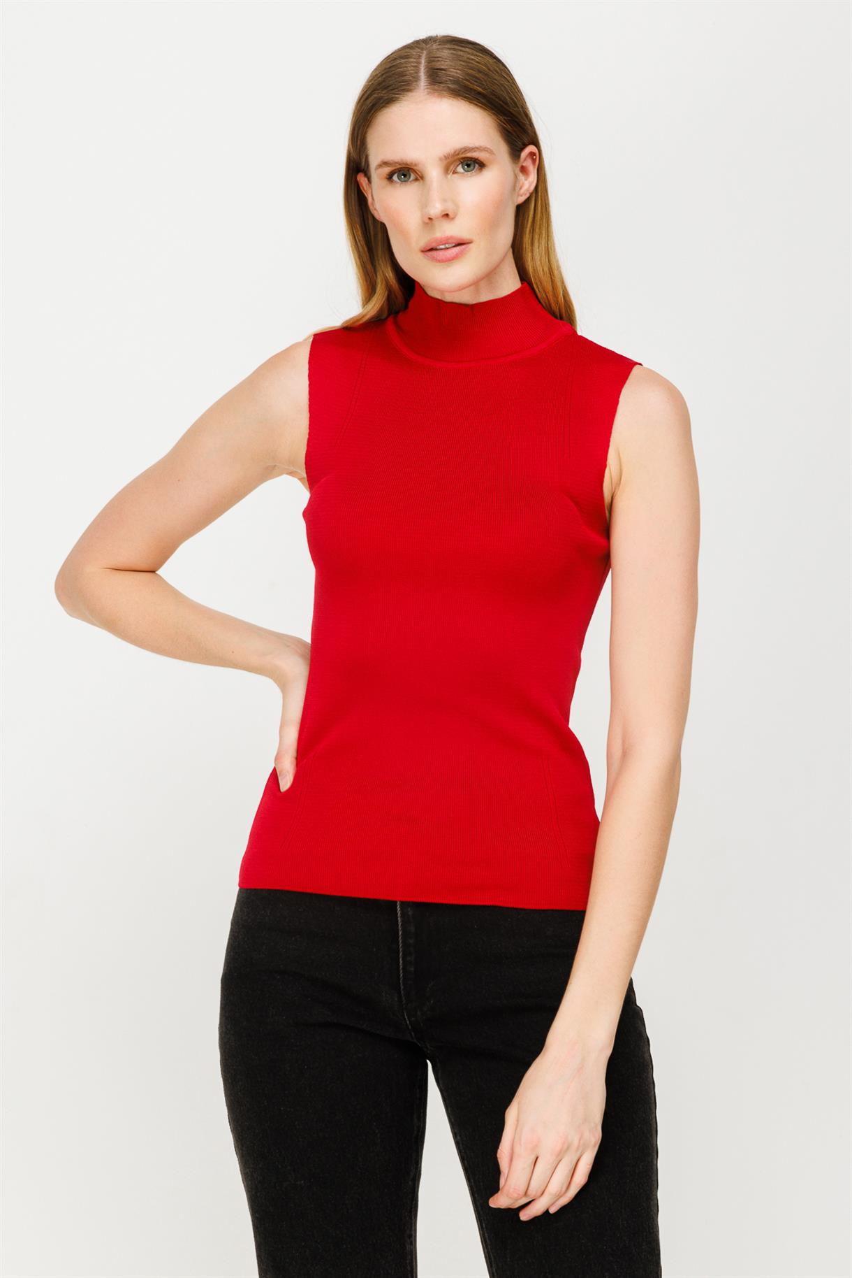 Yarım Balıkçı Kolsuz Basic Triko Kazak-KIRMIZI (3WT00034042_45)