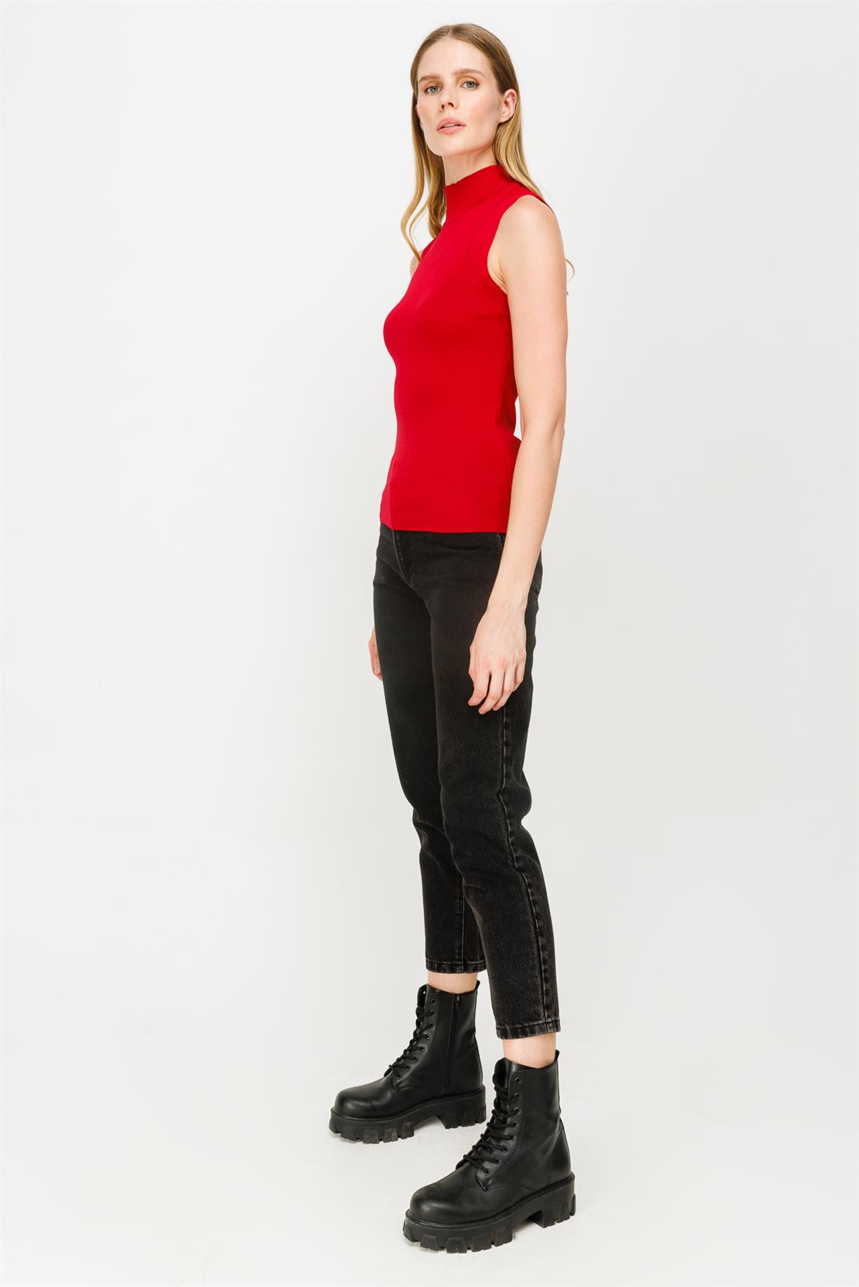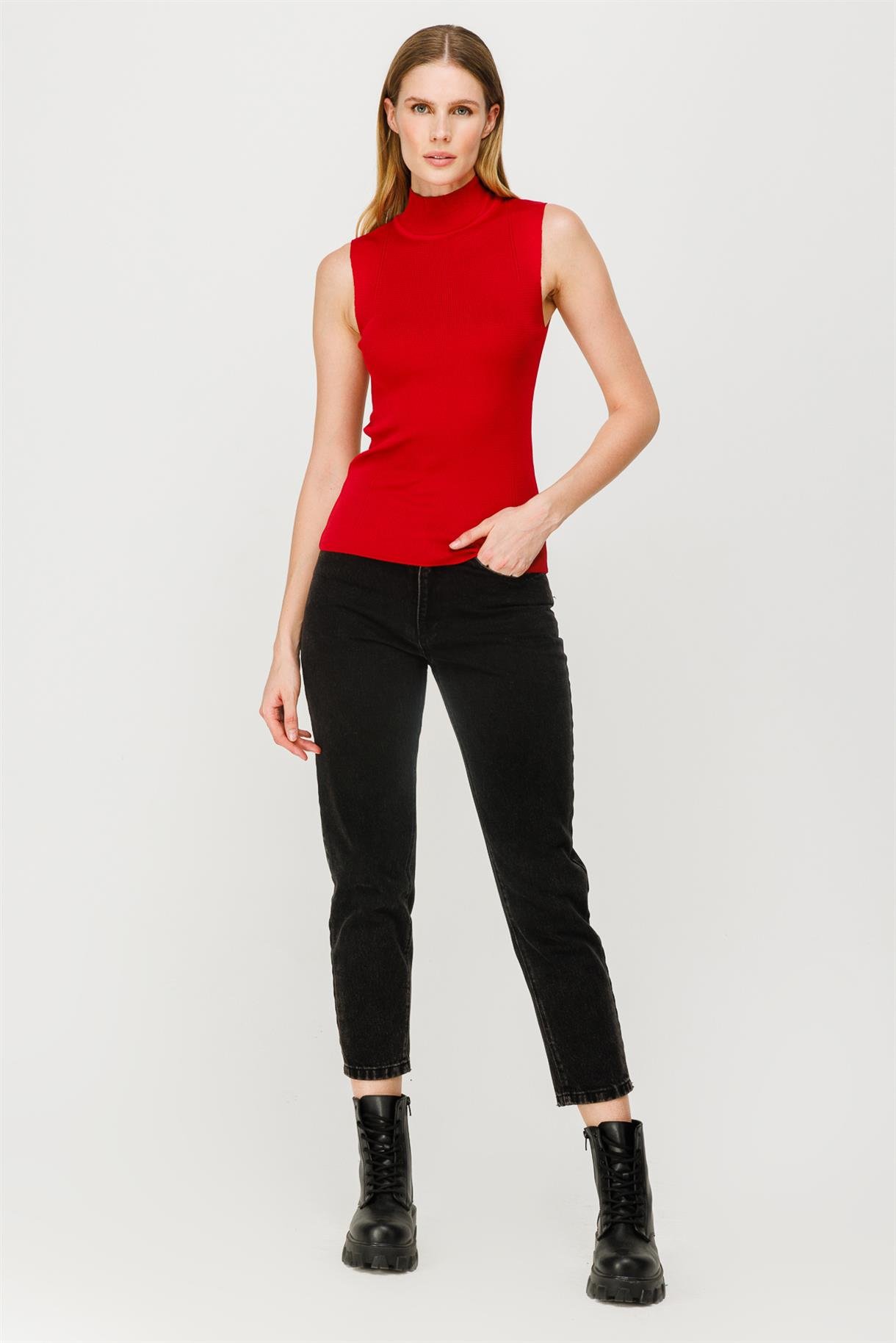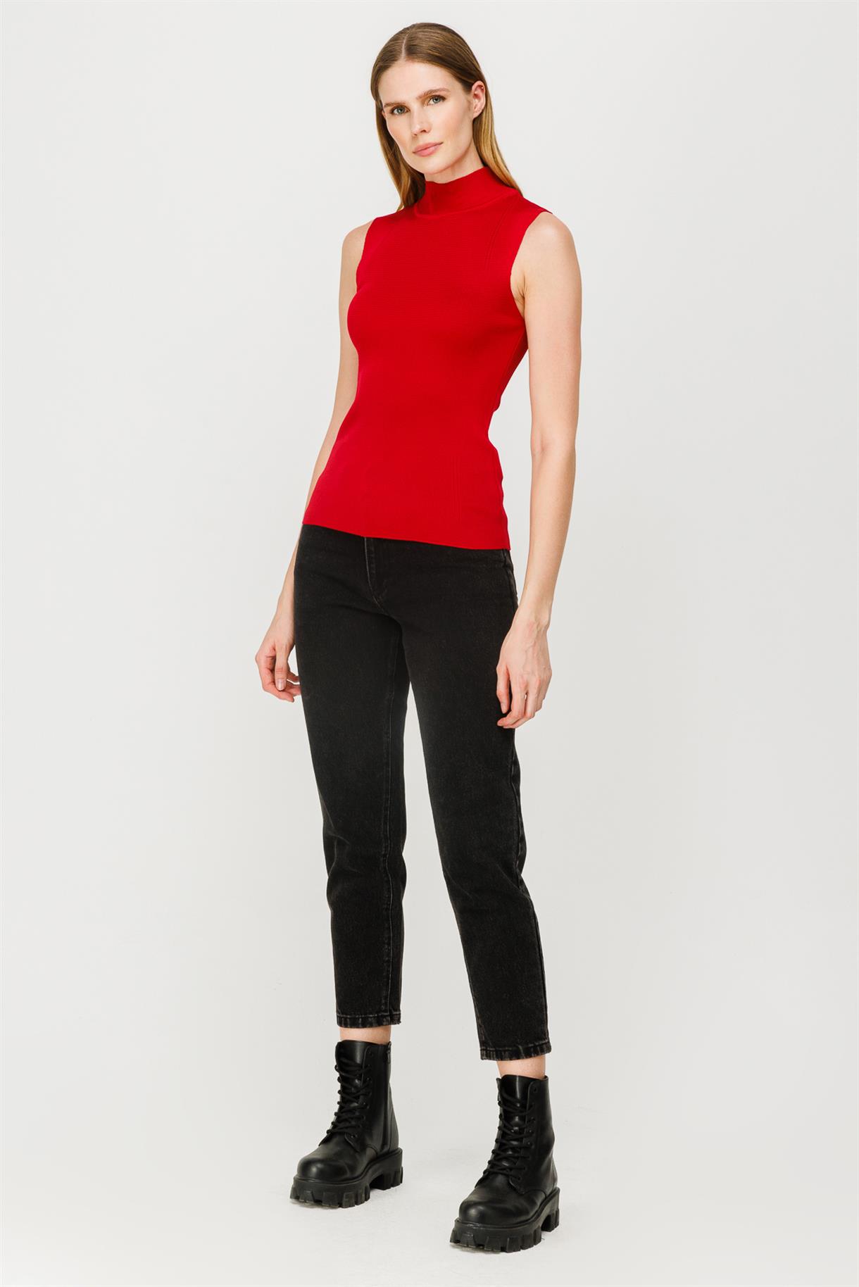 Yarım Balıkçı Kolsuz Basic Triko Kazak-KIRMIZI (3WT00034042_45)
