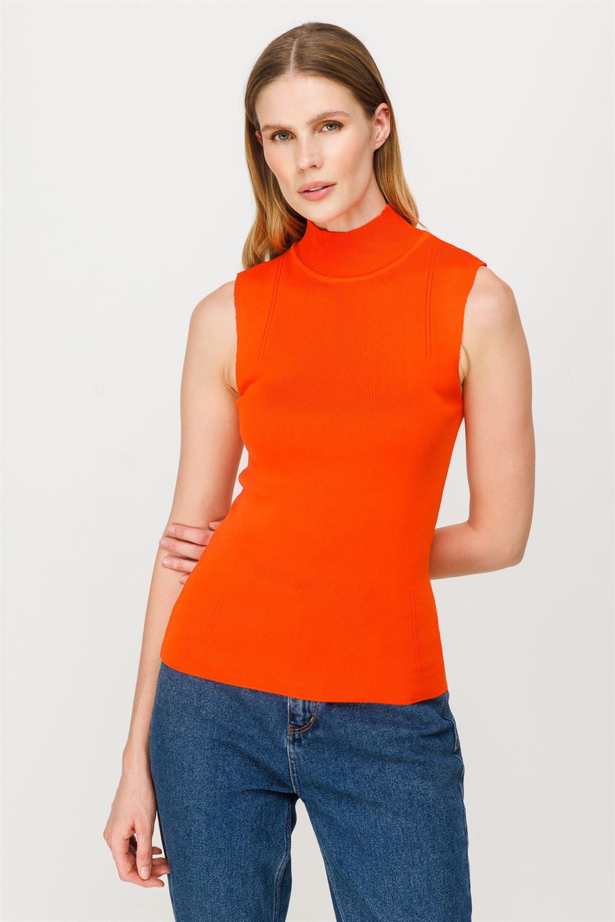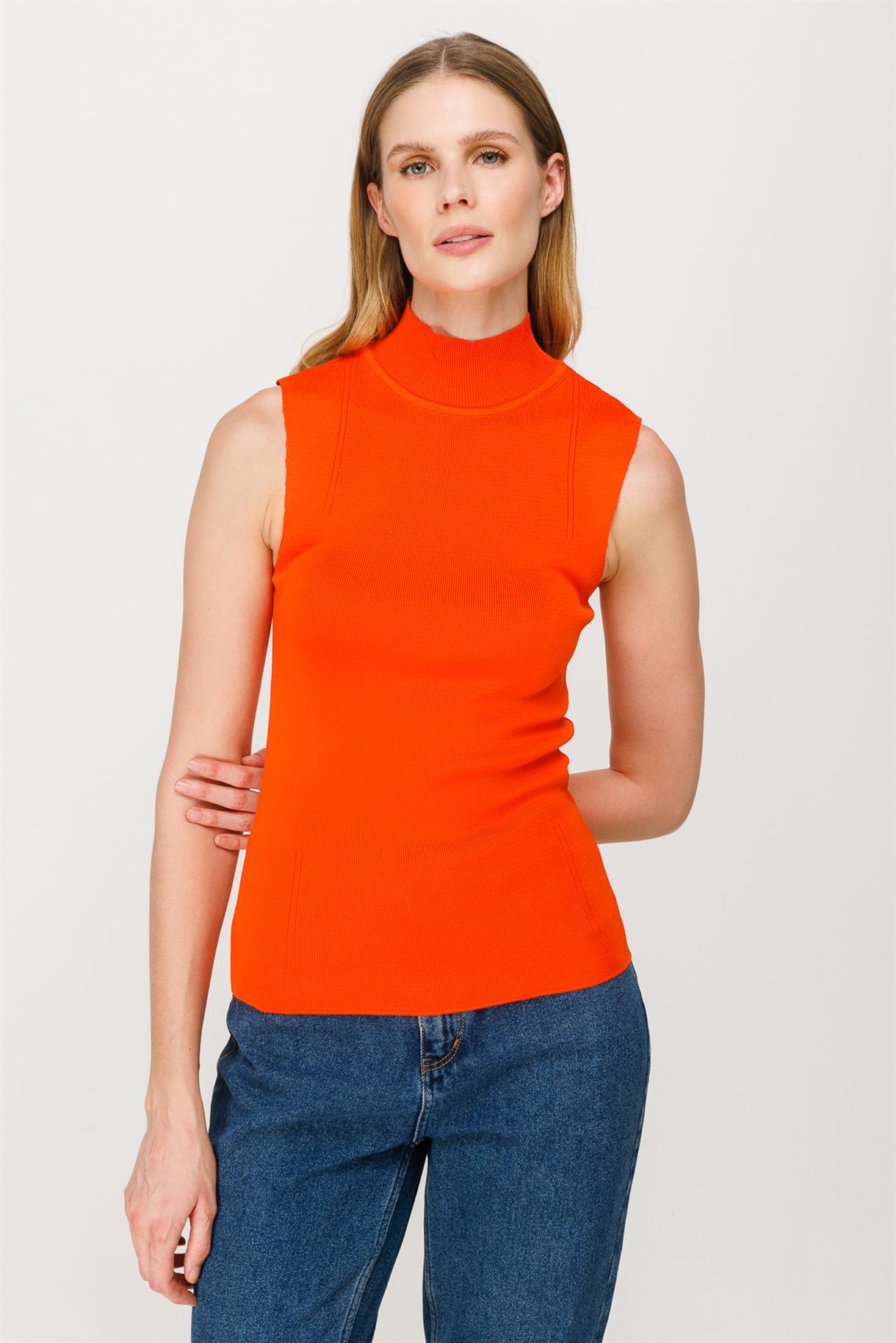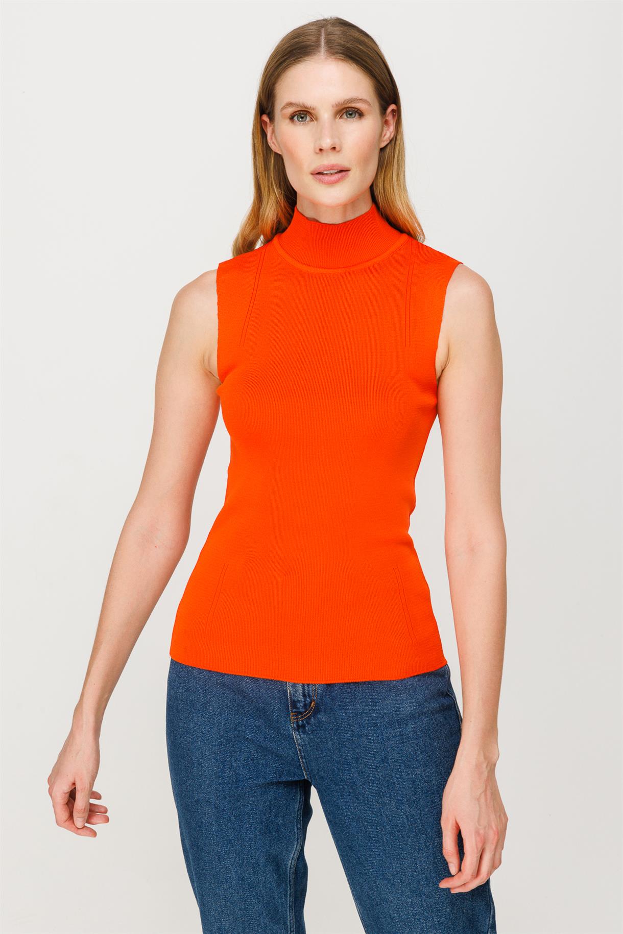 Yarım Balıkçı Kolsuz Basic Triko Kazak-ORANJE (3WT00034042_51)