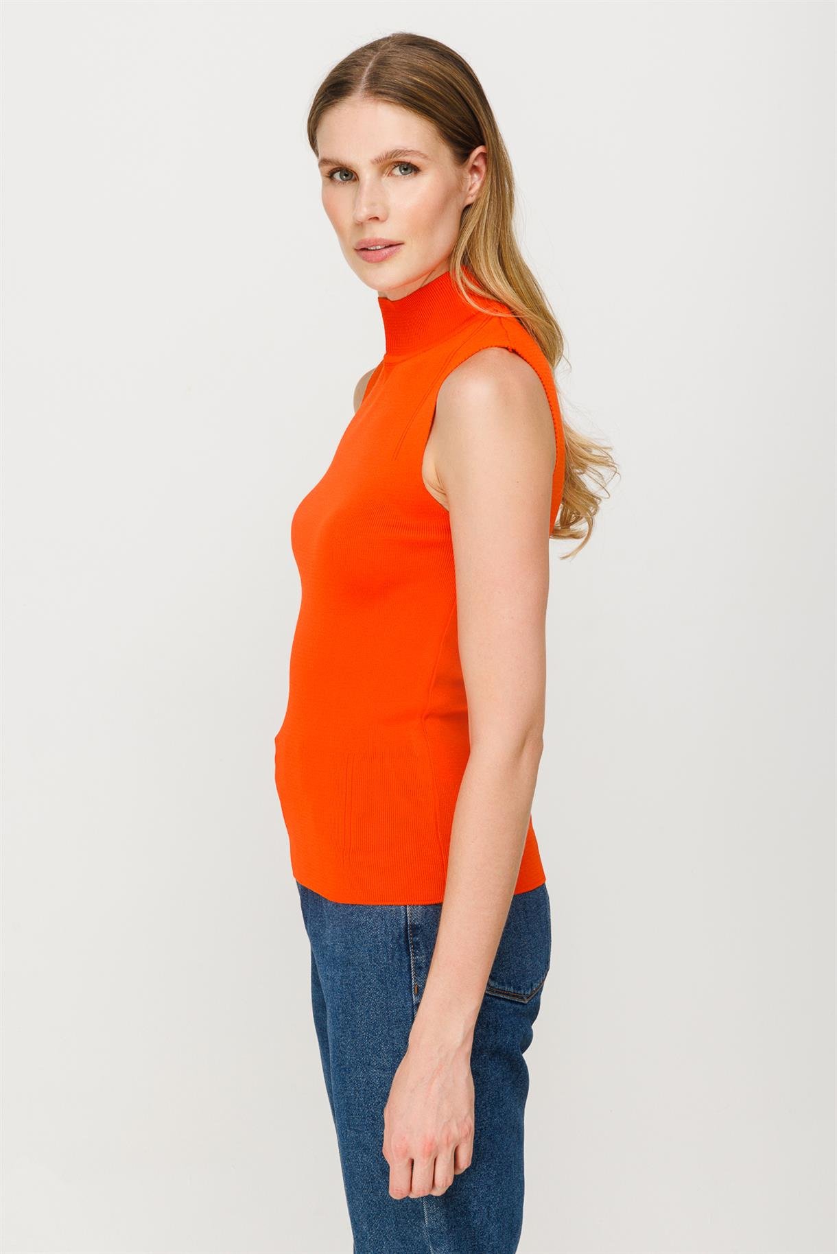 Yarım Balıkçı Kolsuz Basic Triko Kazak - ORANJE