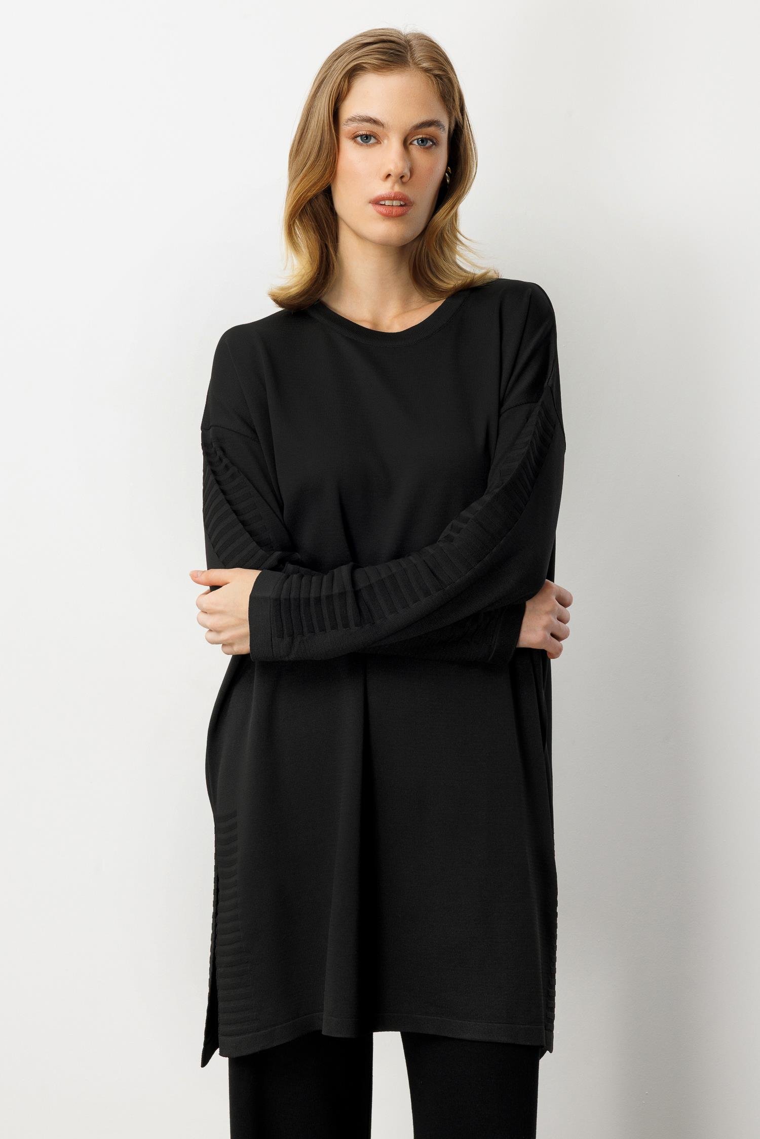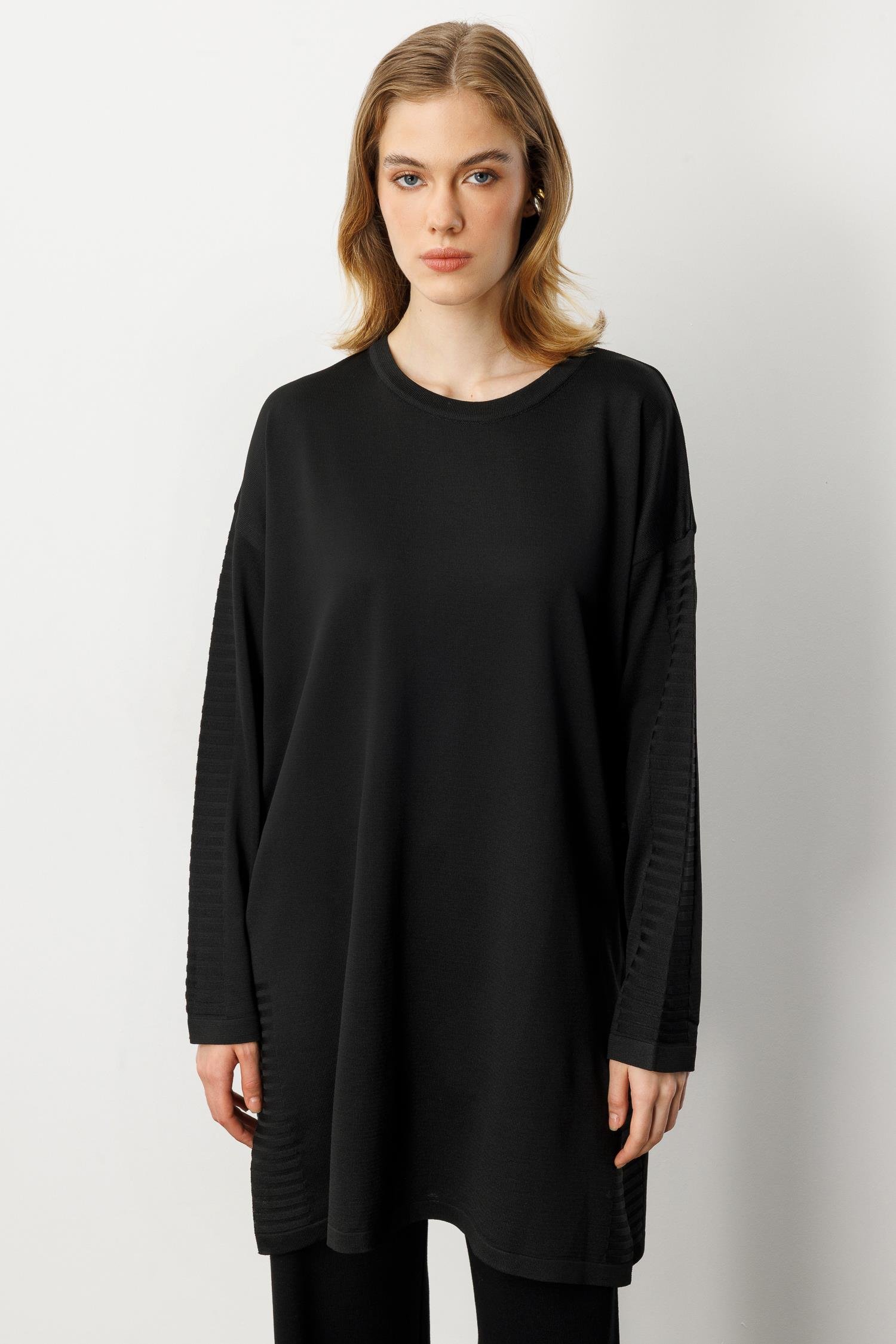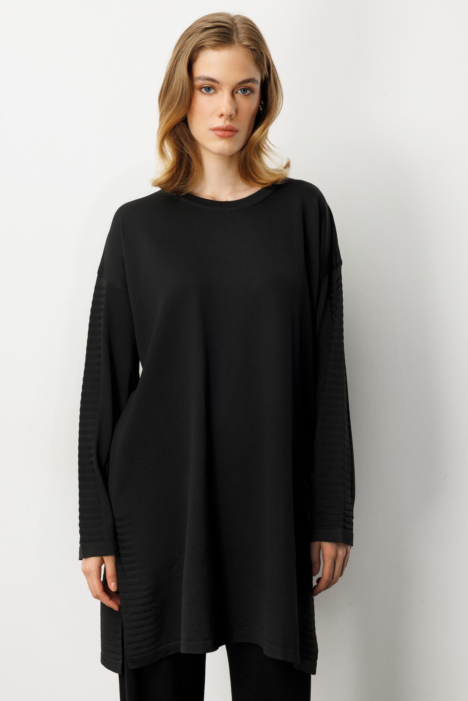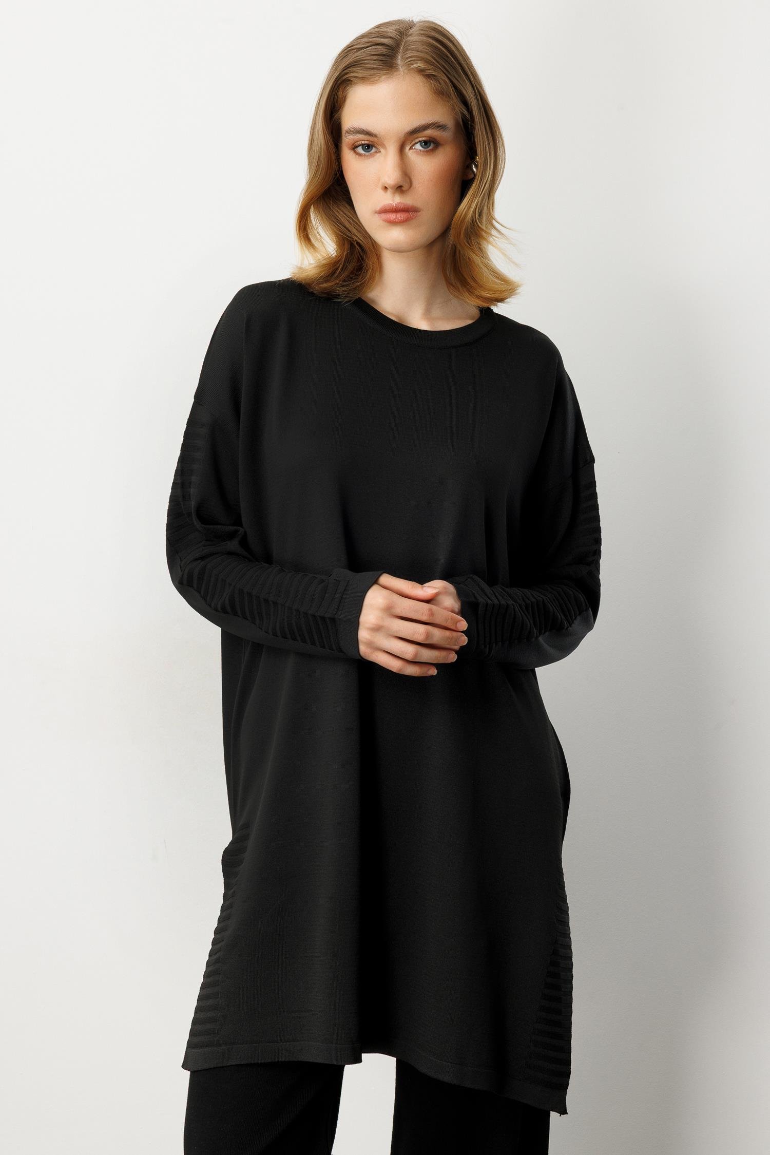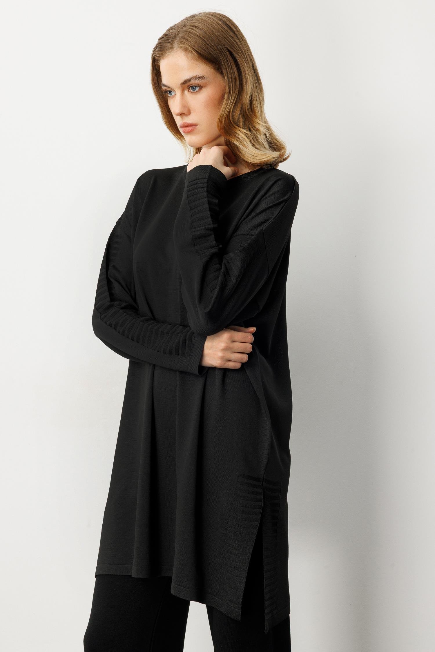 Yırtmaç Detaylı Triko Tunik-SİYAH (5WT00035212_01)