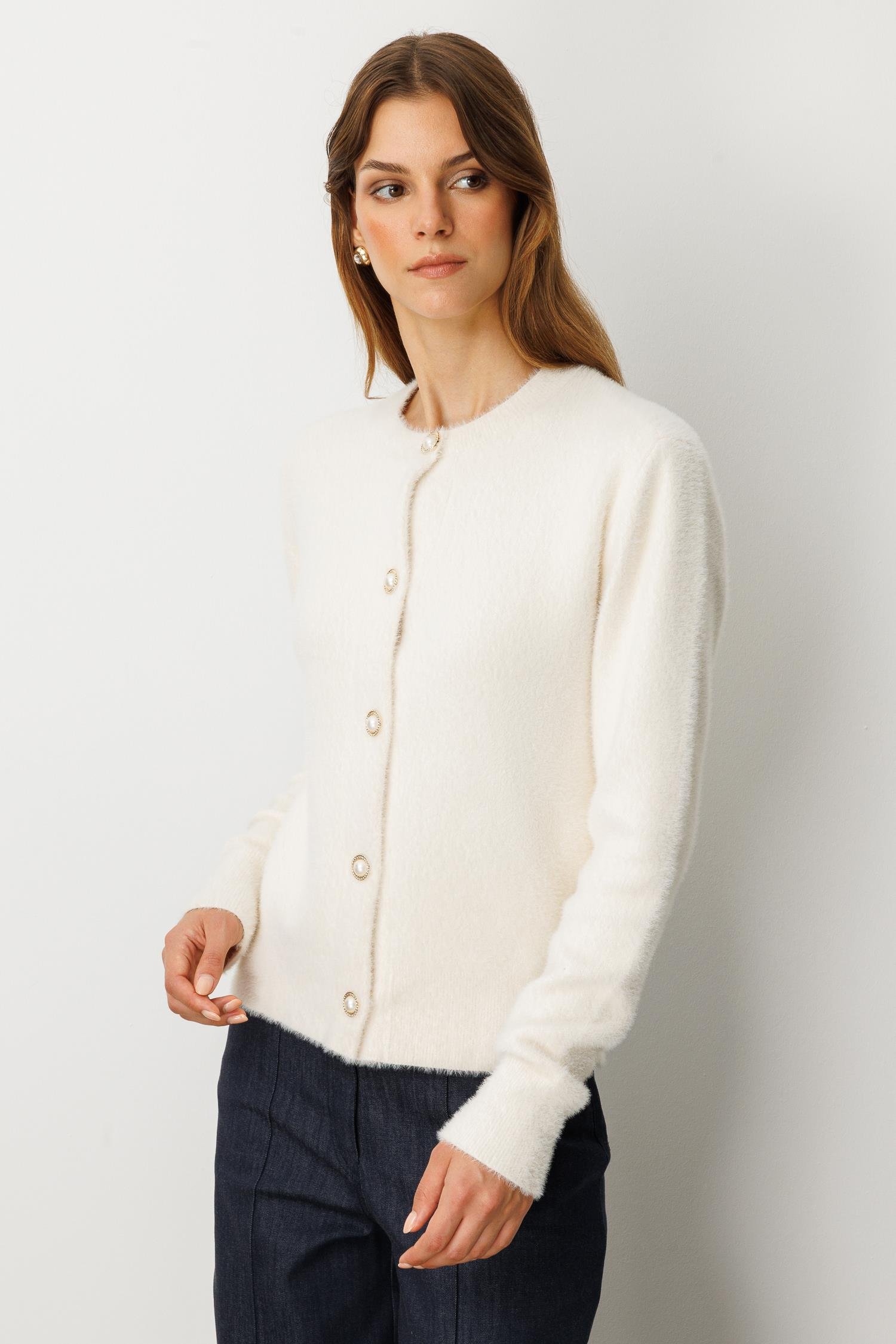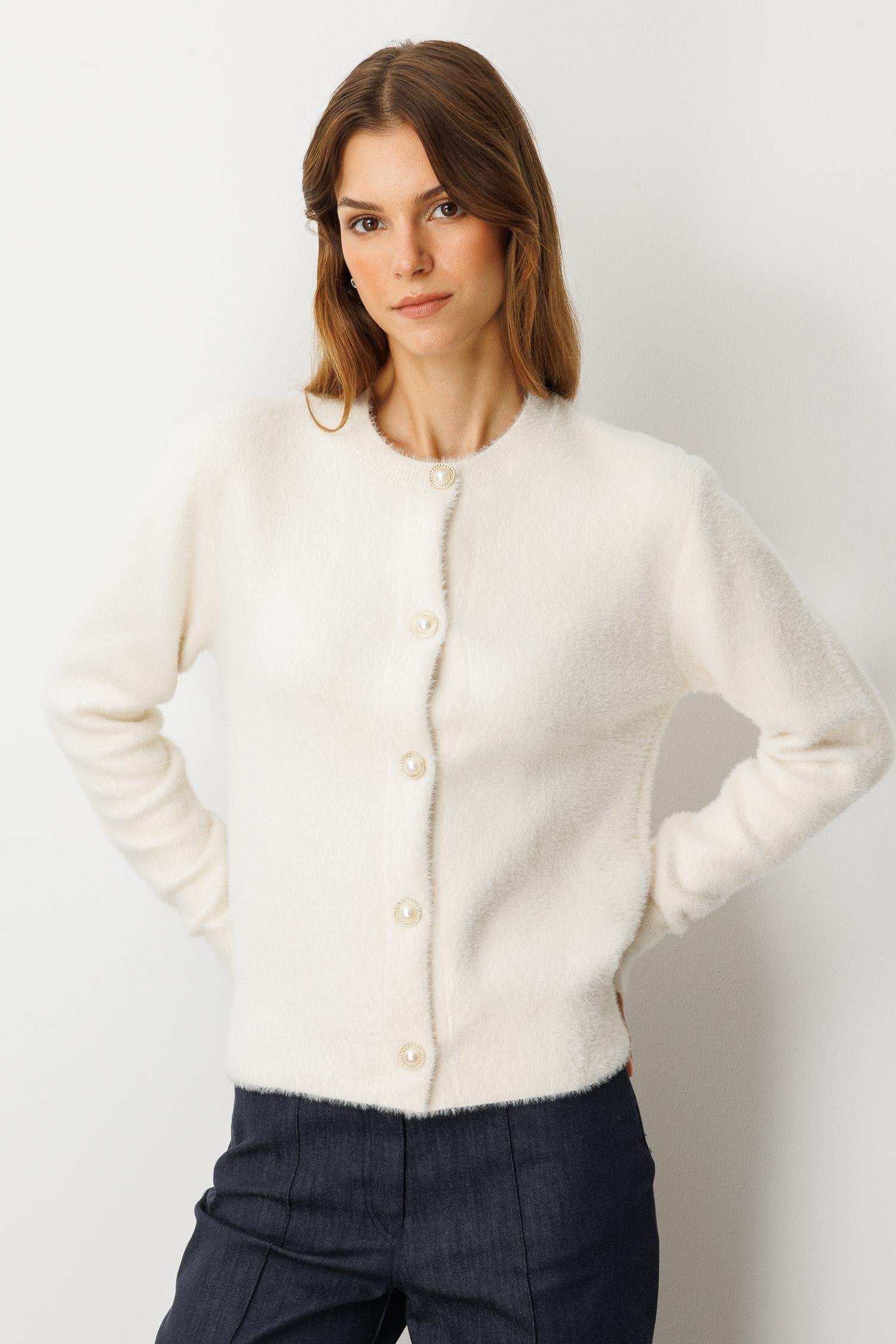 Düğme Detaylı Triko Hırka-EKRU (5WERN006805_62)