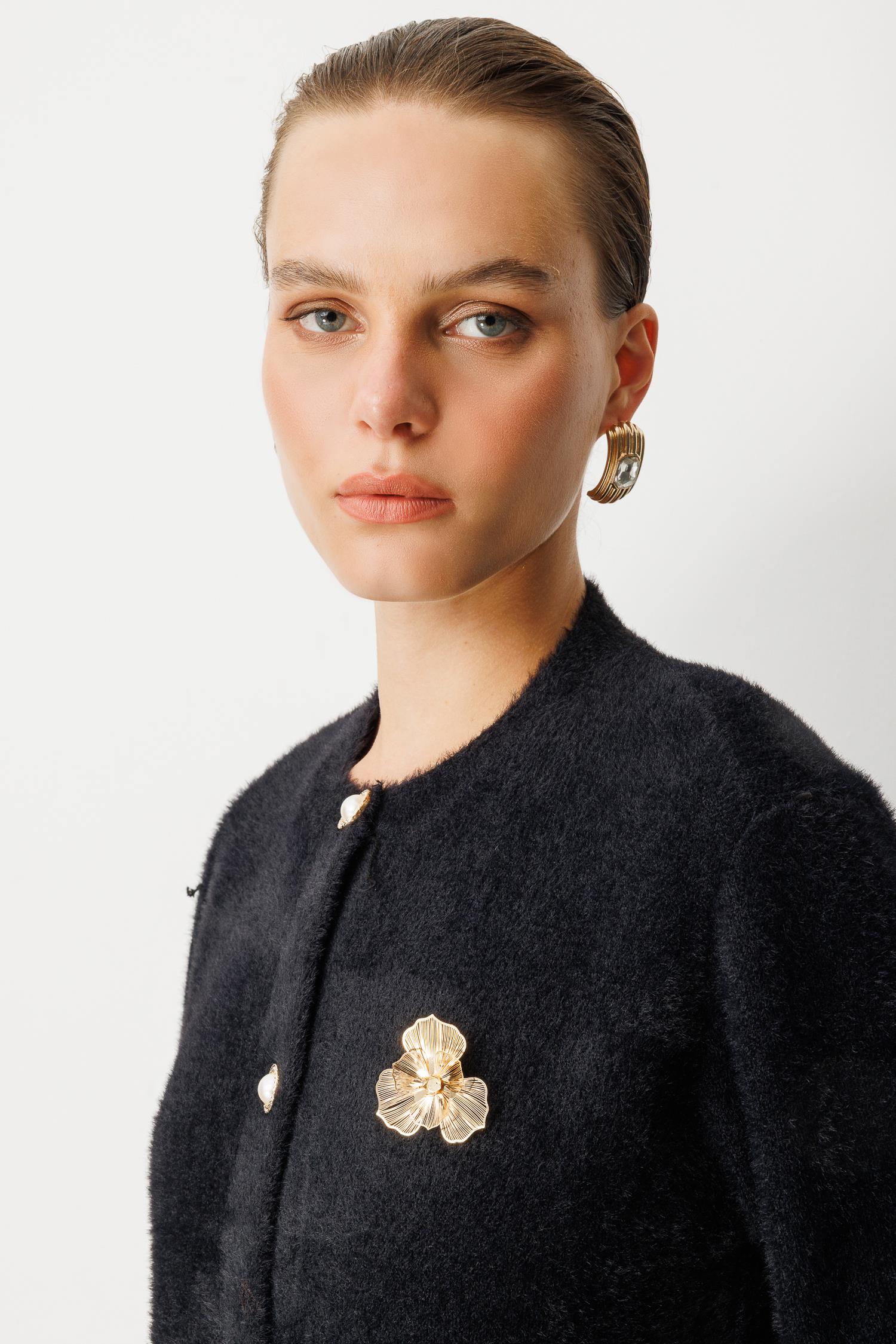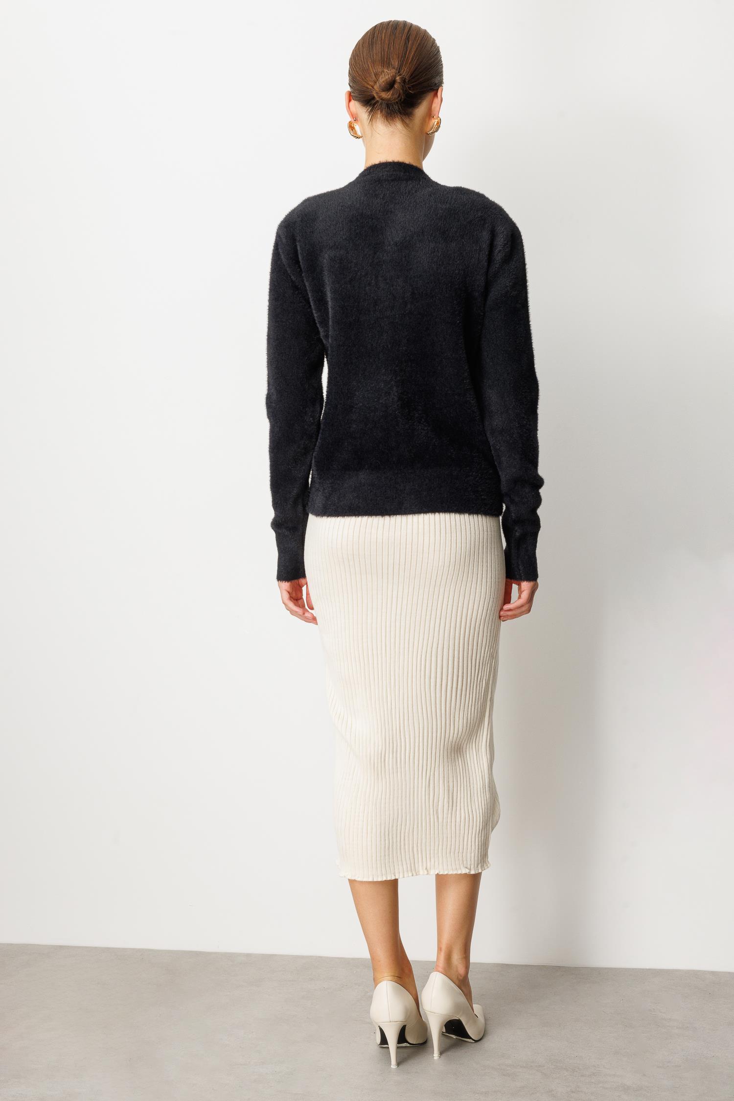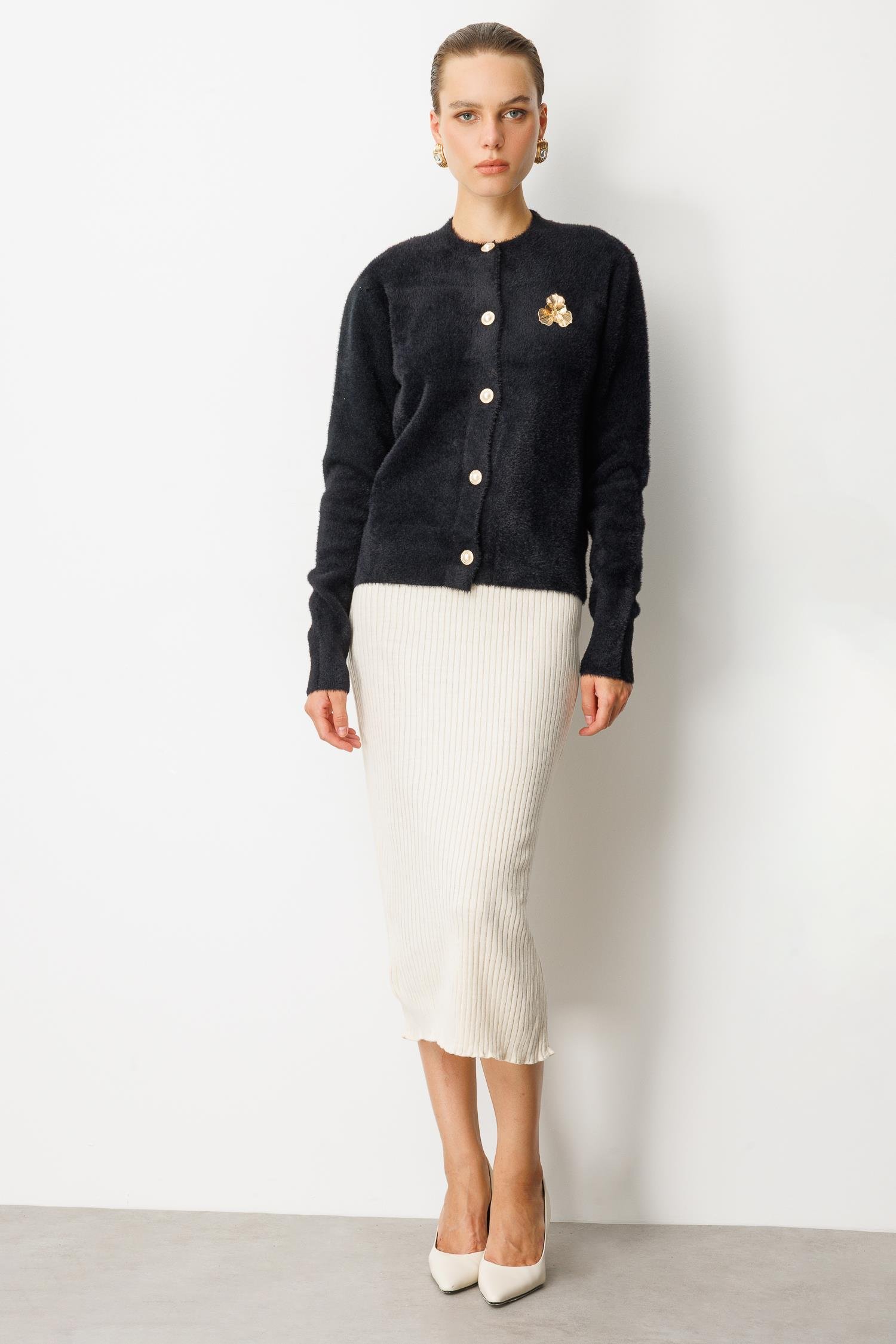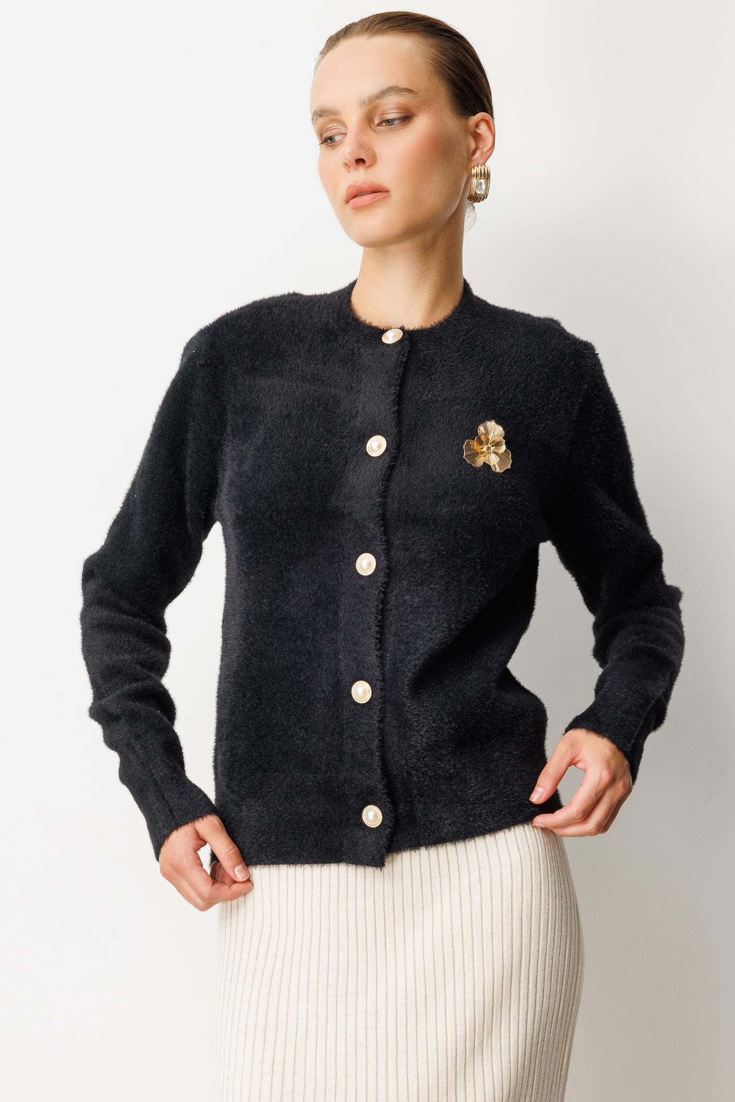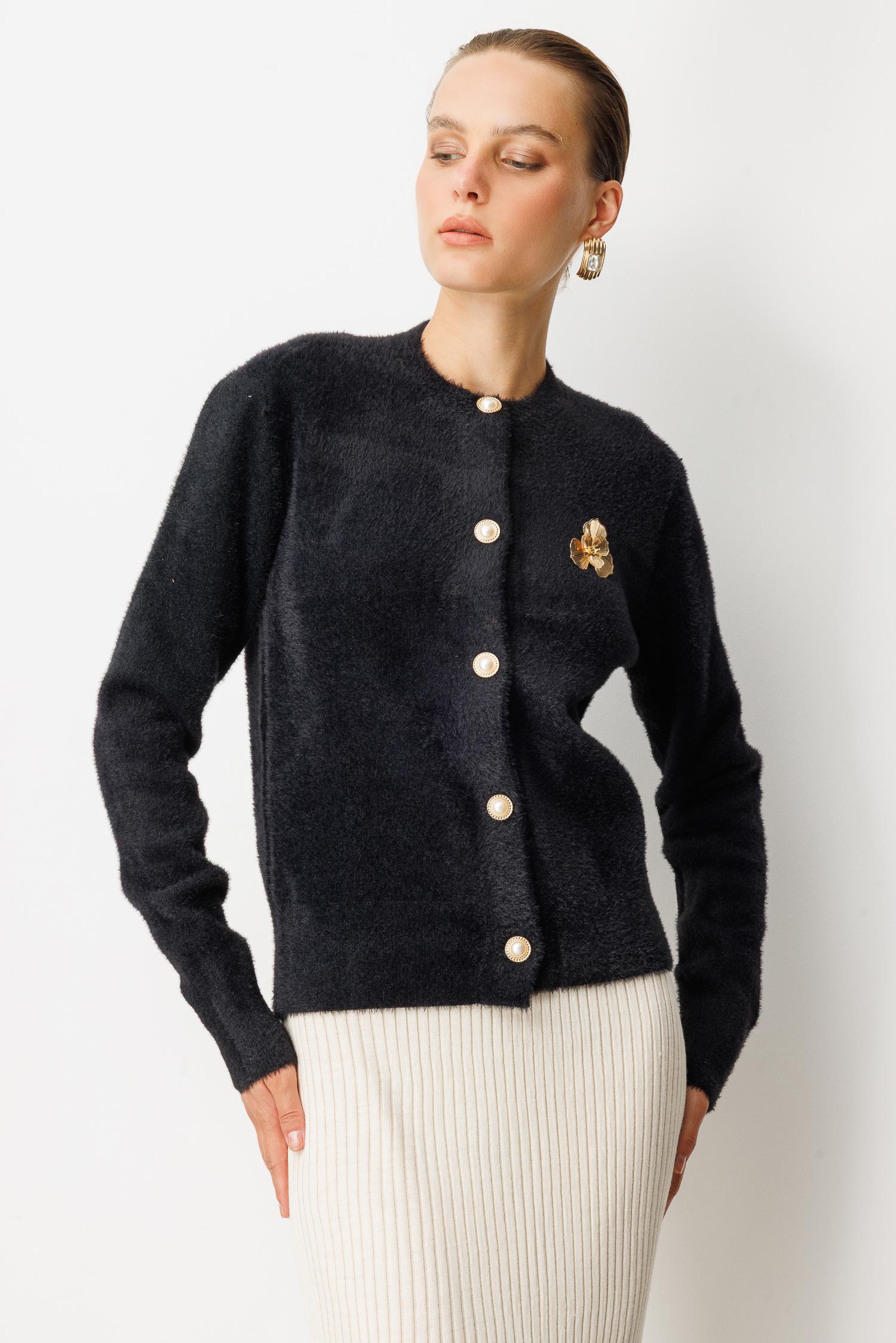 Düğme Detaylı Triko Hırka-SİYAH (5WERN006805_01)