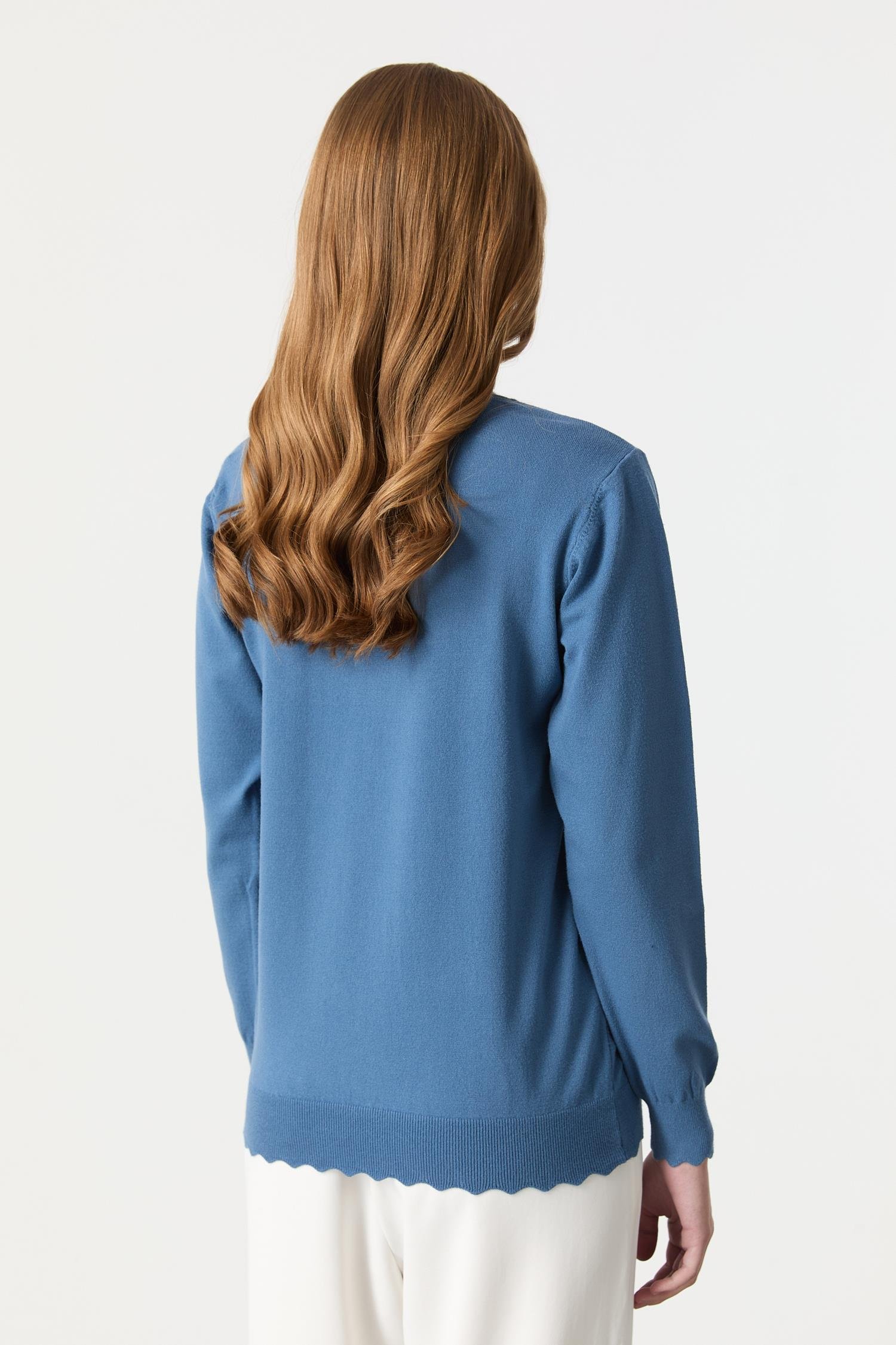 Yuvarlak Yaka Angora Triko Kazak-İNDİGO (5WT00035308_60)
