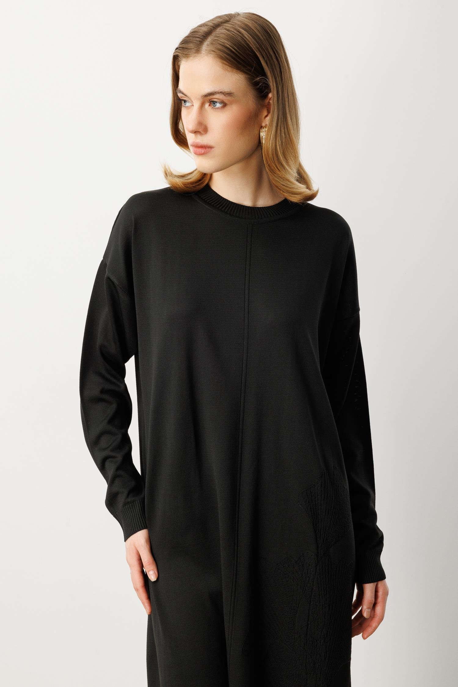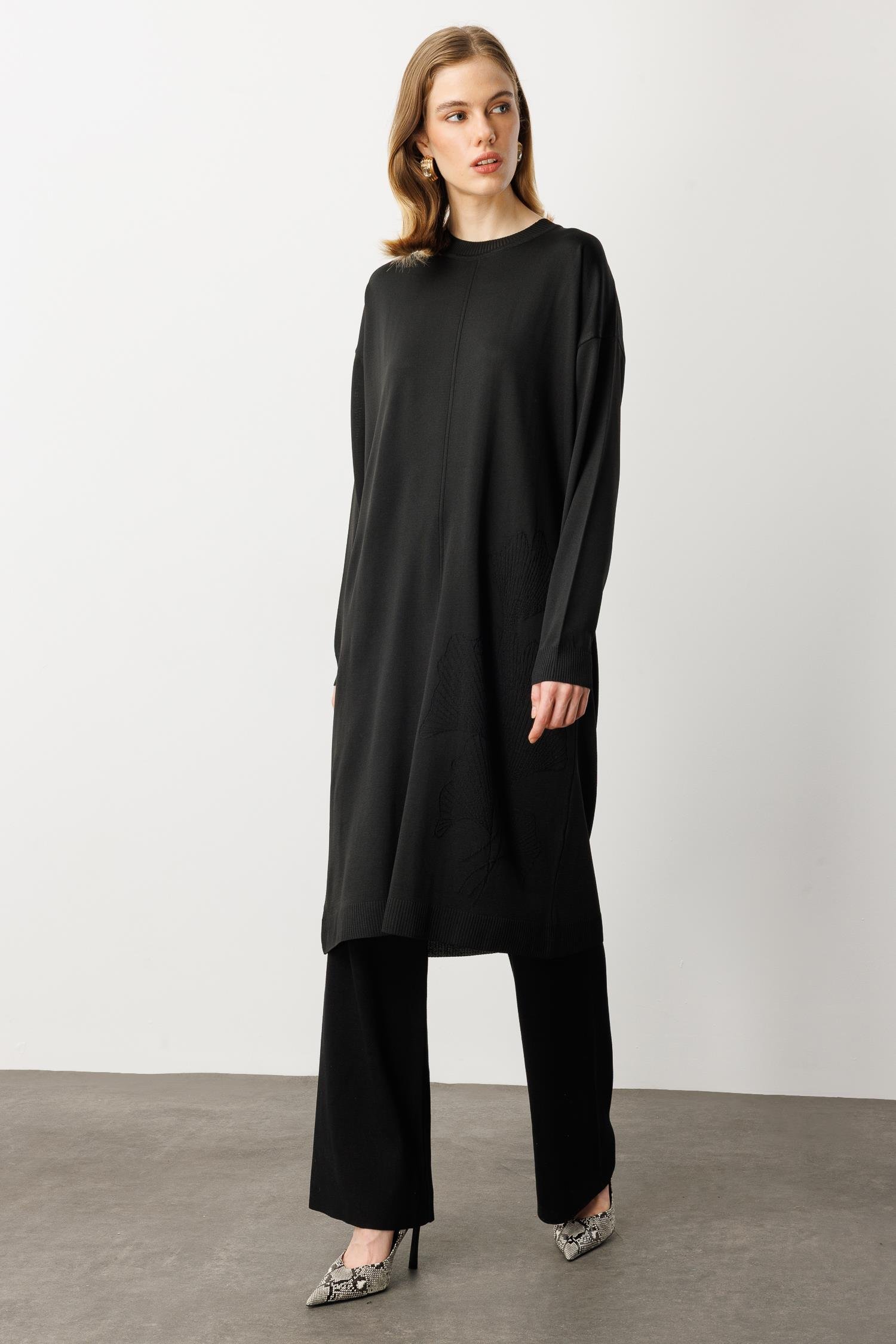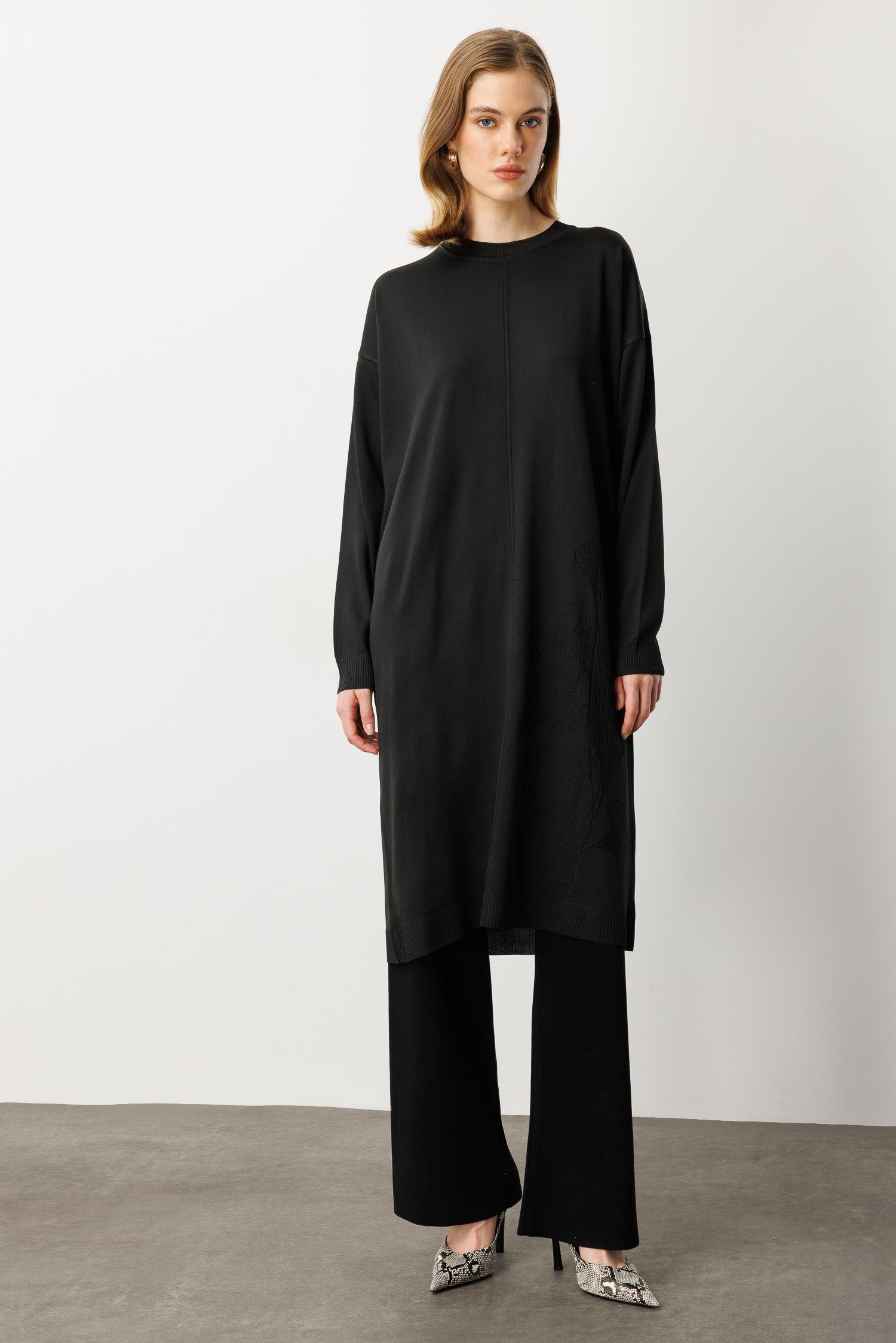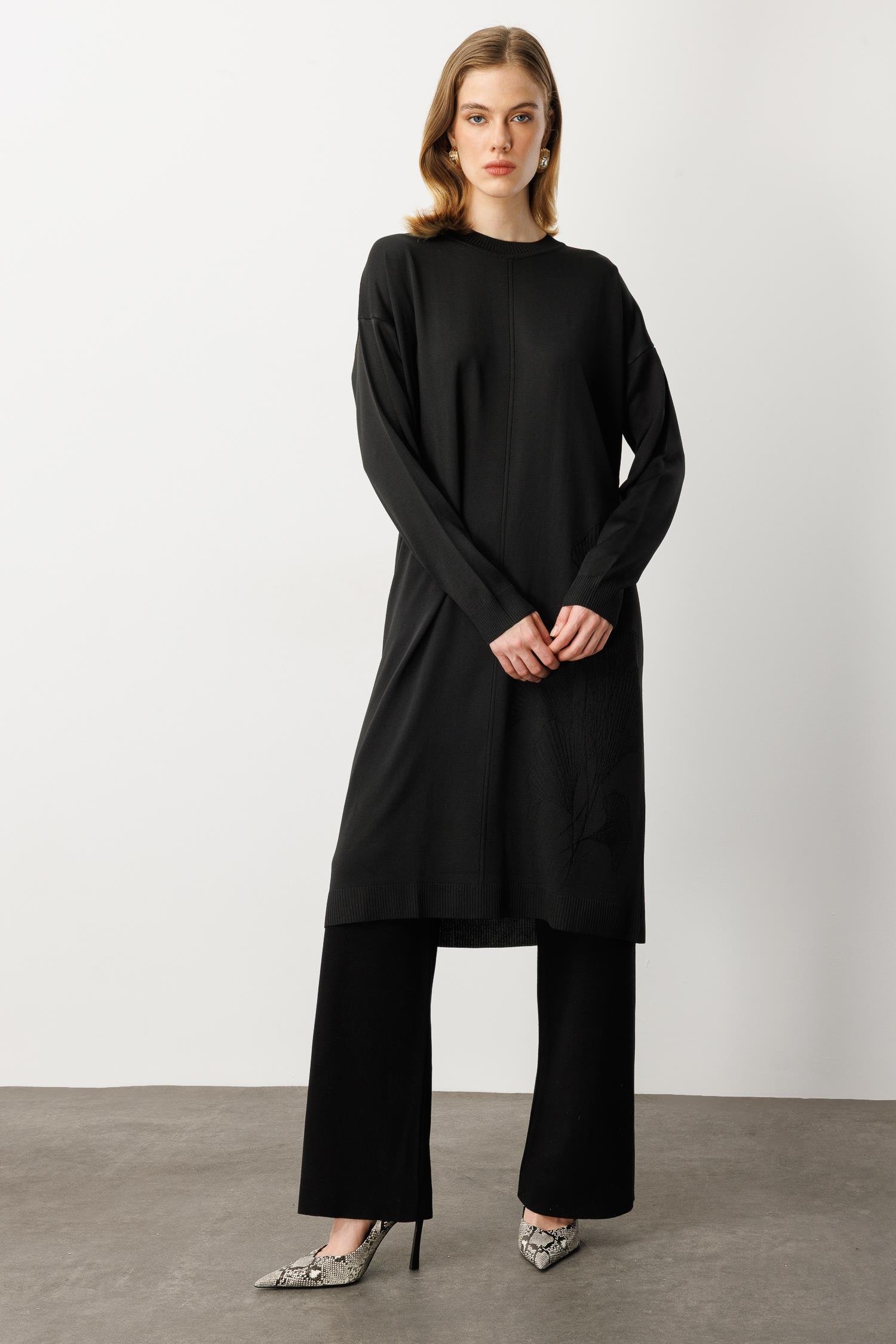 Yuvarlak Yaka Desenli Triko Tunik-SİYAH (5WT00035245_01)