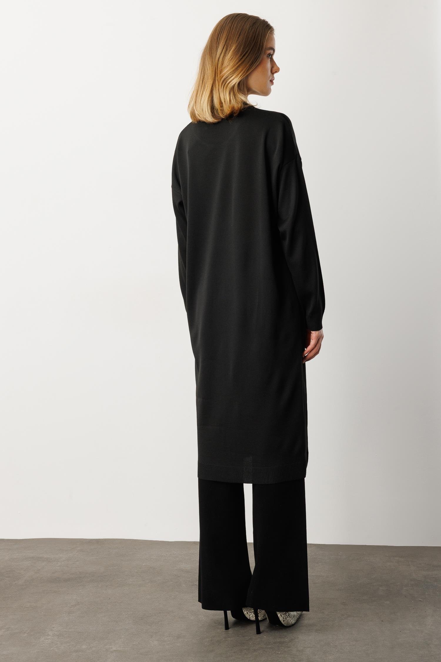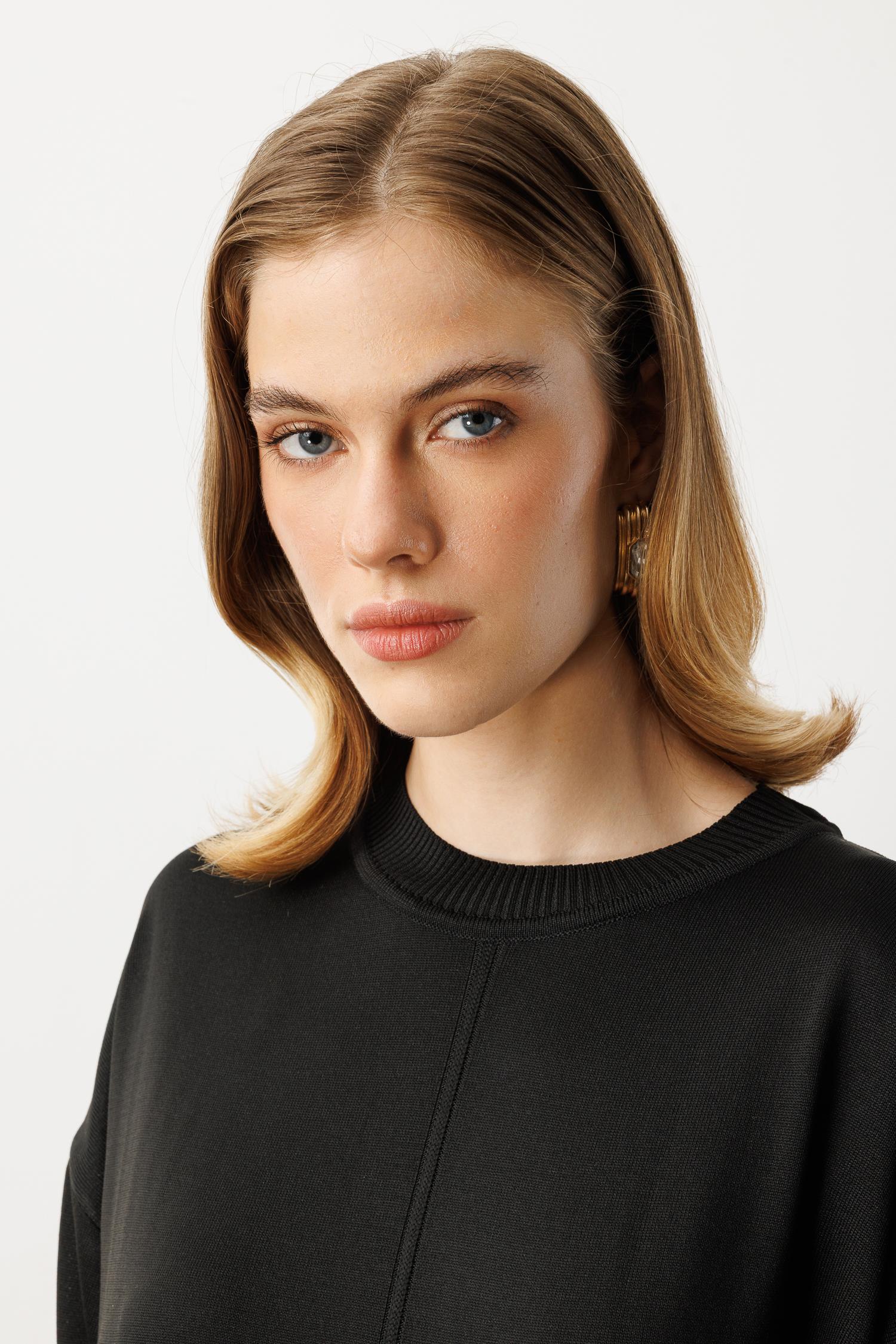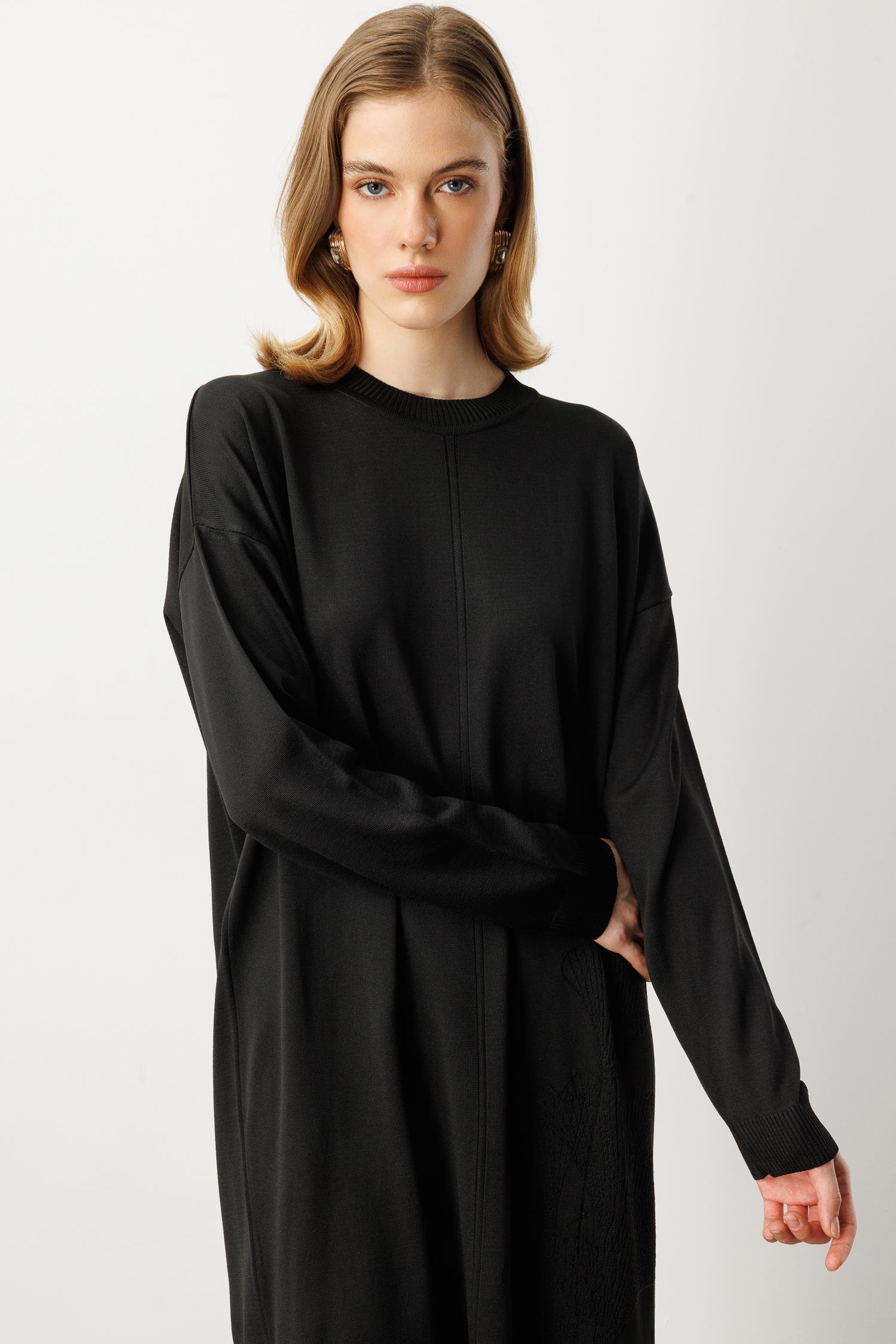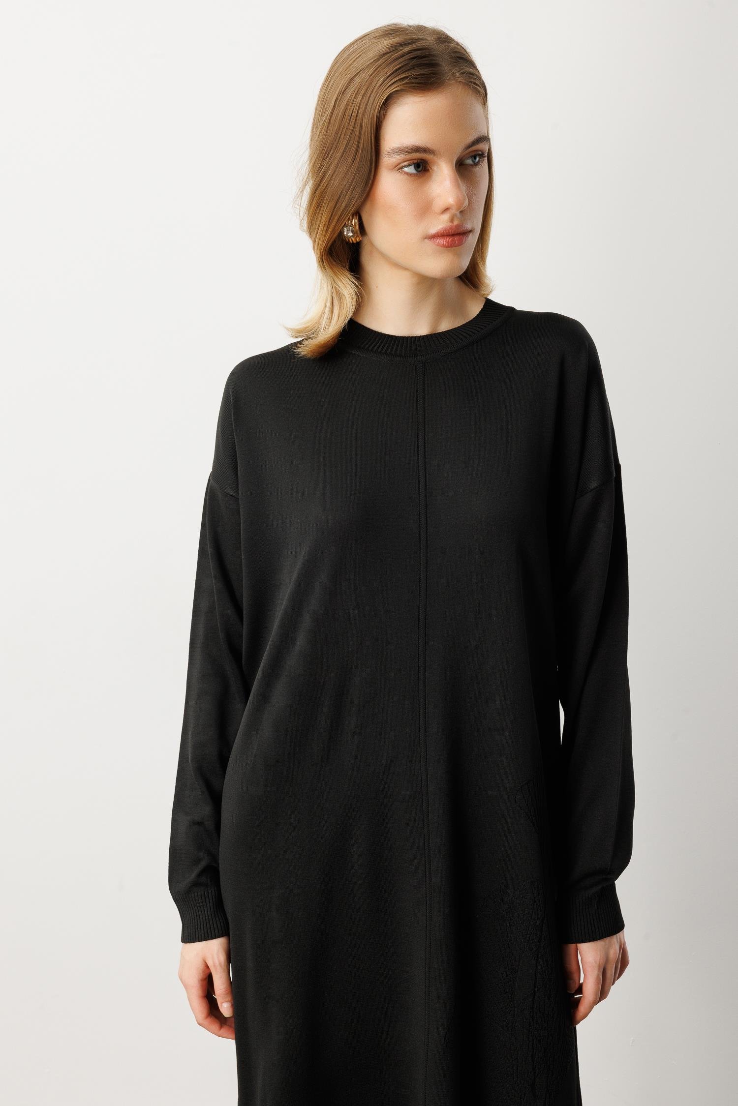 Yuvarlak Yaka Desenli Triko Tunik-SİYAH (5WT00035245_01)