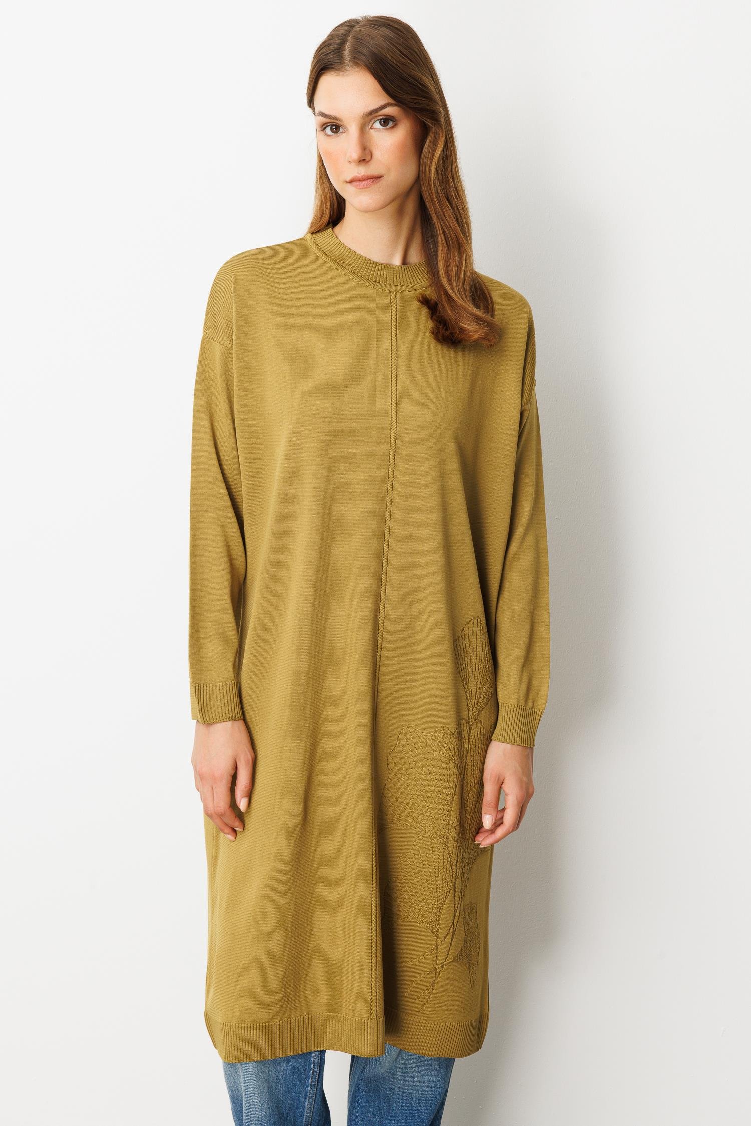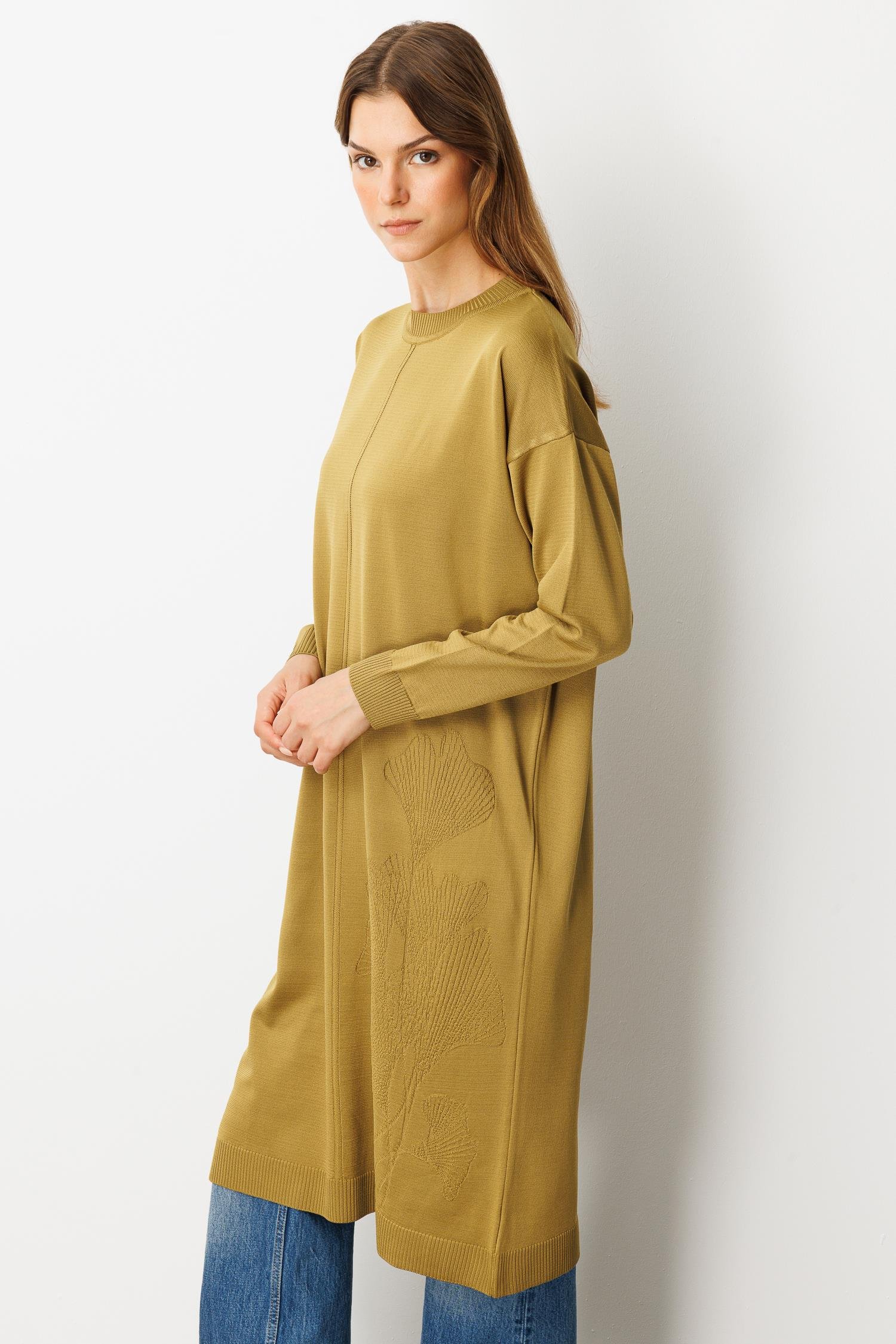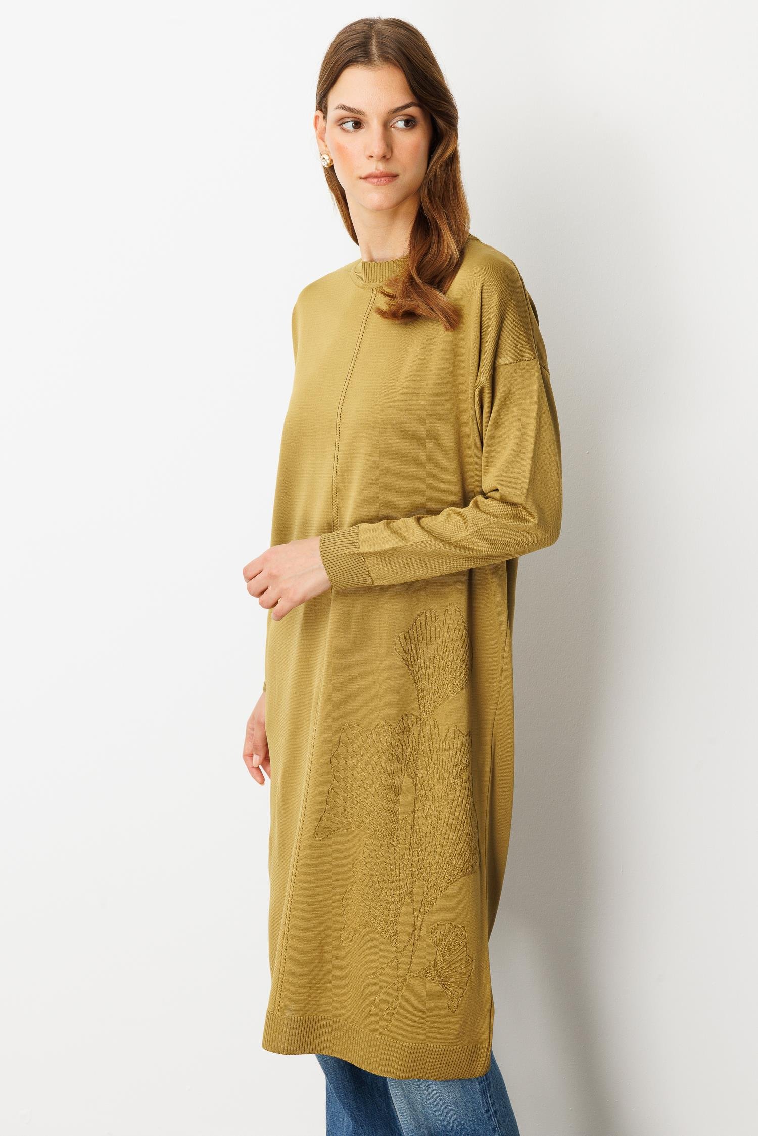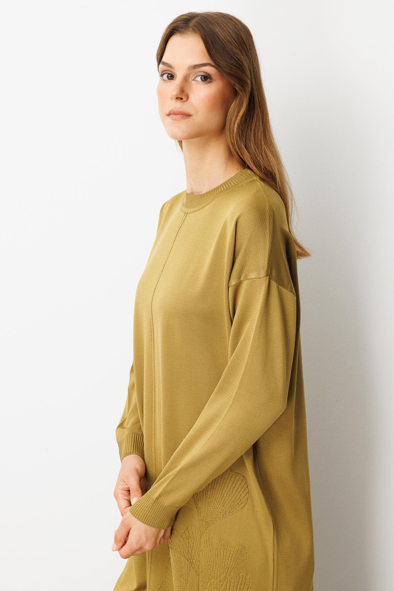 Yuvarlak Yaka Desenli Triko Tunik-Y.YEŞİLİ (5WT00035245-84)